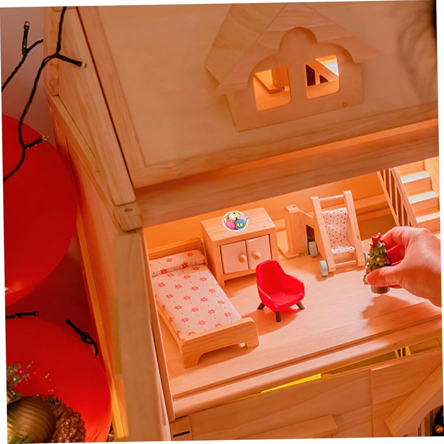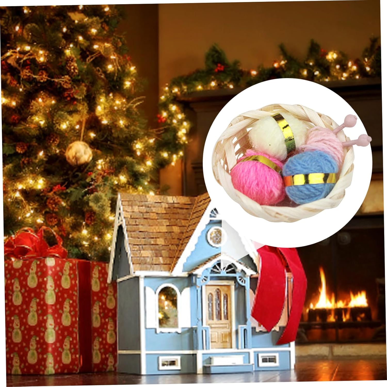 Accessorio versatile per la casa delle bambole: questo adorabile cestino ricamato può essere utilizzato in varie ambientazioni in miniatura. Che tu stia decorando una casa delle bambole per Natale o semplicemente aggiungendo un tocco di fascino al tuo mondo in miniatura, questo cestino è un'aggiunta versatile e deliziosa. Decorazioni natalizie per la casa delle bambole: abbraccia lo spirito natalizio e trasforma la tua casa delle bambole in un accogliente rifugio natalizio con il nostro cestino per aghi per casa delle bambole. Crea scene commoventi che catturano la gioia della stagione con questo affascinante accessorio. Mini set di filati per maglieria: il cestino per maglieria in miniatura riempito con 2 aghi rosa e 3 matassine di lana. È perfetto per creare un'incantevole scena in cui una residente della casa delle bambole sviluppa un'accogliente sessione di lavoro a maglia durante le festività natalizie. Scala 1:12: il nostro cestino per aghi per bambole è meticolosamente realizzato in scala 1:12, creando un cestino per maglieria realistico e dettagliato che impressionerà qualsiasi appassionato di miniature. Ognuno, dal gomitolo agli intricati ferri da maglia, è realizzato con precisione e cura. Mini formato perfetto: misura 1,18x0,79 pollici, questo cestino per maglieria in miniatura si adatta perfettamente alla configurazione della tua casa delle bambole. È compatto ma accattivante, il che lo rende un meraviglioso punto focale o un accento per l'arredamento della tua casa delle bambole.