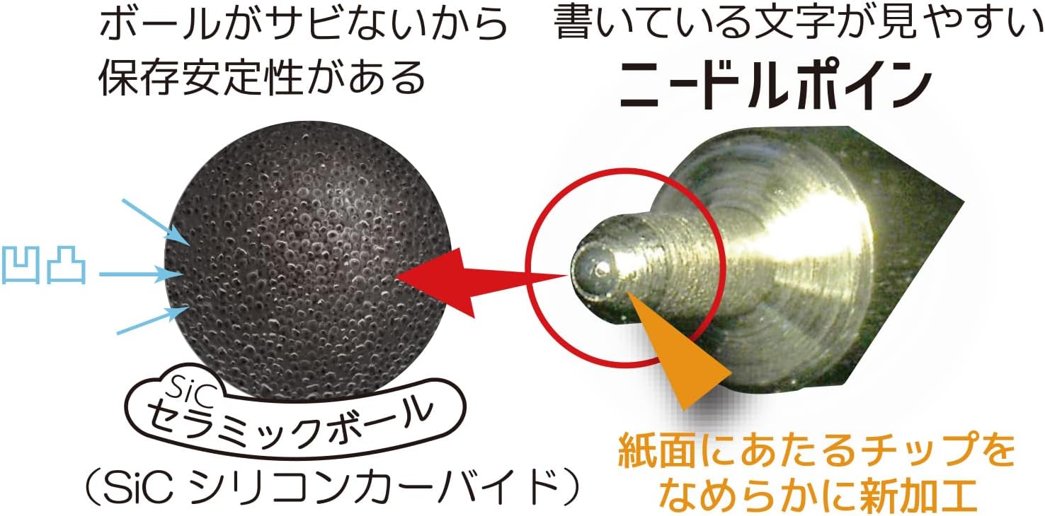 Il corpo ibrido passa senza soluzione di continuità da una canna rotonda a una presa esagonale mentre si muove verso la punta. Il design raffinato offre una presa comoda e rende la scrittura un gioco da ragazzi. Una squisita struttura interamente in metallo con un corpo in alluminio e componenti in ottone offre un equilibrio perfettamente uniforme in mano, garantendo un'esperienza di scrittura fluida senza sforzo. Abbraccia il design innovativo unico e facile da impugnare. Il corpo unico presenta una finitura opaca liscia e setosa e l'elegante corona cromata aggiunge un tocco distintivo. La penna a sfera in ceramica ha una finitura micro-testurizzata che facilita un eccellente flusso di inchiostro evitando sbavature o sbavature. Il design innovativo della punta garantisce un contatto ottimale con la superficie della carta. Prova l'inchiostro gel liquido di nuova concezione (in nero) che non solo migliora il comfort di scrittura, ma offre anche prestazioni ad asciugatura rapida. La punta dell'ago garantisce una chiara visibilità della superficie della carta durante la scrittura.