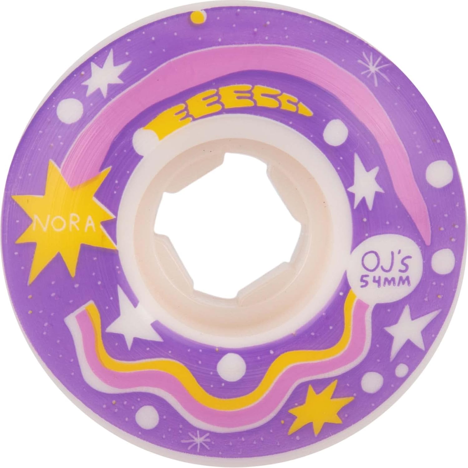 OJ Elite EZ Edge - Ruote da skateboard Nora Dreams 101a, colore: bianco, 54 mm Il prezzo si riferisce a un set di quattro ruote da 54 mm. Durezza 101a con opere d'arte di Nat Russel EZ Edge presenta una superficie di guida medio-larga scorrevole costante, bordo rotondo per la massima risposta. OJ Wheels uretano versato di qualità resistente alle macchie piatte dagli Stati Uniti.