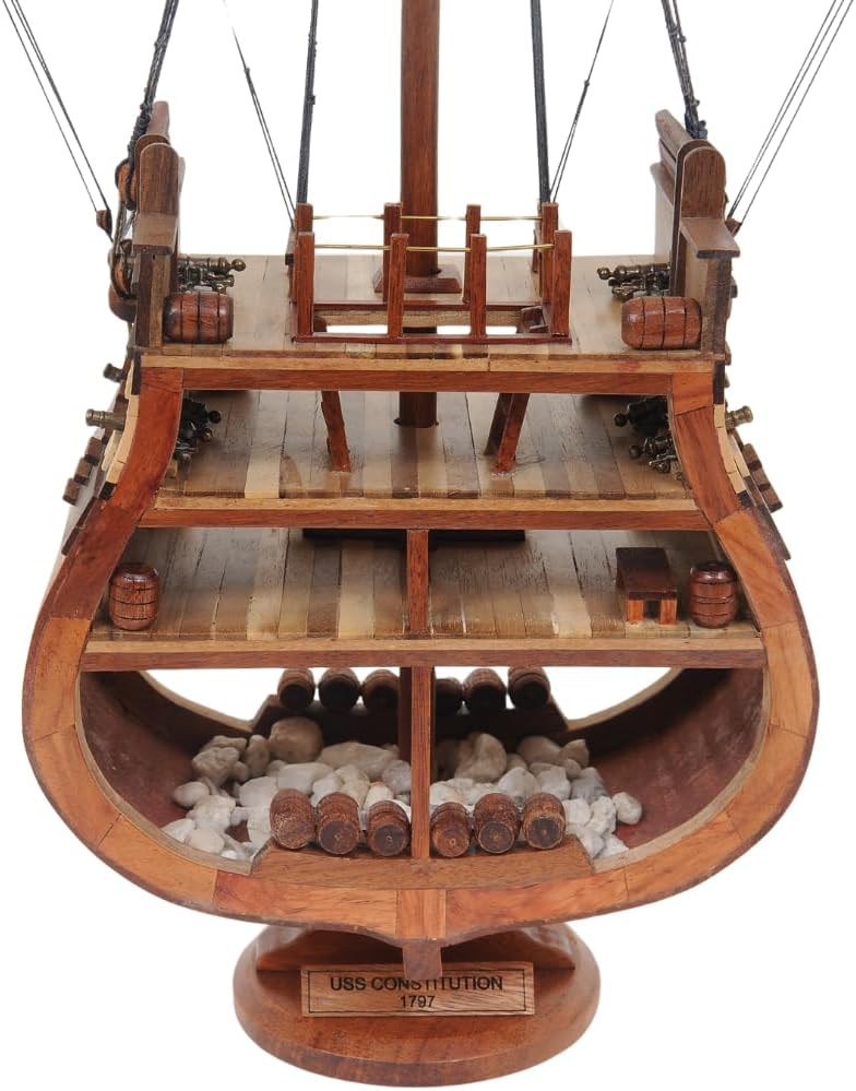 Dimensioni: 12,5 L x 3,8 L x 34,0 A pollici, catturando la grandiosità della storica Costituzione della USS MATERIALE: legno di alta qualità come: cedro rosso occidentale, palissandro e mogano + solo metallo (senza parti in plastica) COMPETENZA: applicati i migliori metodi tradizionali di costruzione navale, centinaia di ore necessarie per rifinire ogni modello dai nostri maestri artigiani Proprio il regalo perfetto per decoratori di casa o ufficio, appassionati di barche o collezionisti appassionati. Migliora il tuo ufficio o spazio domestico: mostra questo imponente pezzo di storia nella tua casa o ufficio, aggiungendo un tocco di eleganza marittima che sicuramente metterà in risalto il tuo spazio