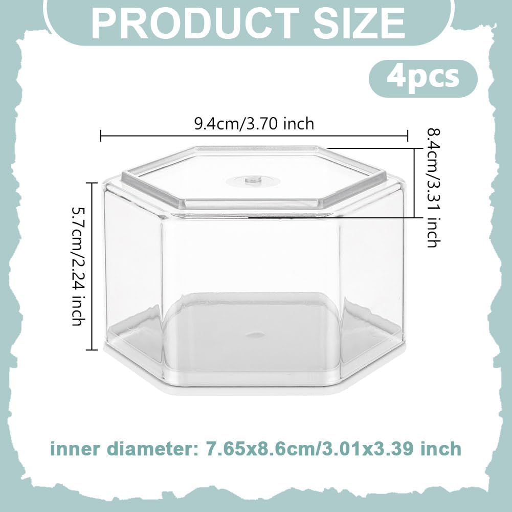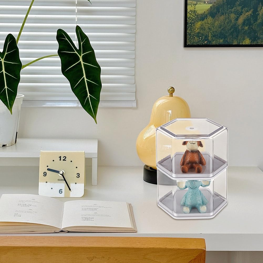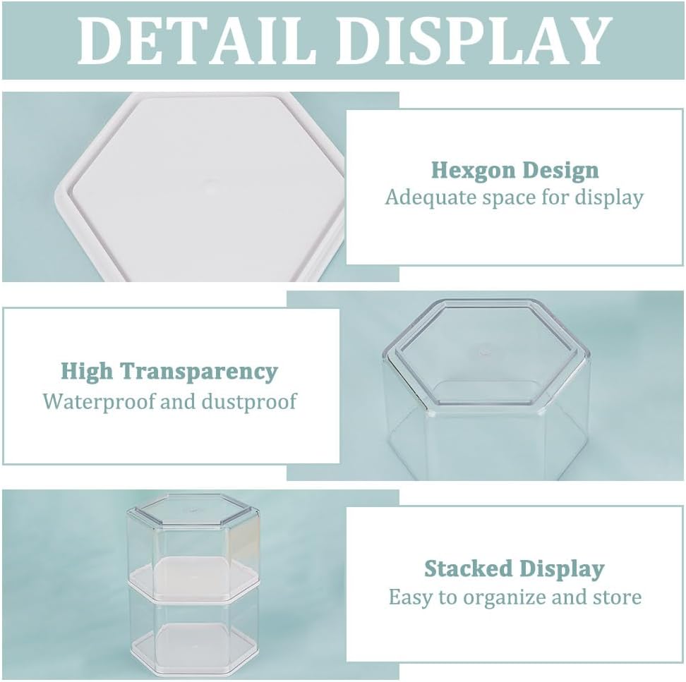 Pacchetto incluso--Riceverai 4 pezzi di espositore in plastica trasparente, le dimensioni sono 8,4x9,4x5,7 cm, quantità sufficiente e dimensioni moderate per soddisfare le tue diverse esigenze di archiviazione espositiva Materiale plastico--L'espositore antipolvere è fatto di plastica, che è robusto e durevole, leggero, portatile e non facile da danneggiare Display trasparente--L'espositore è trasparente, può mostrare chiaramente i tuoi oggetti e aiutarti a visualizzare miniature, action figure e altri oggetti da collezione in formato esagonale a 360 gradi Colonne--La scatola espositiva da collezione è progettata con colonne esagonali, aspetto unico, elegante e chiaro, aggiunge punti salienti unici alla tua esposizione di oggetti da collezione. Ampia applicazione--La scatola espositiva per action figure è perfetta per organizzare ed esporre delicate miniature su scrivanie e armadietti. Puoi utilizzare questa vetrina per la decorazione della casa, dell'ufficio e così via
