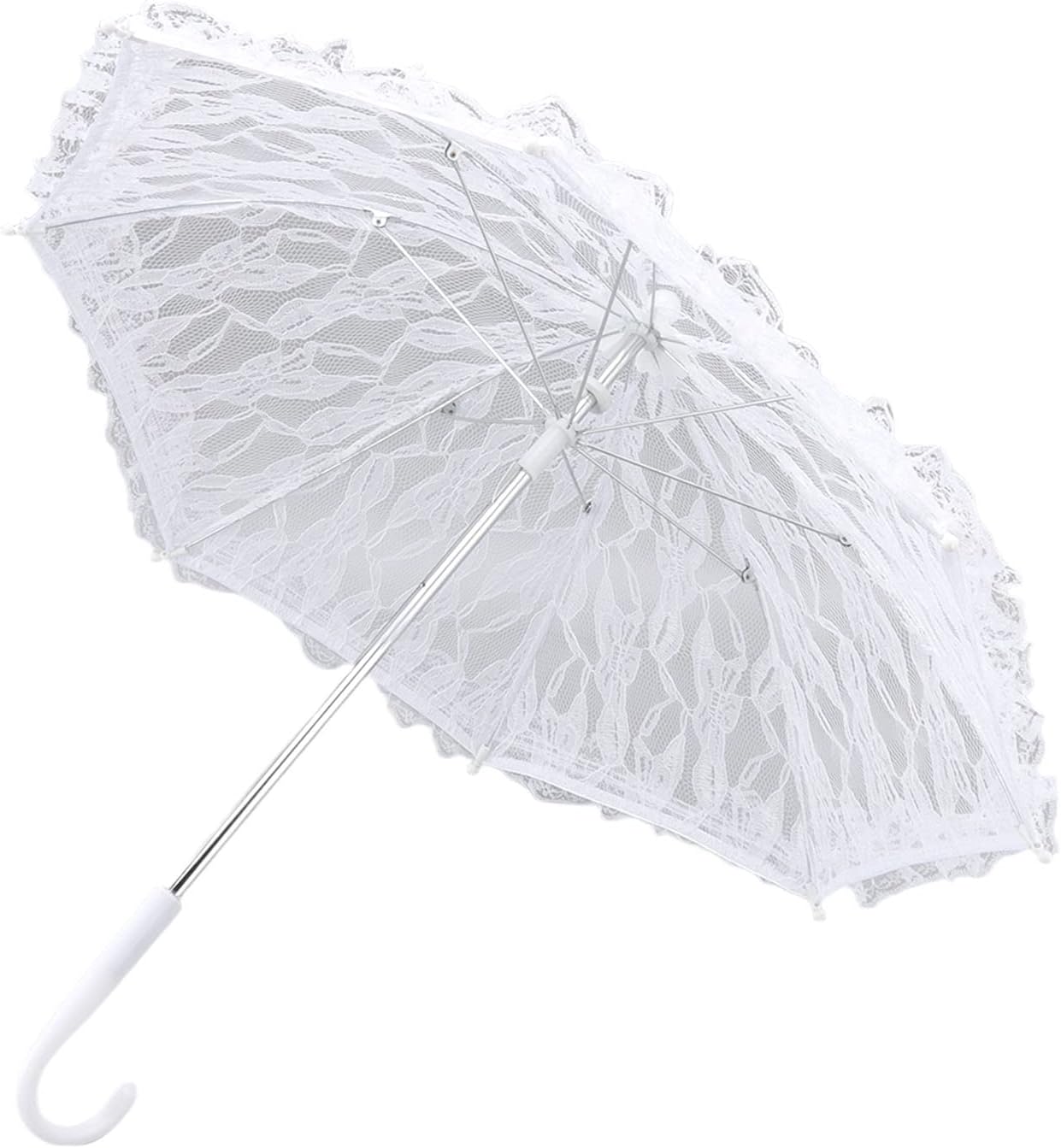 [Uso versatile] Ombrello parasole in pizzo vintage per matrimoni e oggetti di scena rotanti, decorazioni per feste, ecc. [Design robusto] L'ombrello parasole in pizzo è caratterizzato da materiale in pizzo, centro e nervature in acciaio inossidabile, manico in plastica, resistente e durevole. [Impugnatura comoda] Ombrello parasole in pizzo bianco con impugnatura a J dal design unico per una facile sospensione quando non in uso. [Adatto per eventi] Ombrello da sposa in pizzo Ideale per fotografie di matrimoni, balli studenteschi, teatro, spettacoli teatrali, ecc. [Esterno elegante] Ombrello parasole in pizzo vintage con un bellissimo esterno, adatto a ogni occasione.