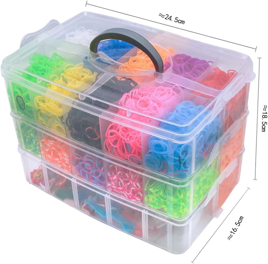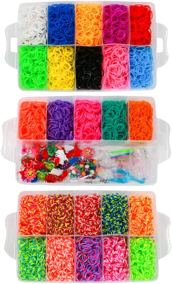 Migliaia di elastici: questo kit offre un vasto assortimento per creare i tuoi braccialetti unici, tra cui oltre 15.000 elastici in 25 colori diversi. Viene fornito anche con una doppia struttura di tessitura, 40 ciondoli in gomma morbida, un grande uncinetto, due cornici per tessitura, cinque confezioni di perline colorate, nove confezioni di ganci a forma di S, sei piccoli uncinetti, un manuale utente e una scatola di stoccaggio a tre strati. Con questo set completo di telai, le tue possibilità creative sono infinite. La sicurezza prima di tutto: il set di elastici ONECK è realizzato in resina di gomma di alta qualità e alloggiato in una custodia EVA premium. Questo prodotto è completamente atossico e inodore, privo di sostanze nocive come lattice, piombo e ftalati. Flessibili e durevoli: questi elastici sono altamente elastici, morbidi e resistenti, rendendoli perfetti per un uso ripetuto. Sono abbastanza flessibili per ospitare qualsiasi progetto fai da te, permettendoti di tessere e creare secondo il desiderio del tuo cuore. Tienilo in ordine: ogni colore dell'elastico è conservato nel suo scomparto separato, mantenendo tutto pulito e facile da trovare. Questo design non solo riduce il disordine, ma incoraggia anche i bambini a sviluppare buone abitudini organizzative ordinando e rimettendo gli oggetti nei luoghi designati, rendendo la loro esperienza artigianale più piacevole. Regalo perfetto per bambini e amanti del fai da te: ideale per i bambini, questo kit consente la creazione di una vasta gamma di oggetti indossabili, tra cui braccialetti dell'amicizia in gomma, accessori per capelli, collane, anelli e ciondoli. Impegnarsi in queste attività aiuta a migliorare la creatività e le capacità di concentrazione dei bambini.