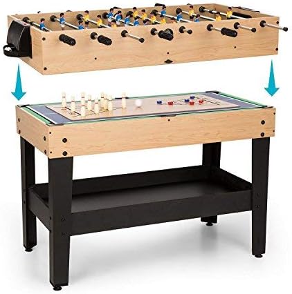 AMPIA SELEZIONE: il tavolo da gioco per adulti di oneConcept offre una vasta scelta di giochi diversi. Sta a te decidere se vuoi mettere alla prova e migliorare le tue abilità o semplicemente trascorrere una serata di gioco con una partita a scacchi. GIOCHI DIVERSI: Tavolo da gioco multifunzionale: calcio balilla, biliardo, shuffleboard da tavolo, scacchi, dama, backgammon, ping pong, hockey scorrevole, domino, biglie, anelli da lancio, gioco del ferro di cavallo, tris, birilli, freccette magnetiche e carte da gioco. CALCIO STABILE: Il biliardino è qualcosa di molto speciale. Il tavolo da gioco è estremamente stabile e trasforma la cameretta di ogni bambino in uno stadio di calcio. Grazie allo stretto collegamento a vite, nulla ostacola giochi ancora più competitivi. PRATICO: Un vano portaoggetti sotto il tavolo da gioco multigioco garantisce l'ordine e mantiene al loro posto gli accessori non utilizzati. Anche dopo partite combattute, può essere ripulito rapidamente, il che piacerà sia ai bambini che agli adulti. QUALITÀ: oneConcept convince con un assortimento completo per tutta la famiglia: oltre a una grande varietà di tendenze tecnologiche e accessori per la casa e la cucina, il marchio offre anche molti diversi gadget innovativi e insoliti di ogni tipo.