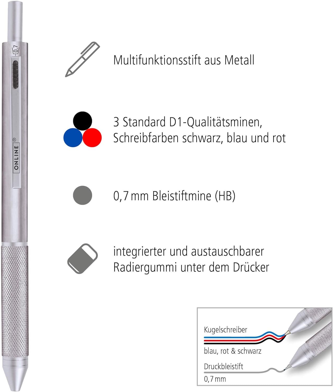 PAQ.3U MULTIPEN BOLIGRAFO 4 EN 1 PLATA 32045/3D Azul, Rojo, Negro, portaminas PAQ.3U MULTIPEN BOLIGRAFO 4 EN 1 PLATA 32045/3D Bolígrafo multifunción Bolígrafo multifunción