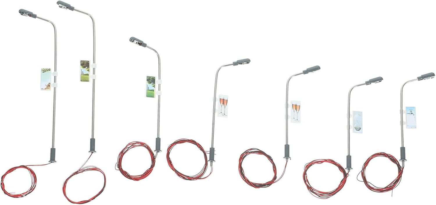Luci LED luminose: le 5 lampade da Plaza modello ferroviario OO HO sono dotate di luci LED luminose, fornendo un'atmosfera vivace e ben illuminata per il tuo modellismo ferroviario o layout dell'edificio. Facile installazione: queste luci sono complete di fili e LED, che le rendono e si illuminano. Basta collegare i fili a una fonte di alimentazione e guardare come le luci illuminano la scena. Struttura in acciaio: costruite con tubi in acciaio, queste lampade sono robuste e di lunga durata e resistenza all'usura. Uso: perfetto per vari scopi come modelli di tavoli da sabbia, decorazioni da giardino, ambienti entourage, intrattenimento per il tempo libero e modelli di scenari. Queste lampade aggiungono un tocco realistico a qualsiasi scena o layout. Design in scala: progettate in scala 1:100 (circa 10 cm), queste lampade sono per modelli in scala OO HO. Il dimensionamento accurato aggiunge autenticità al tuo modello ferroviario o al layout dell'edificio.