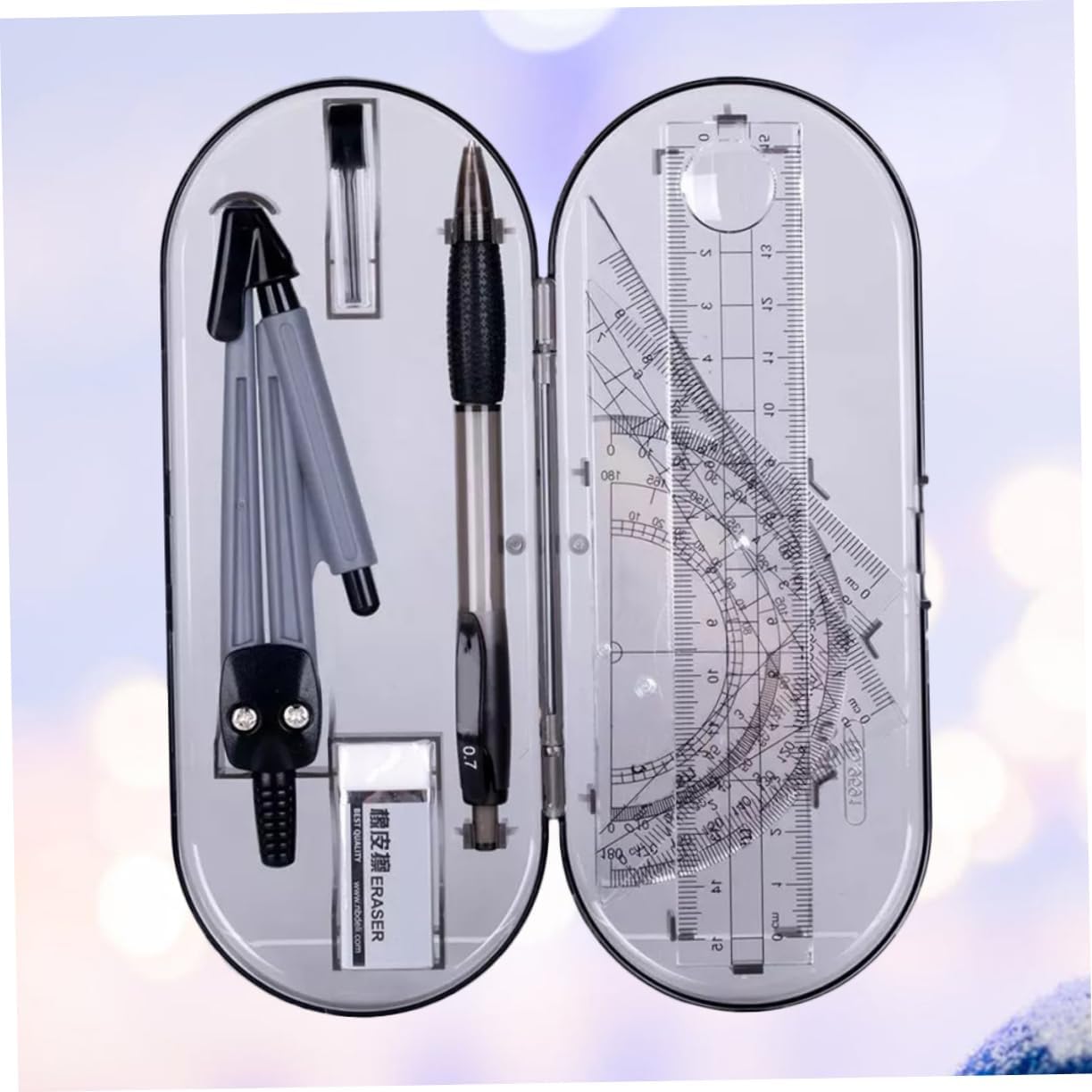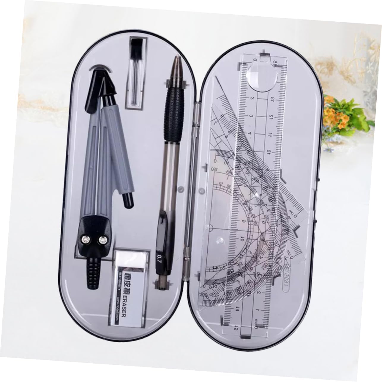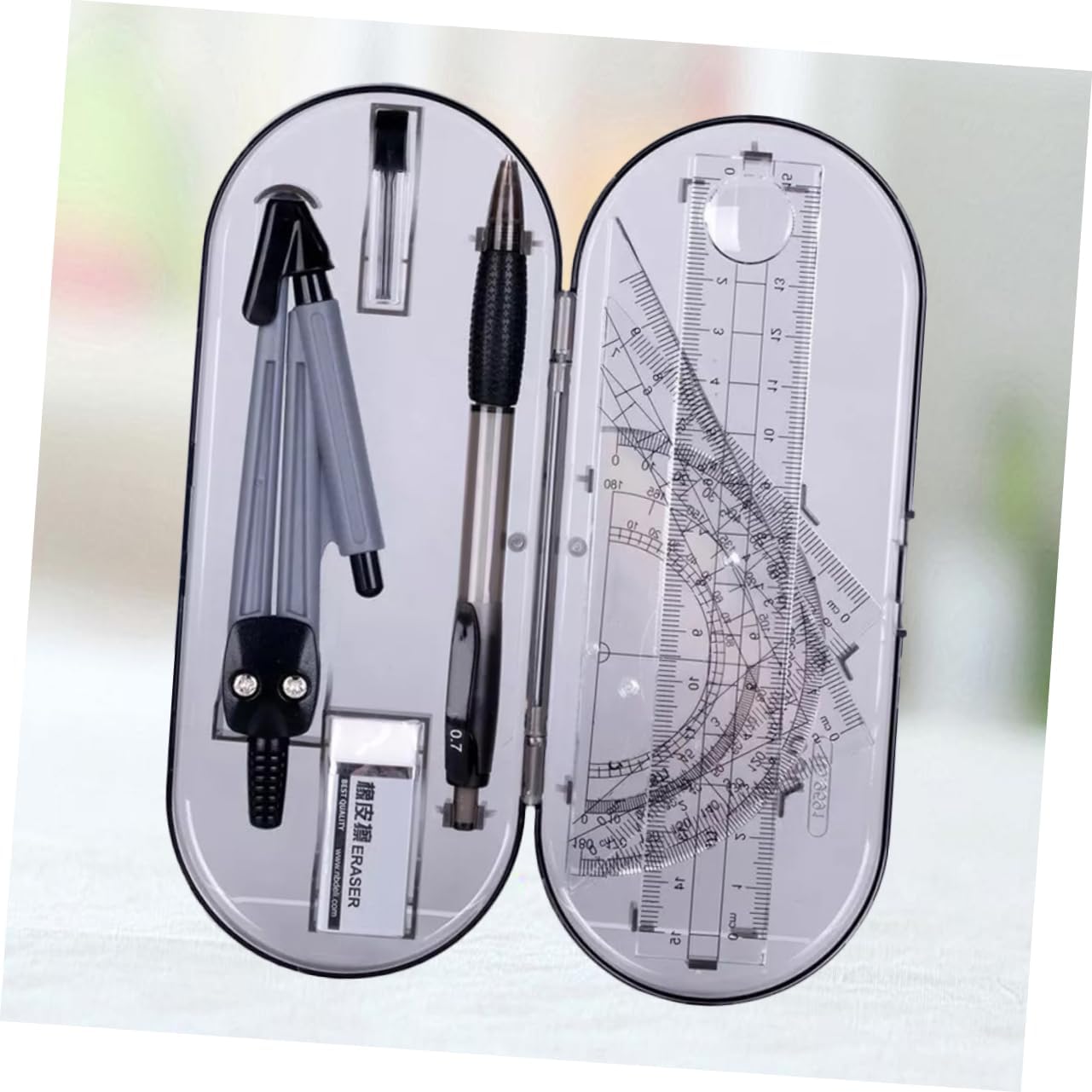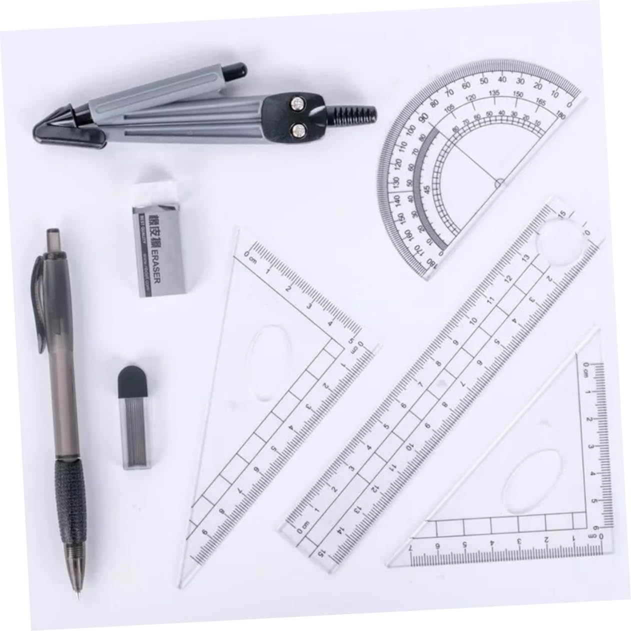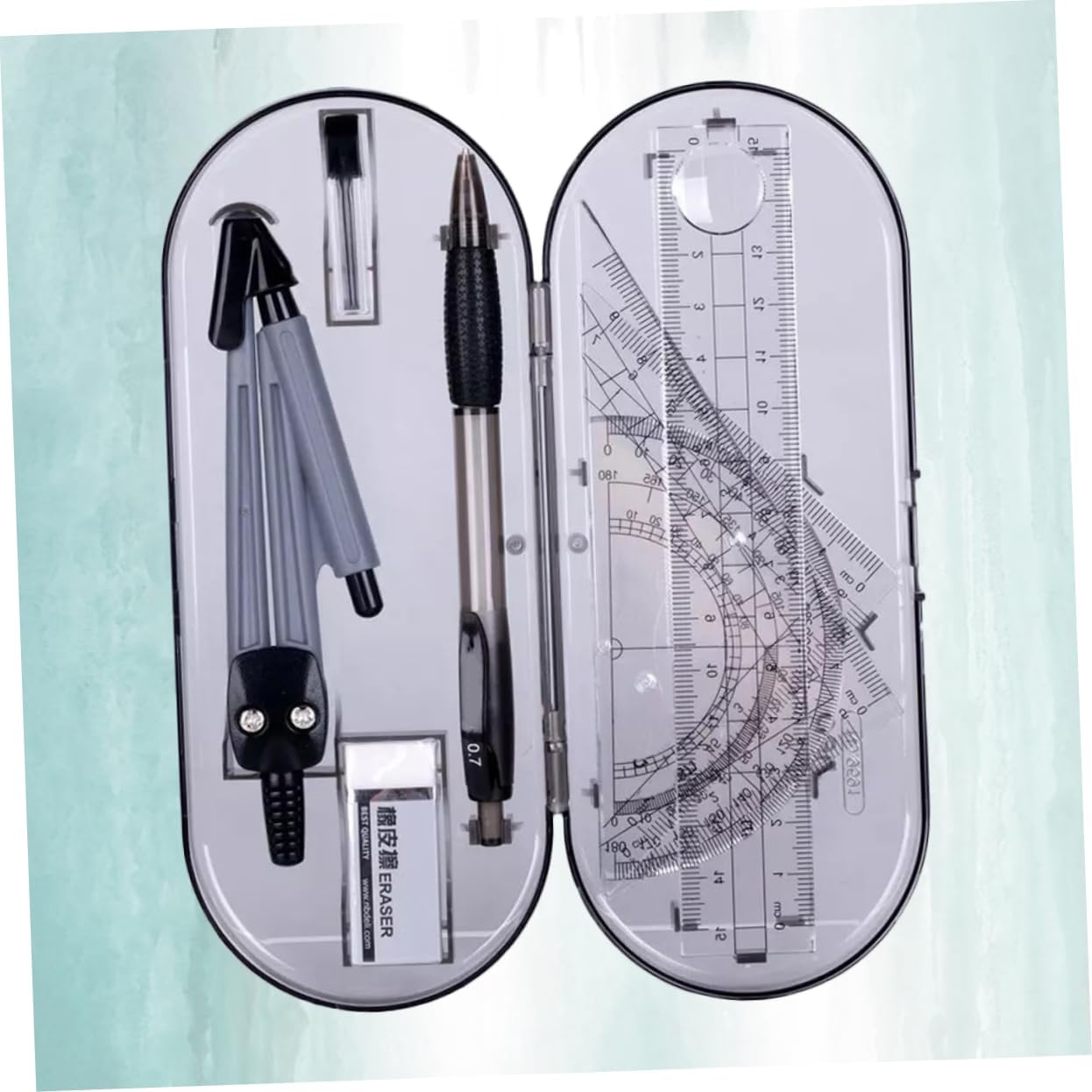 Bussole: un buon strumento per eseguire lavori di disegno, ti offre molta comodità, righello triangolare Righello triangolare: realizzato in materiale per lungo tempo e uso, kit da disegno Kit da disegno: adatto a scuola, ufficio, studenti, insegnanti, righello triangolare Righello dritto: una buona scelta per gli studenti, a loro piacerà molto, righello trascinante È leggero per un facile trasporto e stoccaggio