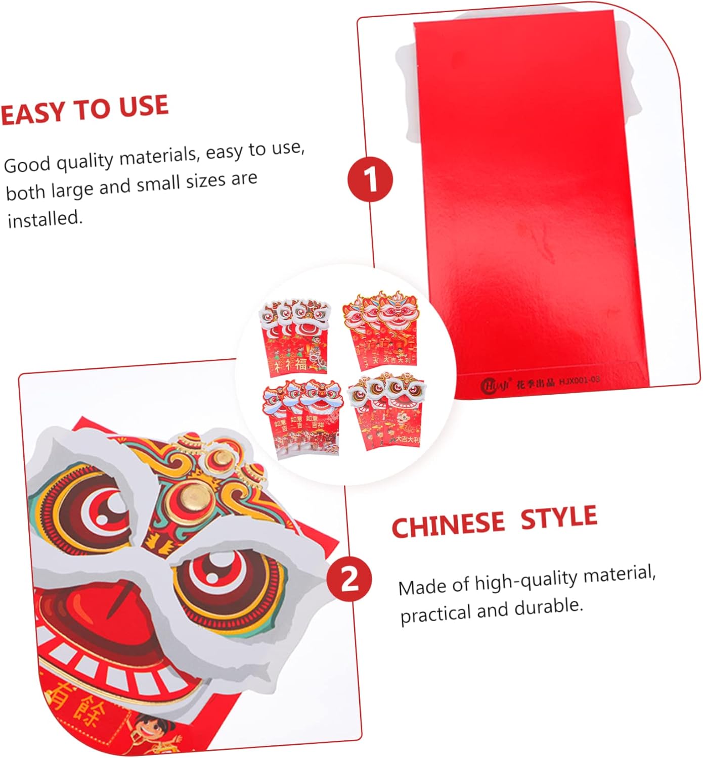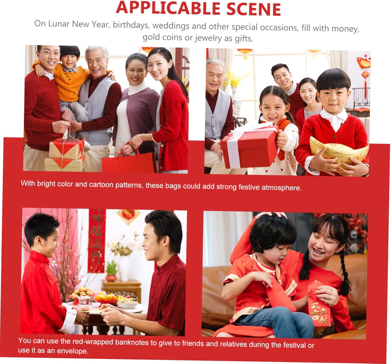 Prodotto con materiale di carta , pratico e durevole da usare. Applicabile a una varietà di scene, come il capodanno cinese, il dando ecc. Cancella motivi stampati, le benedizioni sono chiaramente visibili, e pratiche. Ogni busta rossa desidera ai destinatari di gioie, prosperità, buone benedizioni, buona fortuna. I modelli delle buste aggiungeranno un'atmosfera festosa, per garantirne la popolarità.