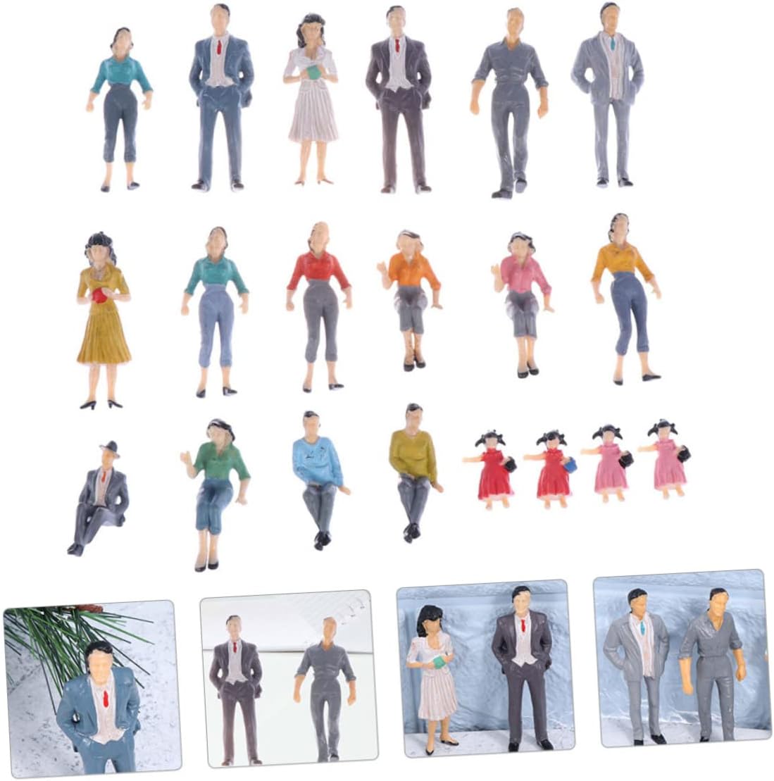 Giocattoli di layout architettonico: perfetti per edifici architettonici, layout di stazioni, modelli di progetti scolastici, decorazioni per mini case, ecc. Mini action figure: buona scelta per popolare le scene del tuo modello, aggiungere realismo e aiutare a esprimere le tue idee. Modello di persone minuscole: i nostri modelli di figure artificiali sono in colori casuali, molto decorativi. Figure di passeggeri dipinte: leggere e compatte, facili da riporre e mantenere. Persone bambini in scala 1:75: queste figurine di persone possiedono vari modelli, decoreranno bene la tua mini casa.