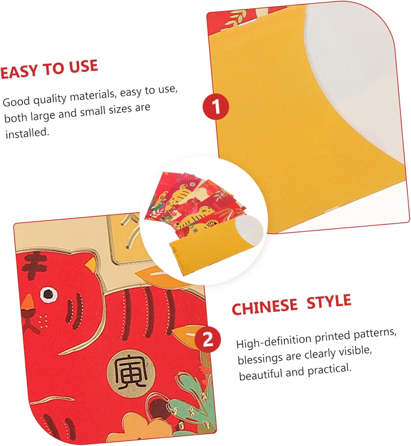 Pacchetti di denaro cinesi: progettati con diversi caratteri adorabili e frasi cinesi con auguri, eleganti e belli, buste rosse per il anno Porta soldi cinesi: graziosi motivi sono pieni di atmosfera festosa e ti portano il anno in arrivo con la tigre dello zodiaco, pacchetti rossi Pacchetti rossi in stile cartone animato: la quantità è abbastanza , il che può soddisfare molto bene le tue esigenze di utilizzo, non facili da danneggiare, tasche rosse in stile cinese Buste portafortuna: progettate con un aspetto grazioso e festoso, i più piccoli saranno attratti da queste buste rosse, pacchetti portafortuna Buste rosse in stile cinese: metti un po' di soldi nelle buste rosse come per capodanno, compleanno, festa, ecc., buste rosse con elementi cinesi