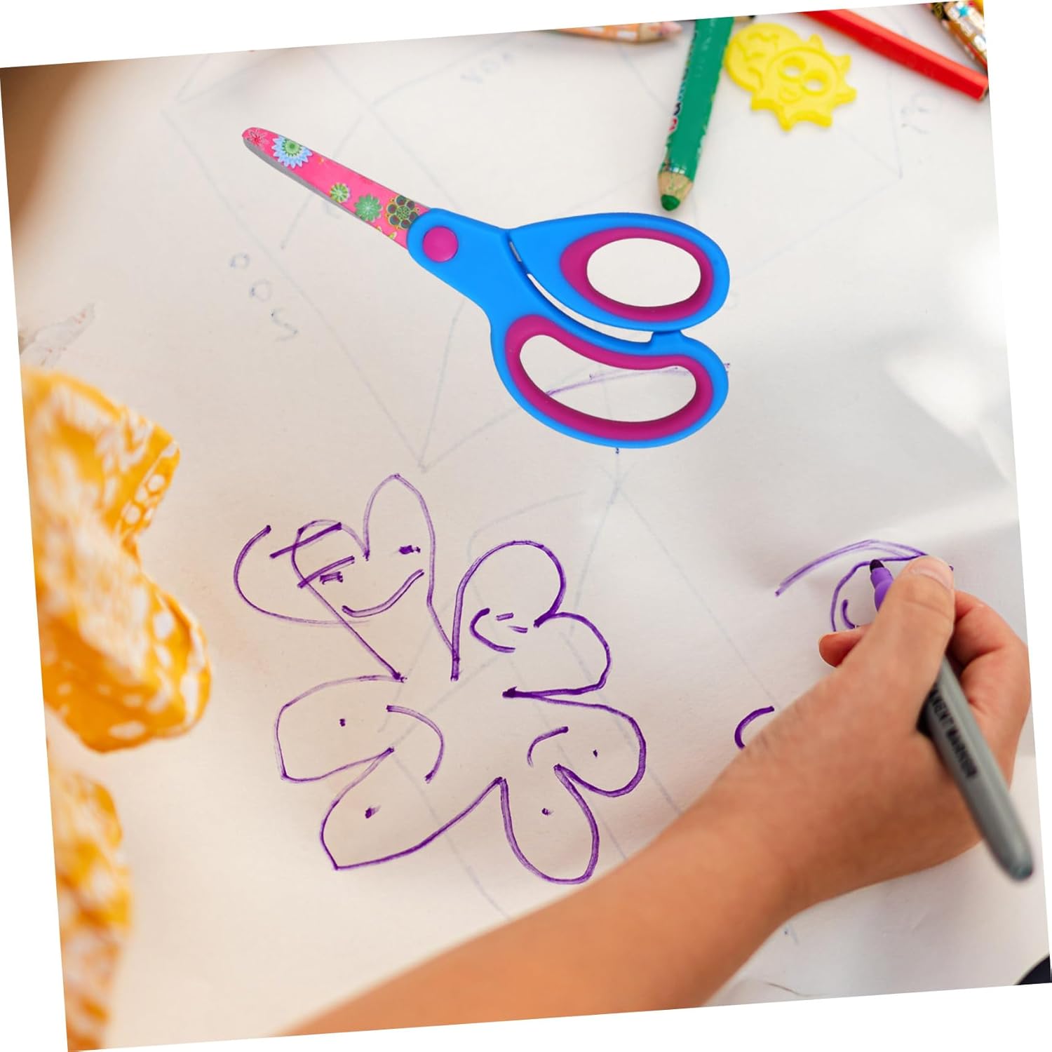 Forbici di sicurezza per bambini: le forbici per studenti possono essere pratiche per i tuoi amici che amano il fai da te e saranno molto felici, materiale scolastico per bambini Forbici per bambini piccoli-- il manico delle nostre forbici è fatto di buon materiale, che è più comodo da tenere e usare, forbici sfuse Piccole forbici: leggere, portatili, facili da trasportare e da utilizzare, possono offrirti comodità, forbici per bambini Forbici di sicurezza-- molto adatte per l'uso in aule, scuole, uffici e case, lavori manuali facili da completare, foto fai da te, album fotografici e altre attività, forniture artigianali per bambini Forbici artigianali: realizzate con acciaio inossidabile e materiali plastici di qualità superiore e per un uso a lungo termine, forbici scolastiche