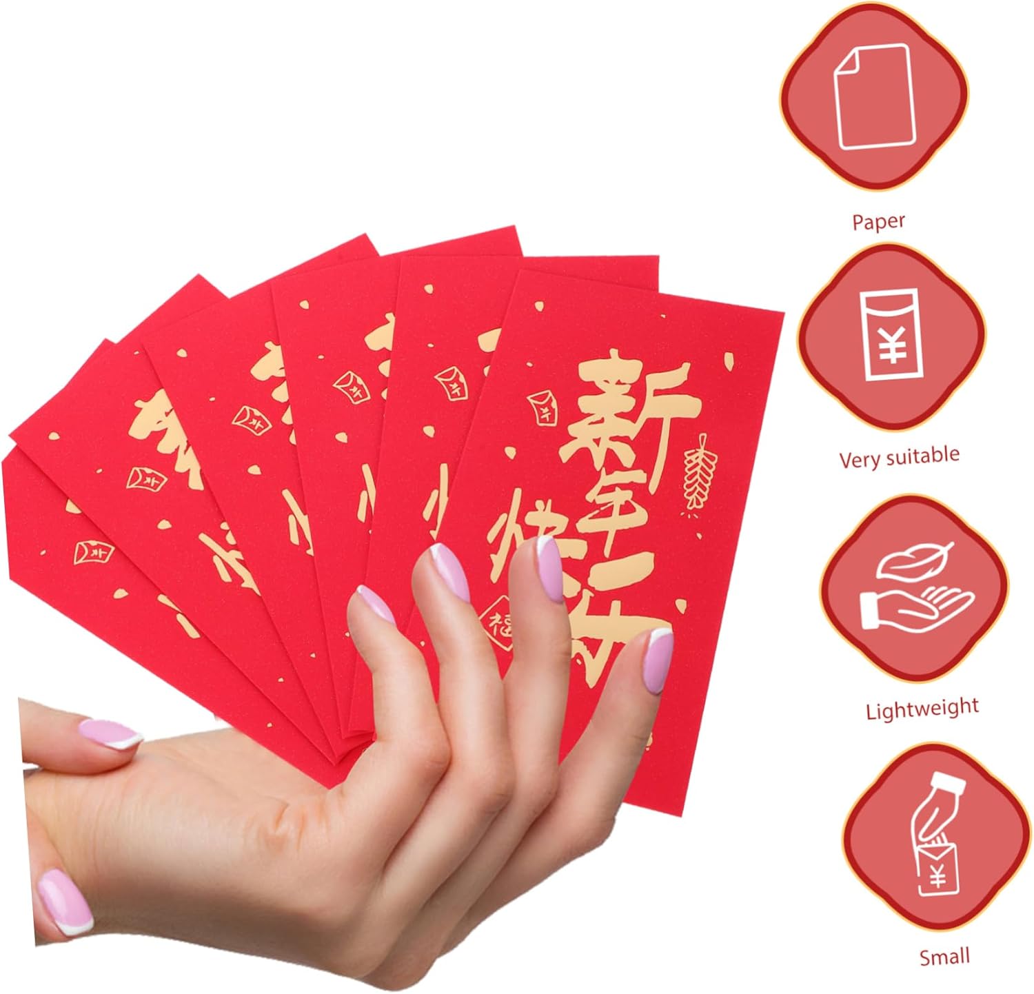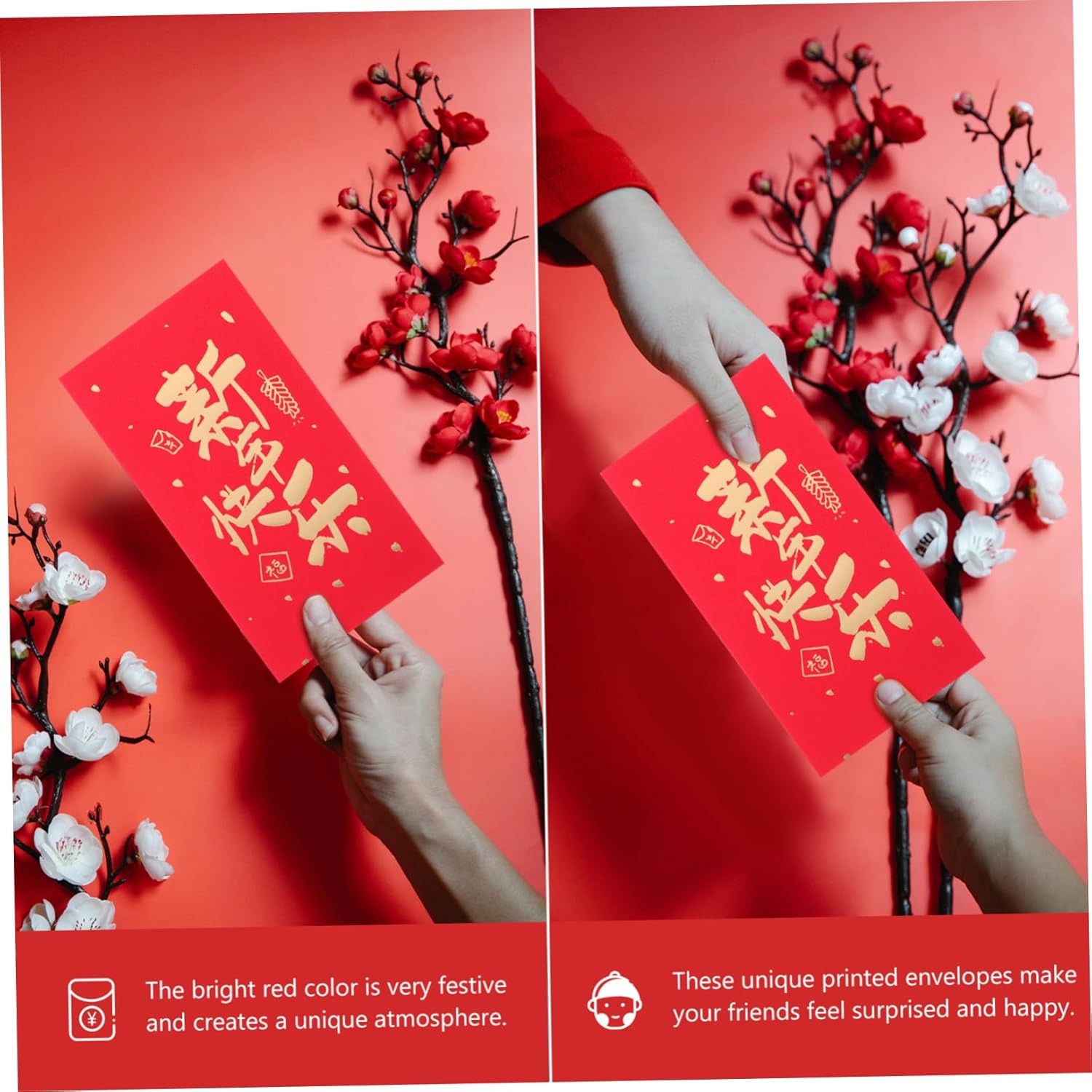 Festeggia il anno: il design a tema del anno è pensato appositamente per celebrare il anno e queste buste rosse sono un must nel anno lunare. Grandi quantità: è disponibile un gran numero di pacchetti rossi, garantendoti una abbondante. Ottima fattura: la straordinaria stampa sui pacchetti di soldi fortunati mostra una consistenza eccellente e il tuo gusto, rendendoli più decorativi. Durevoli e riutilizzabili: Realizzati in carta spessa, questi pacchetti rossi possono essere utilizzati ripetutamente senza strapparsi facilmente e possono essere conservati a lungo. Ampia applicazione: queste buste rosse sono un'ottima scelta per il capodanno cinese, matrimoni, anniversari e molte altre celebrazioni.