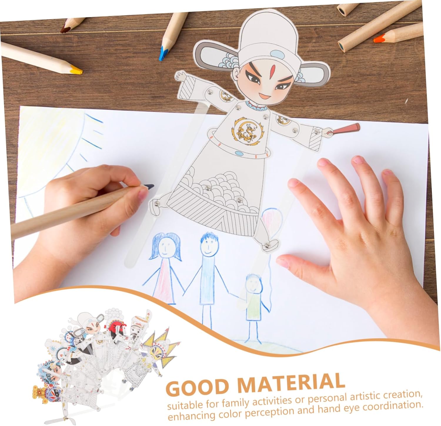 Divertimento creativo con l'arte: le marionette vuote ispirano la creatività, rendendole adatte al familiare o a progetti artistici individuali, migliorando le capacità artistiche, modelli di marionette, giocattolo per ombre fai da te per Collezione di arte decorativa: le opere dipinte completate possono essere utilizzate come decorazioni per interni, aggiungendo un'atmosfera estetica , o come oggetti da collezione che mostrano il gusto personale, attività con burattini per , burattini da favola Esperienza di artigianato tradizionale: crea caratteri cinesi a mano, offrendo un'esperienza culturale unica e del patrimonio cinese, esperienza di marionette, kit per la creazione di marionette Attività interattiva: ideale per feste e riunioni, questo kit promuove l'interazione sociale e il lavoro di squadra, creando un divertente gioco di ombre cinesi, kit per la creazione di burattini a mano Strumento di apprendimento educativo: serve come materiale didattico per aiutare i a comprendere la cinese e le arti tradizionali, promuovendo l'interesse e il rispetto per la cultura, la pittura artigianale, gli strumenti per burattini