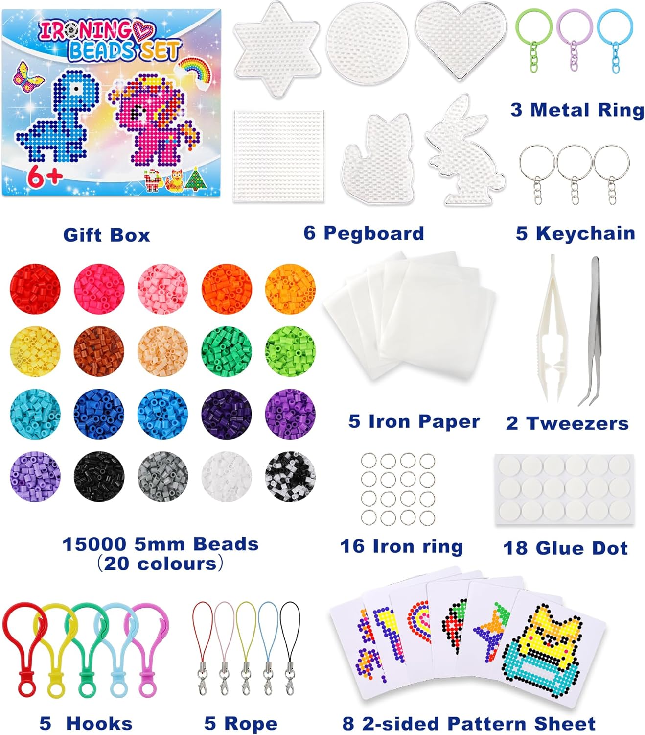 【Materiale Adatto ai Bambini】 - Ogni perline da stirare è realizzato con materiali conformi agli standard internazionali per garantire che i nostri prodotti siano durevoli e lisci per un uso sicuro a lungo termine, non causeranno alcun odore di plastica che si scioglie e faranno durare più a lungo il colore dei tuoi capolavori. La sicurezza di tuo figlio è la nostra priorità 【Creatività e Immaginazione Senza Fine】 - Ophy Set Perline da Stirare viene fornito con 15.000 pezzi 5mm Perline da Stirare in 20 colori vivaci, 5 ganci colorati, 5 portachiavi, 5 corde, 3 cerchi in metallo e 18 punti di colla. Molti accessori e vari colori significano possibilità di opere d'arte più creative. Possono assemblare e progettare liberamente i propri mestieri fai-da-te unici per migliorare la concentrazione, le capacità motorie e la creatività 【 Incredibilmente Facile da Giocare 】 - Ophy Perline a Fusione Set fornisce 16 modelli, 6 Pegboard per e 5 carte da stiro. Puoi posizionare il modello che preferisci sotto il pannello forato e iniziare a realizzare le tue creazioni artistiche e artigianali in 2D e 3D . Oltre ai 16 modelli, puoi anche andare online per trovare qualsiasi modello, personaggio o emoji che desideri realizzare 【Ampia Applicazione】 - puoi utilizzare Perline a Fusione per realizzare anelli, ciondoli, accessori per catene di telefoni cellulari, accessori per borse da donna, ecc. Set regalo perfetto per arti e mestieri per compleanni, vacanze o attività indoor/outdoor. È un Set Perline da Stirare versatile che intratterrà i bambini per ore, è anche un'attività di intrattenimento adatta a molti bambini per giocare insieme, sperimentare la condivisione e lo scambio di idee tra loro, rendendolo perfetto per i giorni di pioggia e i momenti di legame familiare 【Facile da Organizzare】 - Il nostro Set Perline da Stirare viene fornito con una scatola di immagazzinaggio a 3 strati e una scatola di imballaggio, che semplifica l'organizzazione e la conservazione di tutti i pezzi. Niente più perline da stirare persi o ricerca infinita del colore giusto. Mantieni tutto organizzato e pronto per il tuo prossimo progetto