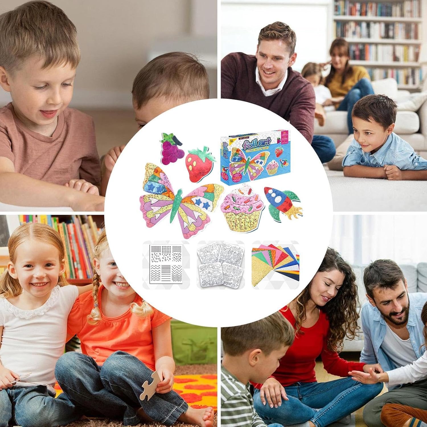 Libera la creatività del tuo bambino: con 4 lavagne e 48 fogli di carta colorata in alluminio, il tuo bambino ha il grande spazio creativo di cui ha bisogno per dare libero sfogo alla sua immaginazione Aumenta la creatività per tutte le età: questo kit facile da usare e da tagliare aumenta l'efficienza creativa. Include 1 cornice grafica che rende il fai da te facile e ideale per bambini di tutte le età Pratica la coordinazione delle mani: il set artistico in foglio di alluminio promuove le capacità creative dei bambini e affina le loro capacità motorie, le loro abilità pratiche e la coordinazione delle mani attraverso la progettazione dei propri design Crea adesivi abbaglianti: trasforma il normale foglio di alluminio in dipinti luminosi che risaltano e poi aggiungi adesivi accattivanti per creare opere d'arte abbaglianti che stupiscono e ispirano con la loro brillantezza scintillante SICURO ED ECOLOGICO Questo kit artistico con piastre in EVA morbide e adesivi in foglio di alluminio è sicuro, ecologico e realizzato con materiali che non si rompono facilmente, garantendo un'esperienza innocua e sicura per i bambini