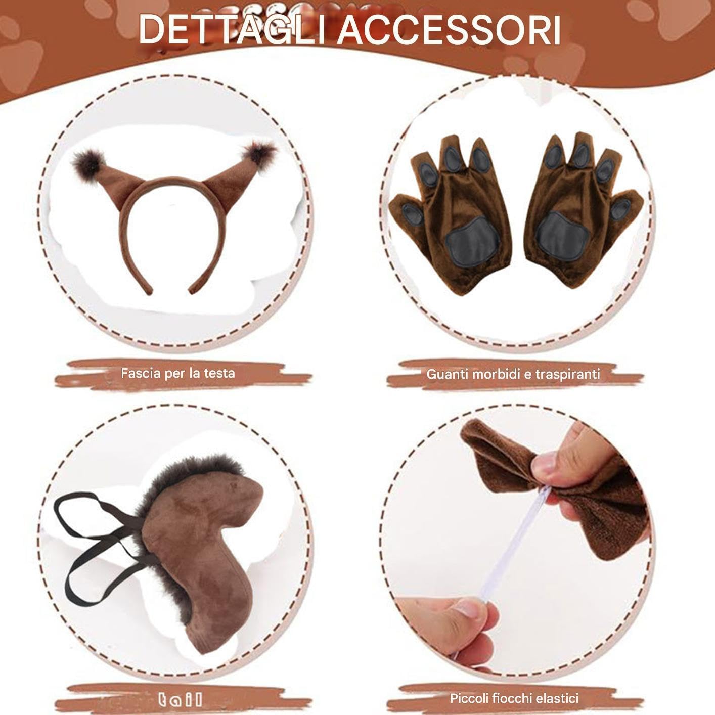 Orecchie da Scoiattolo - per Cosplay di Halloween con Coda,Completo Costume Animale Con Guanti,Per Pasqua Compleanno Feste Carnevali Teatro Recite Fotoshoot
