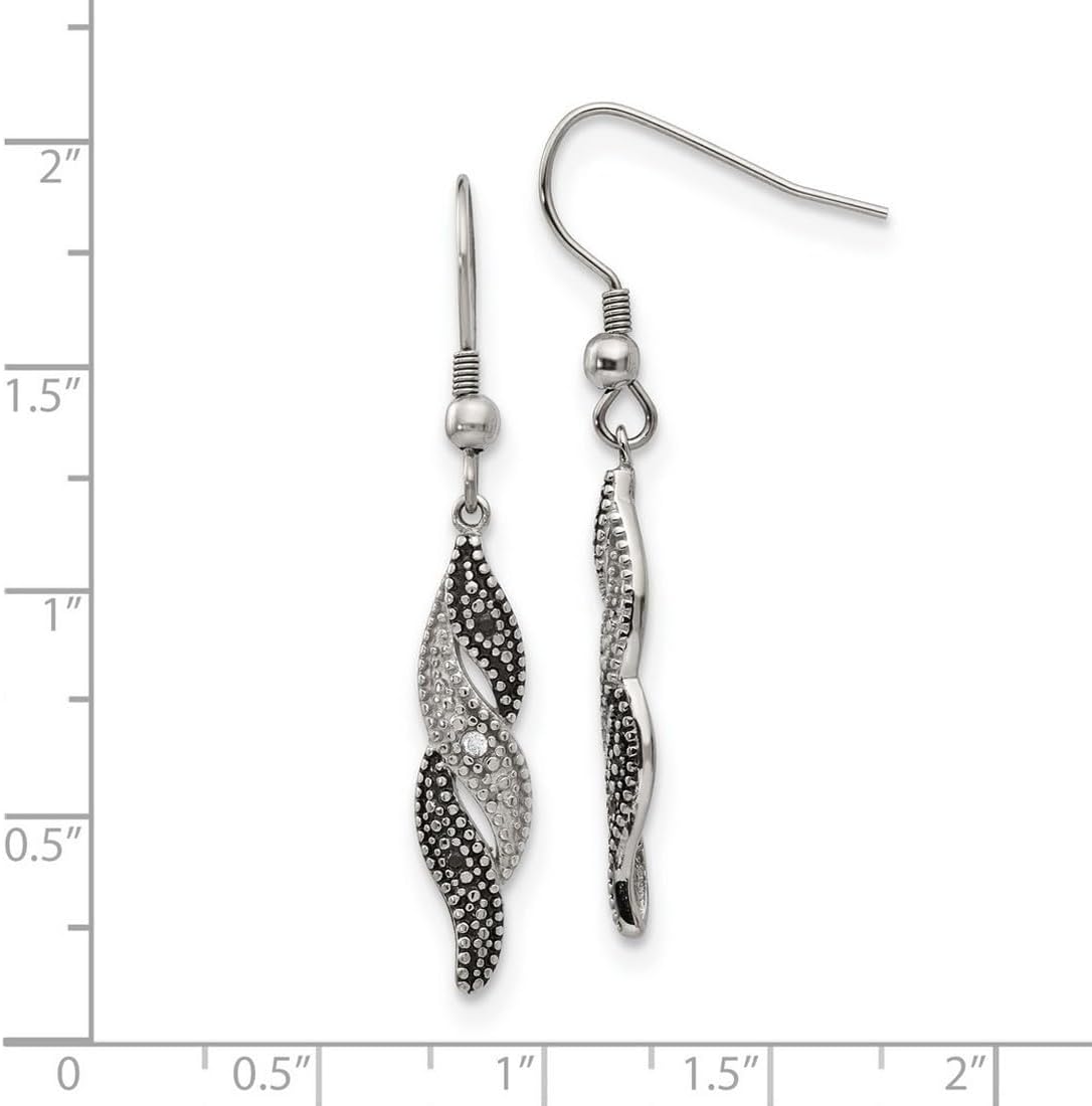 Orecchini a gancio in acciaio inossidabile con zirconi cubici - Acciaio inossidabile massiccio - GioielliStile Web: QTE257641 - Portagioie gratuito - Dimensioni: 47 x 7 mm di larghezza Larghezza articolo: 7 mm. Lunghezza articolo: 47 mm. Chiusura dell'orecchino: filo francese. Tipo di orecchino: pendente. Finitura: lucida e invecchiata. Potenziali metodi di miglioramento: ossido di zirconio. Sintetico. Alcuni sono rivestiti con un prodotto che rende la pietra più resistente. Cura e manipolazione: Ossido di zirconio: pulire con acqua calda e sapone e un panno morbido.