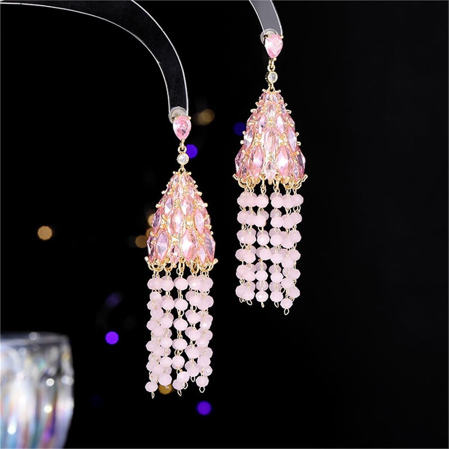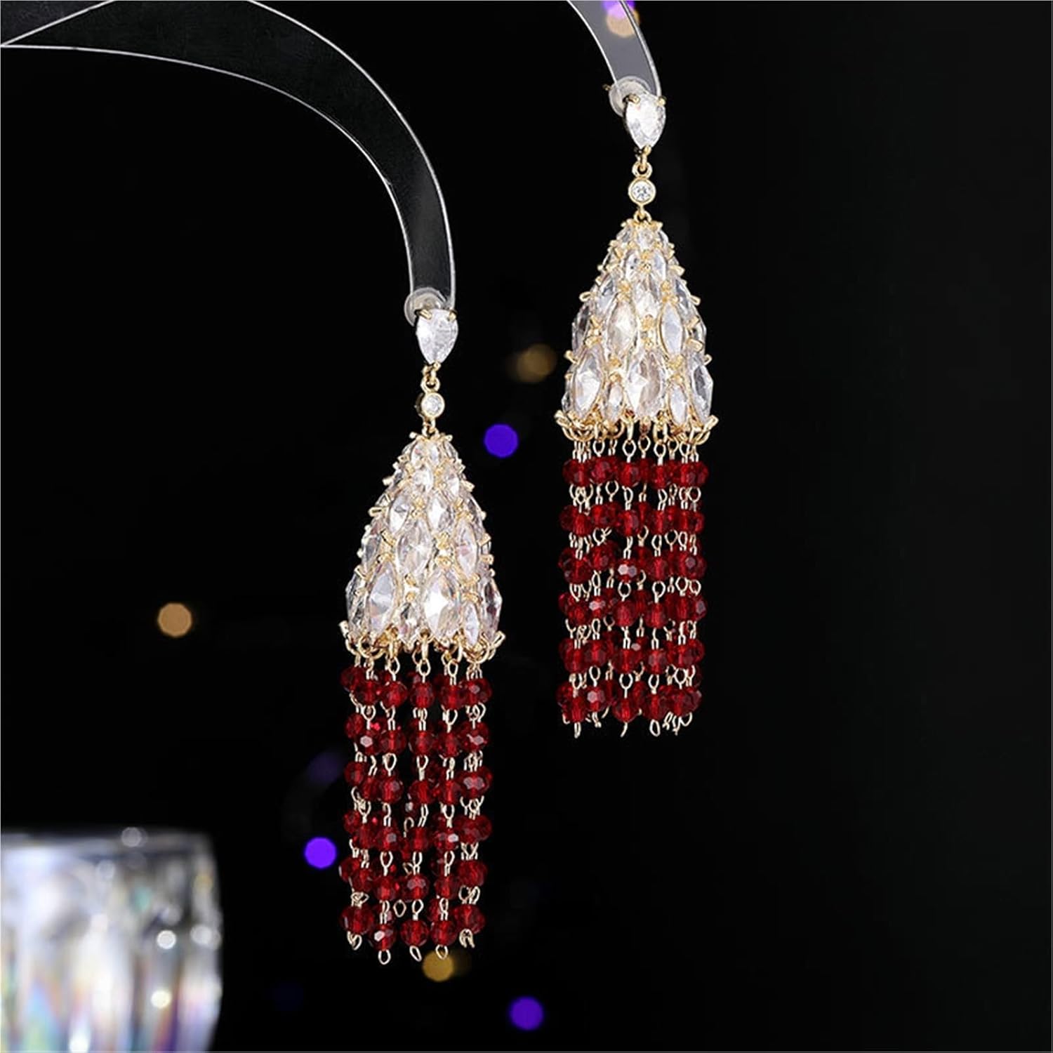 Forma: a goccia Processo di trattamento: Intarsiato con zircone Elementi popolari: nappe Stile: Esagerato Categoria prodotto: Orecchini