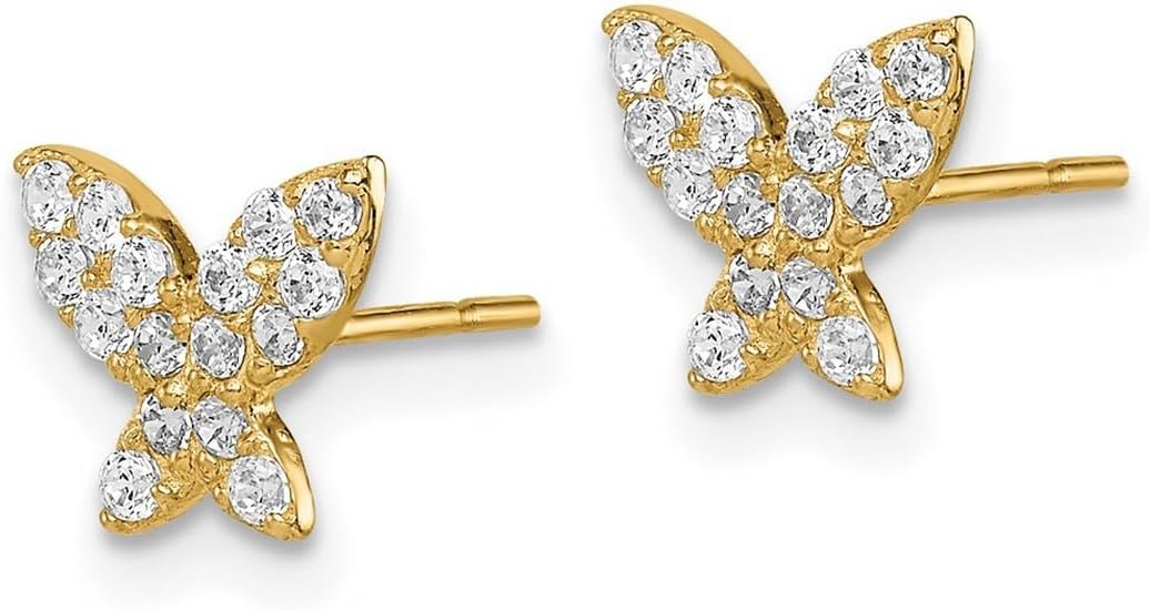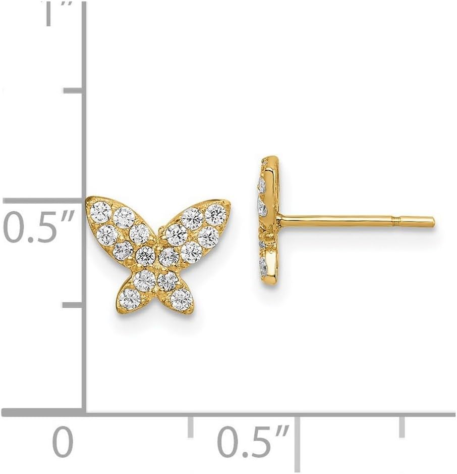 Orecchini a perno Madi K con farfalla e zirconi cubici da 14 ct - Oro giallo 14 ct - Stile: QTE393650Y - Confezione regalo che migliora il potenziale [Metodi: Zirconi cubici] - Sintetico. Alcuni sono ricoperti con un prodotto che rende la pietra più resistente. [Carica e maneggiamento: ossido di zirconio] – Pulire con acqua calda e sapone e un panno morbido.