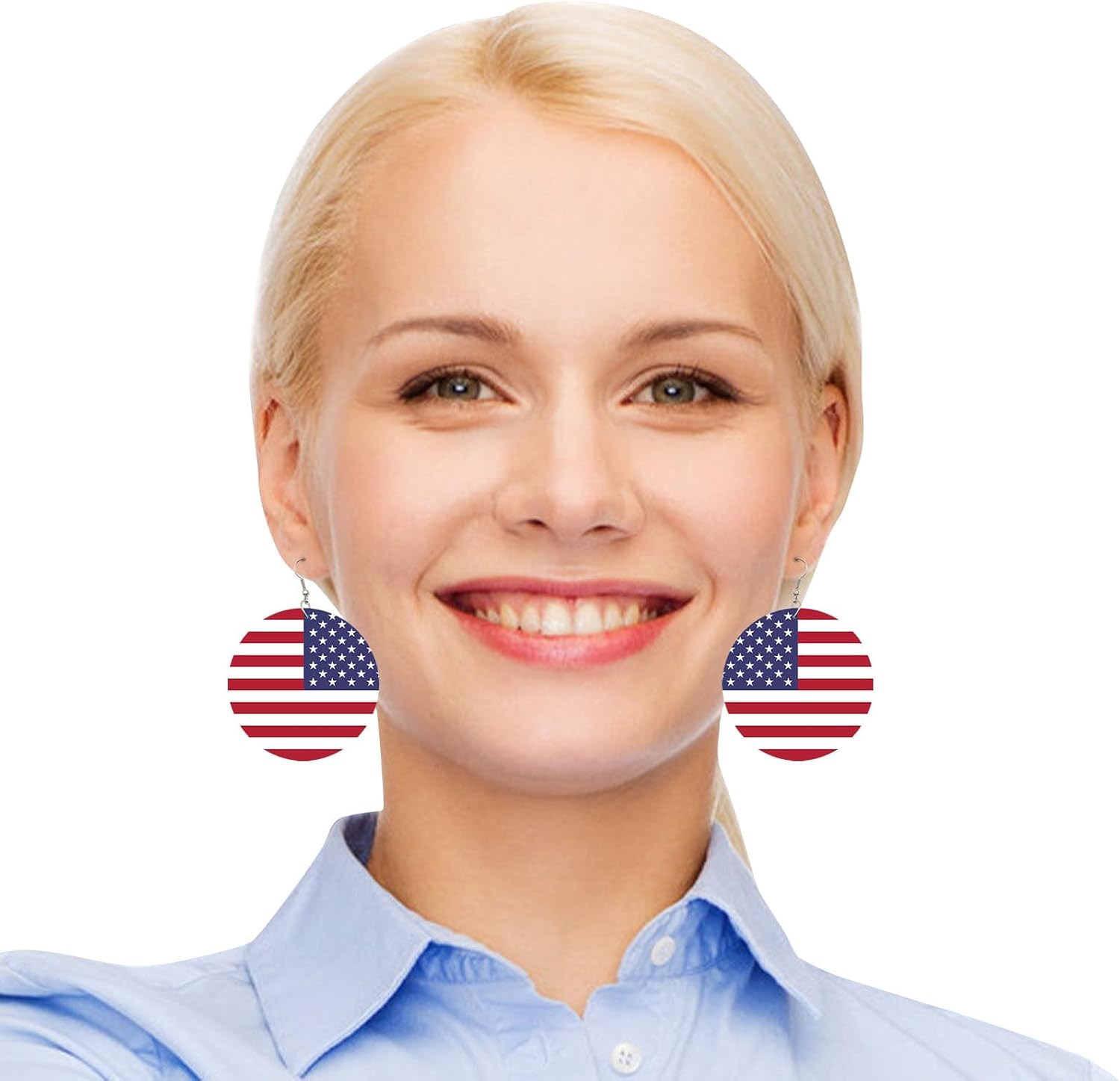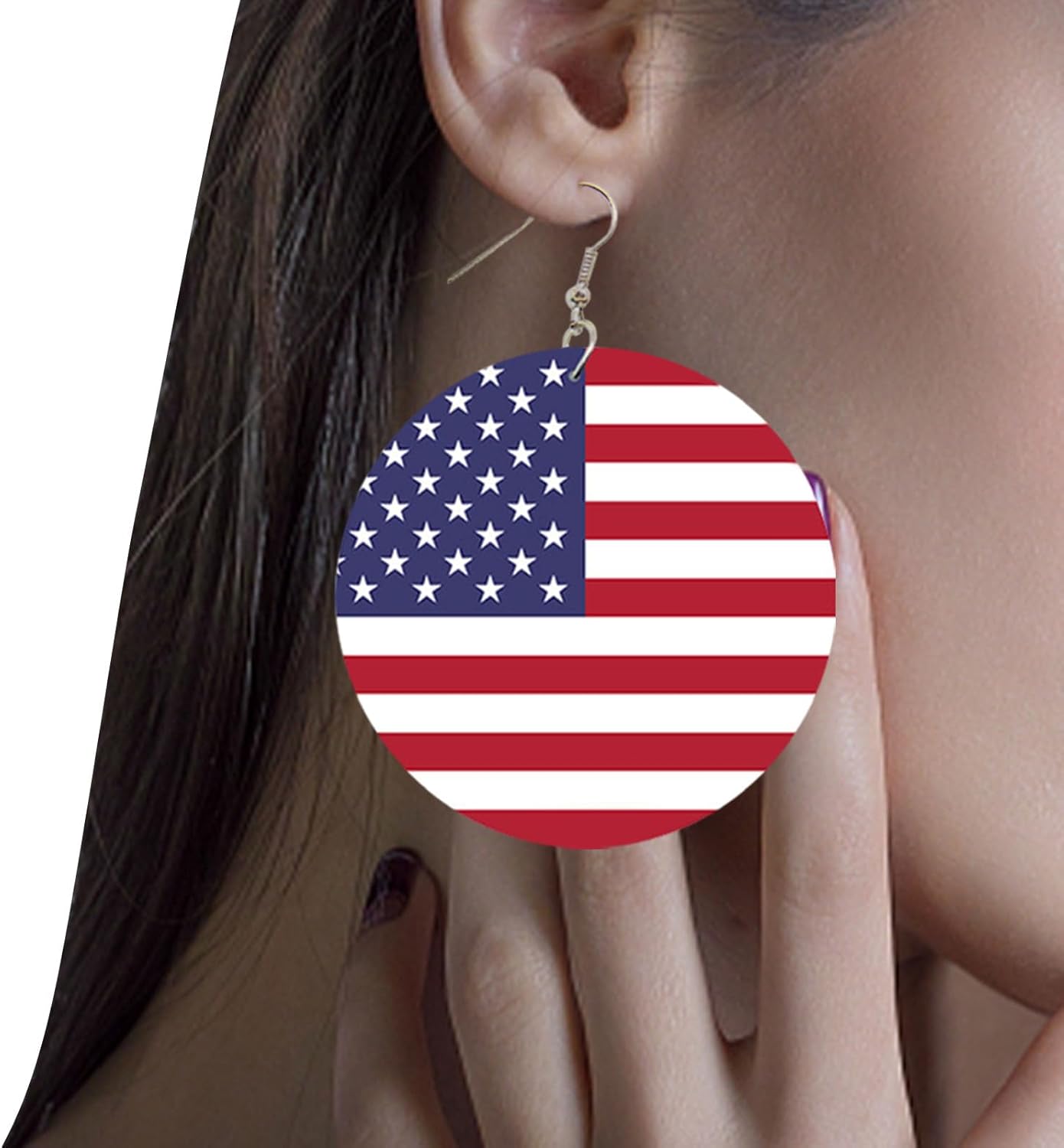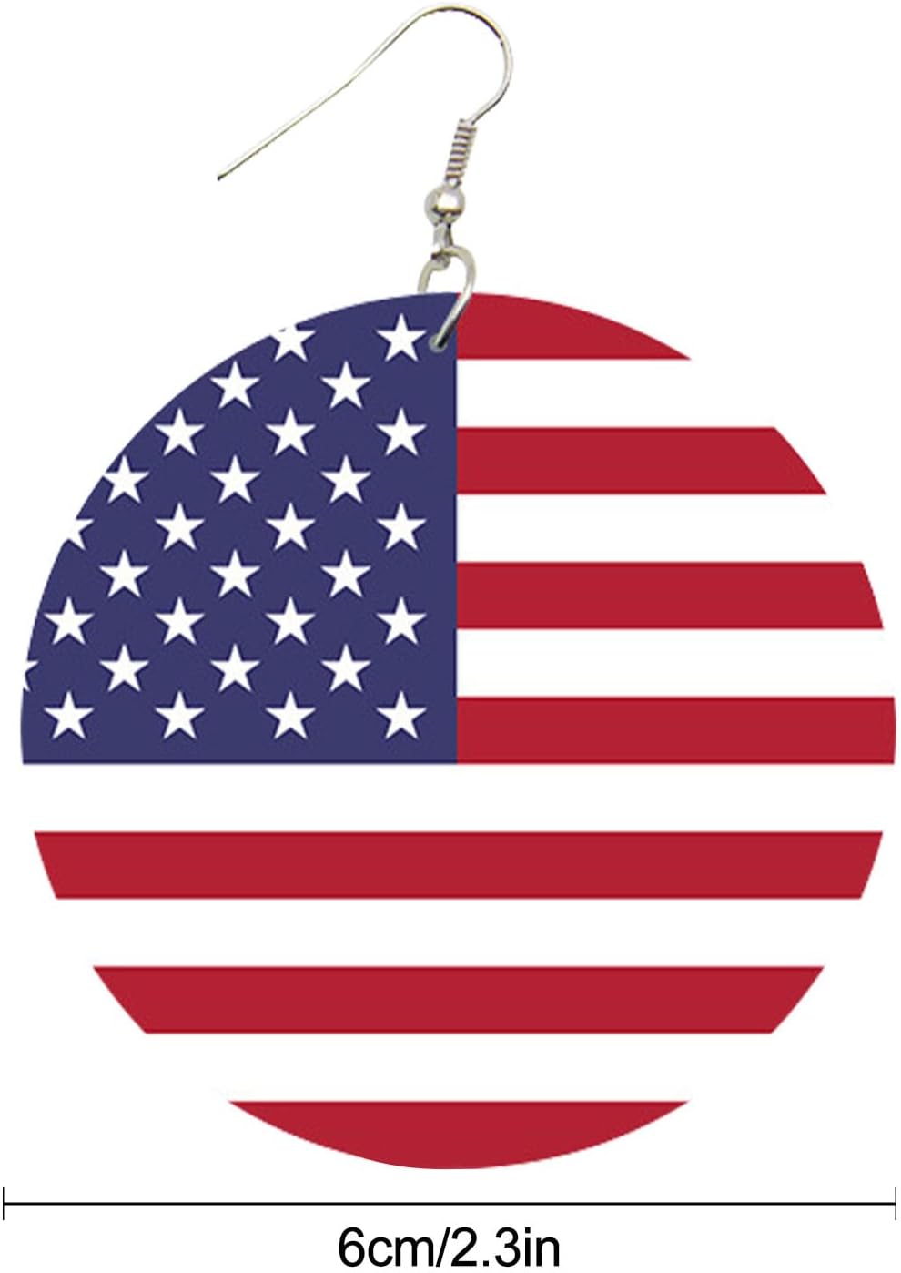 Descrizione del prodotto: Gli orecchini pendenti sono ispirati alla bandiera americana e adottano i colori classici di bianco, blu e rosso, che sono luminosi e accattivanti, mostrano pienamente lo spirito patriottico e si rivolgono all'atmosfera del festival. Possono funzionare bene con diversi vestiti, acconciature e trucco e aiutarti a creare look attraenti. Specifiche tecniche: Materiale: legno + lega. Dimensioni: diametro di circa 6 cm. Peso: circa 15 g. Contenuto della confezione: 1 orecchino con bandiera americana.