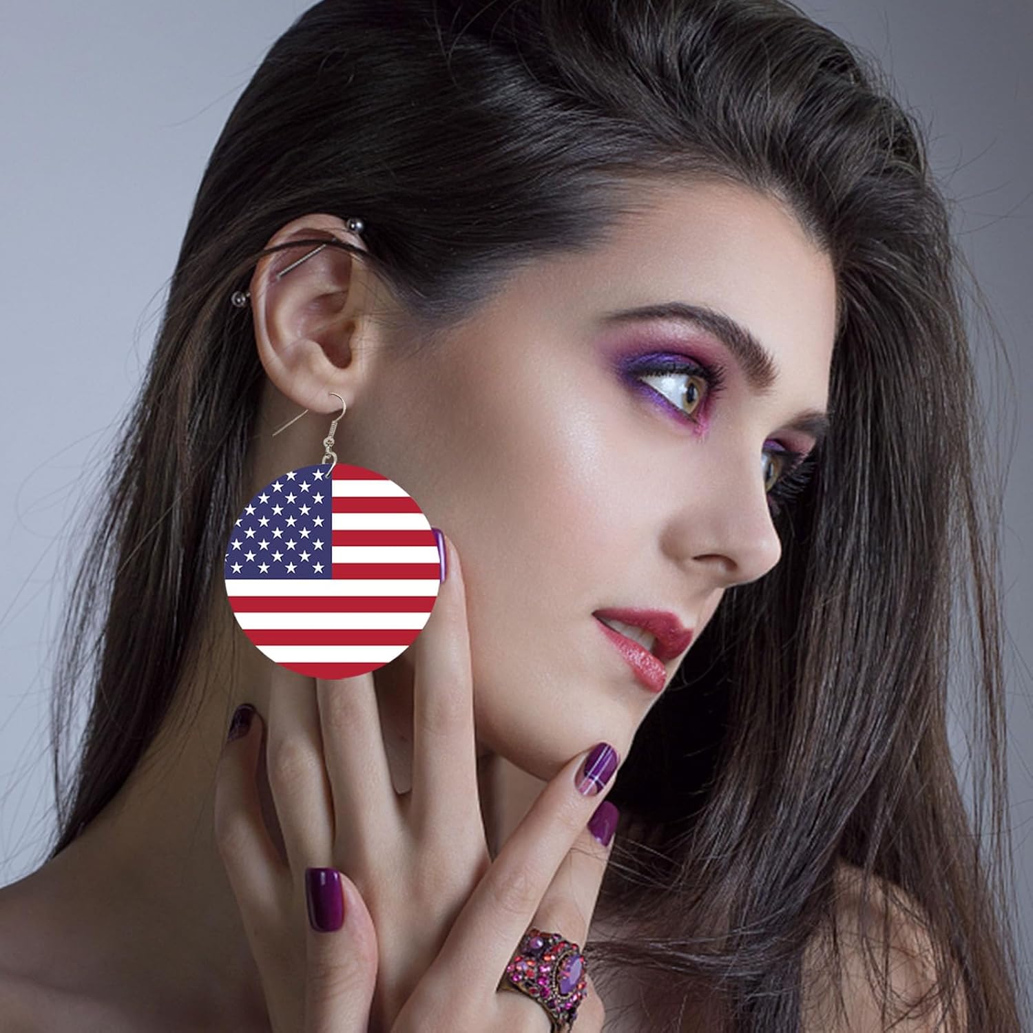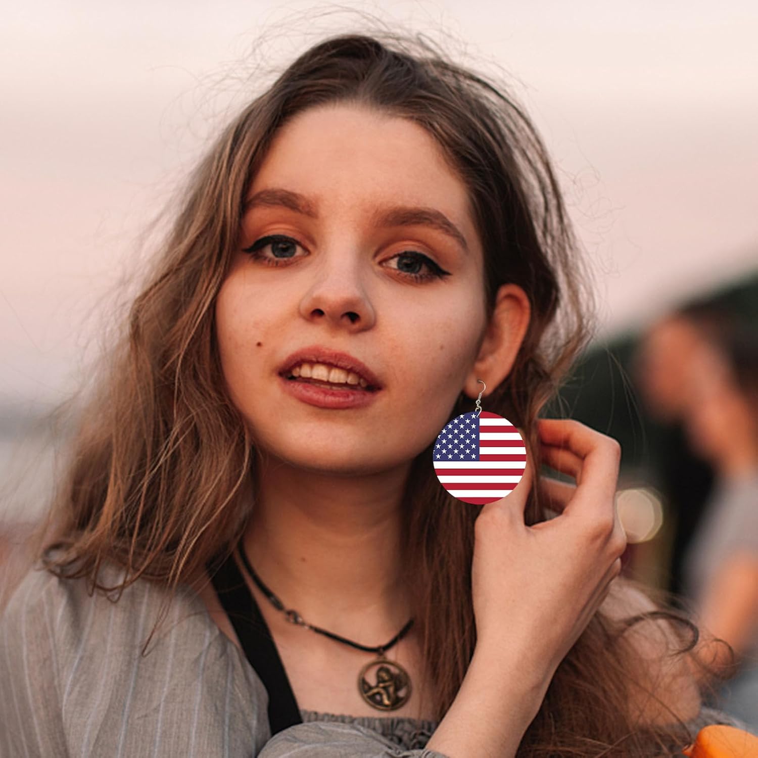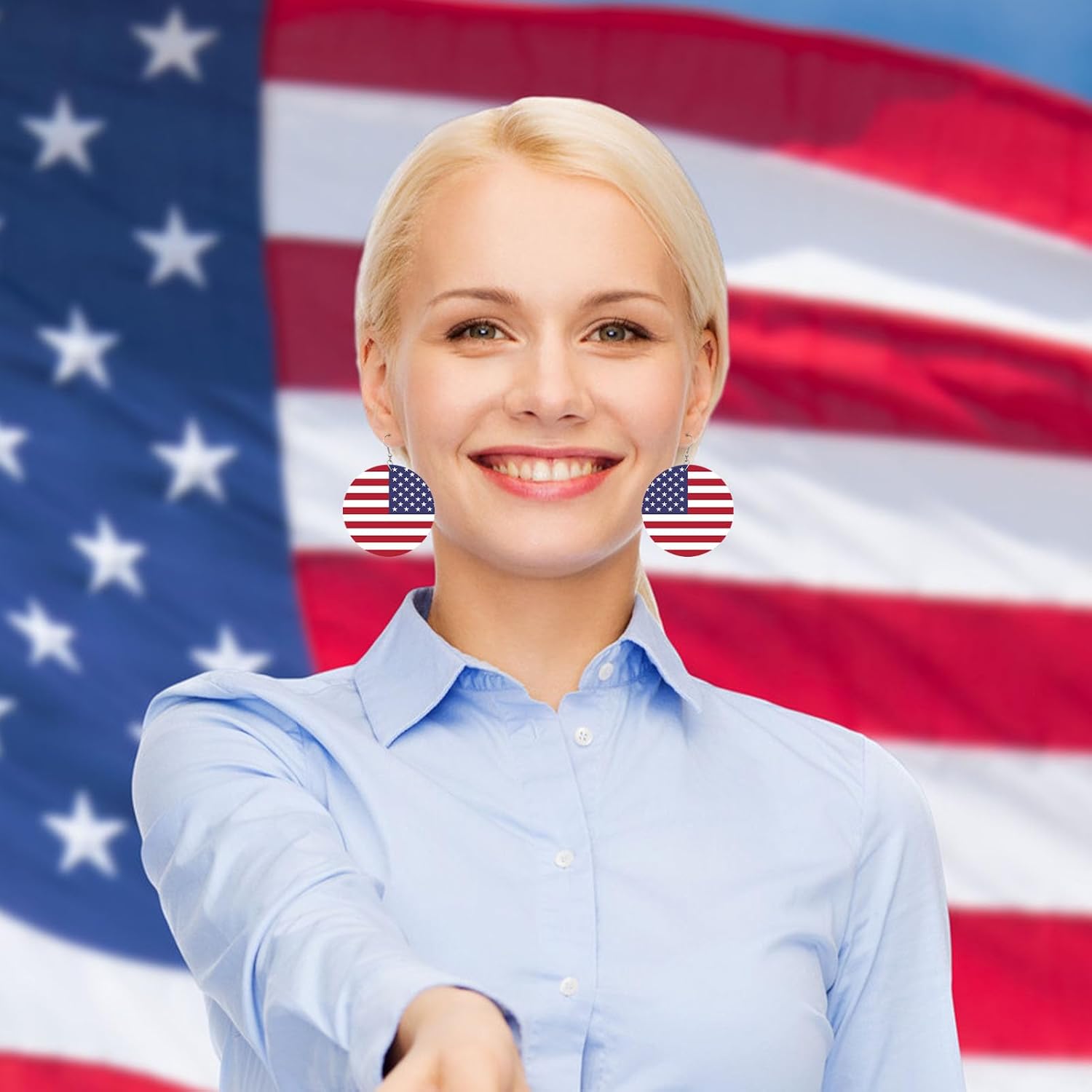 Descrizione del prodotto: Gli orecchini pendenti sono ispirati alla bandiera americana e adottano i colori classici di bianco, blu e rosso, che sono luminosi e accattivanti, mostrano pienamente lo spirito patriottico e si rivolgono all'atmosfera del festival. Possono funzionare bene con diversi vestiti, acconciature e trucco e aiutarti a creare look attraenti. Specifiche tecniche: Materiale: legno + lega. Dimensioni: diametro di circa 6 cm. Peso: circa 15 g. Contenuto della confezione: 1 orecchino con bandiera americana.
