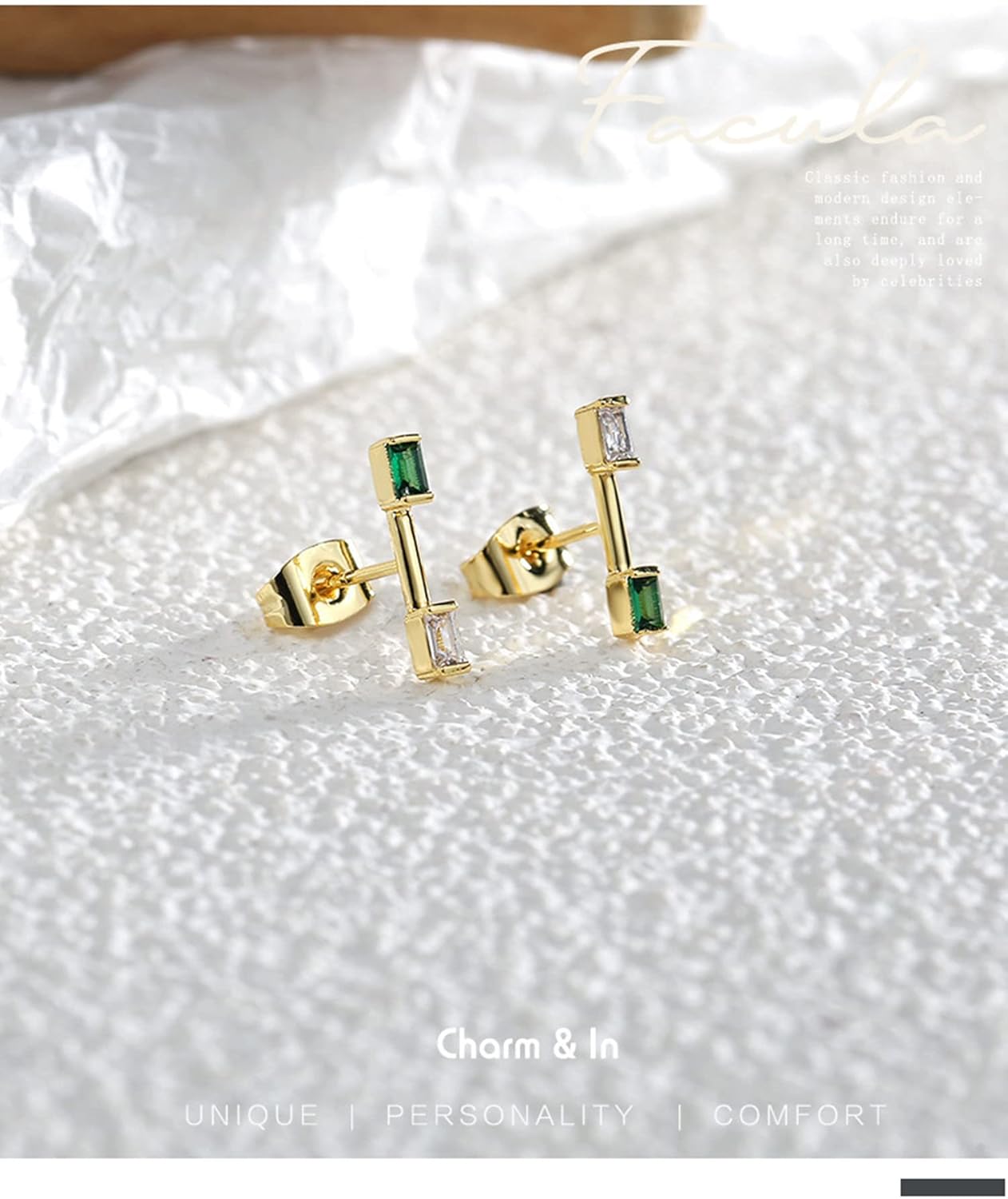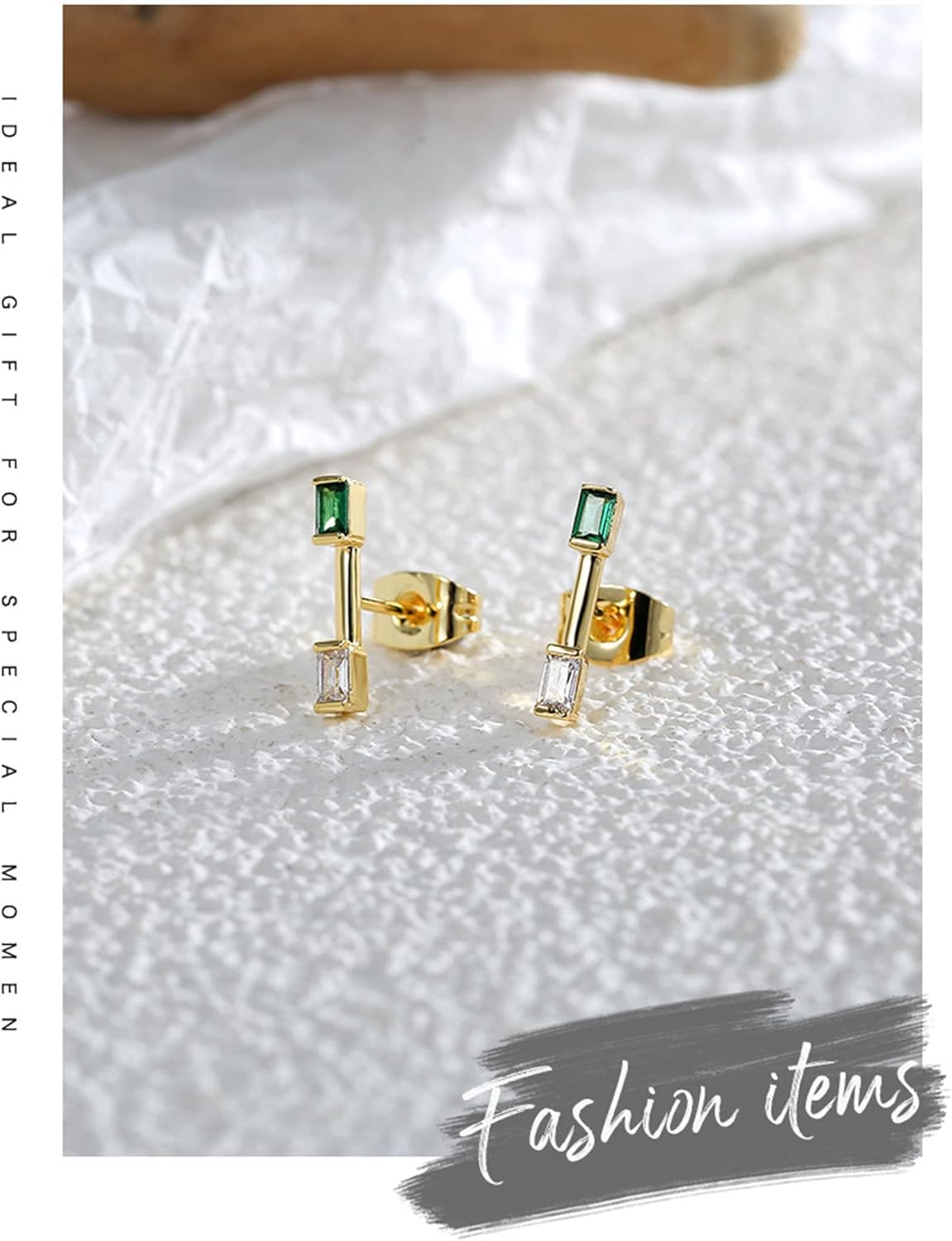 Orecchini da donna Orecchini a bottone in argento sterling Orecchini da donna con aquilone trafitto Elegante zircone verde quadrato geometrico alla moda