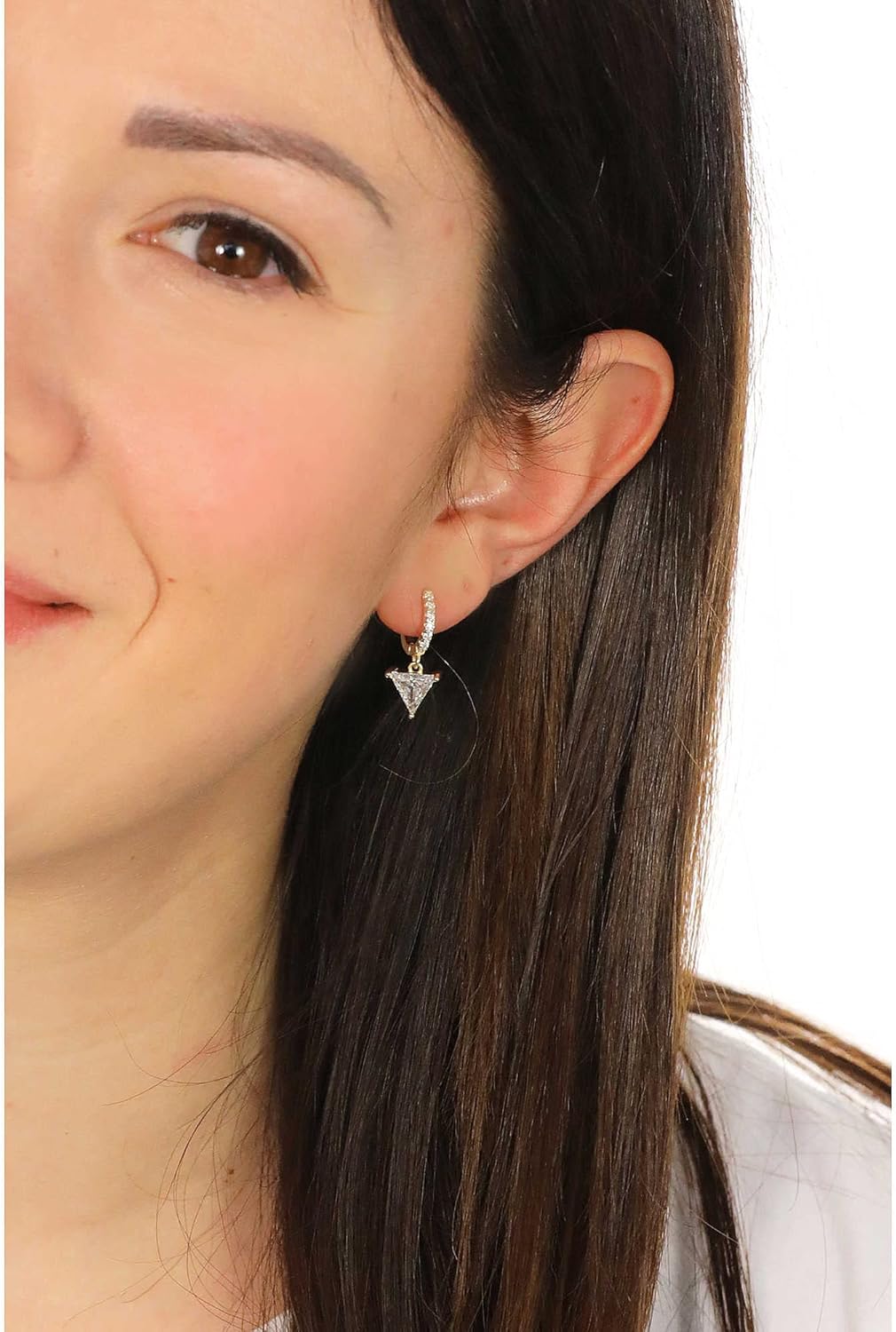 Orecchini da donna di GioiaPura. Gioiello realizzato in argento 925 color galvanica oro con zirconi di colore bianco. Chiusura: a scattino. Simbolo: punto luce triangolo. La referenza è ins029or008plwh