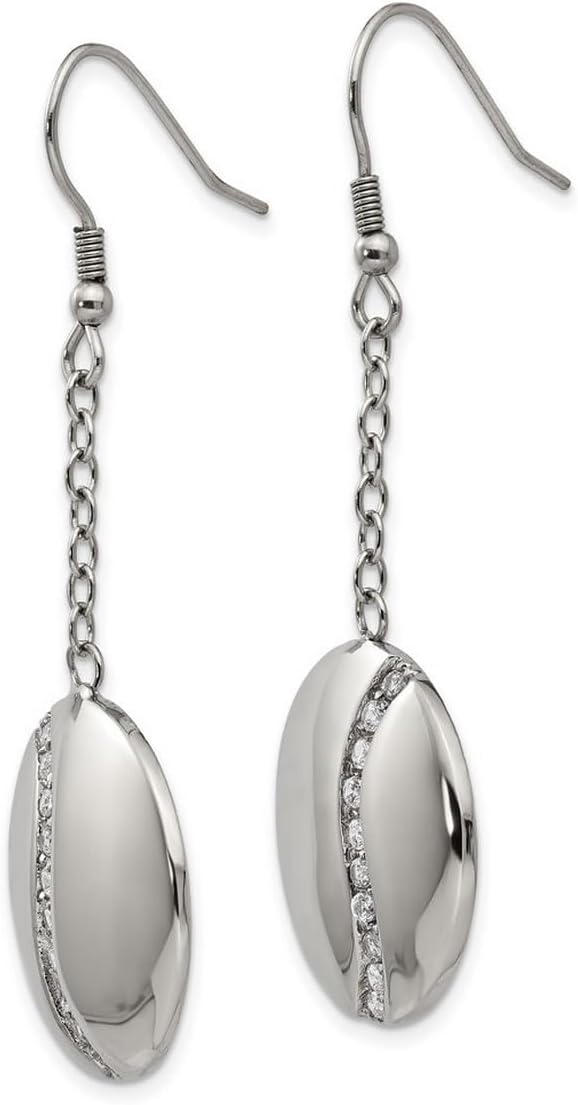 Orecchini pendenti in acciaio inossidabile lucido con zirconi - Acciaio inossidabile massiccio - Gioielleria Stile web: QTE314055 - Portagioie gratuito Chiusura dell'orecchino: filo francese. Tipo di orecchino: pendente. Finitura: lucida. Potenziali metodi di miglioramento: ossido di zirconio. Sintetico. Alcuni sono rivestiti con un prodotto che rende la pietra più resistente. Cura e manipolazione: Ossido di zirconio: pulire con acqua calda e sapone e un panno morbido.