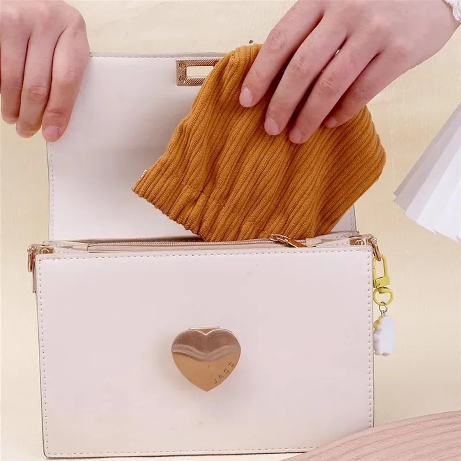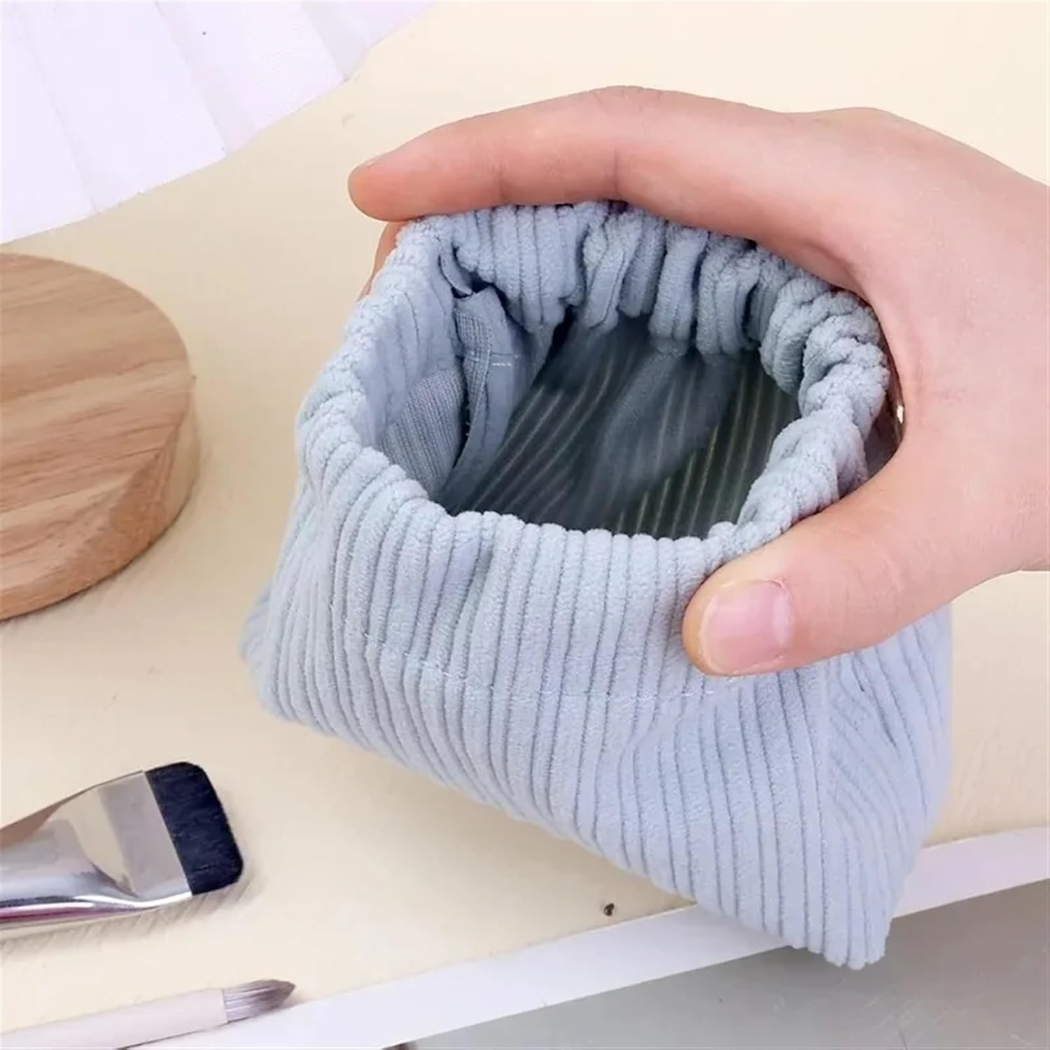 Borsa per il trucco compatta con ottima sensazione al tatto, comoda, morbida e liscia, può ospitare cuffie, cavi dati, rossetto, chiavi, monete, ecc. Ed è una borsa per il trucco da donna per tutte le stagioni con squisite esigenze di design in velluto a coste. Questa borsa organizer è dotata di un'elegante chiusura a pizzico, puoi facilmente raccogliere e riporre gli oggetti con una mano e il materiale non si deforma facilmente. Questa borsa portaoggetti è perfetta per riporre fermagli per capelli, gioielli, bastoncini di cotone, rossetto, occhiali e altri piccoli oggetti. La custodia elastica in velluto a coste è perfetta per la scrivania, l'auto, la borsa e la borsa da viaggio per mantenere tutto organizzato. Questo mini organizer in velluto a coste con chiusura a scatto è un regalo pratico per le donne. Ogni ragazza ha bisogno di un organizzatore di trucchi così sorprendente. Questa borsa organizer è molto facile da pulire, necessita solo di acqua per completare la pulizia, supporta il lavaggio in lavatrice e il lavaggio a mano, ma si consiglia il lavaggio a mano perché il lavaggio a mano può prolungarne la durata.