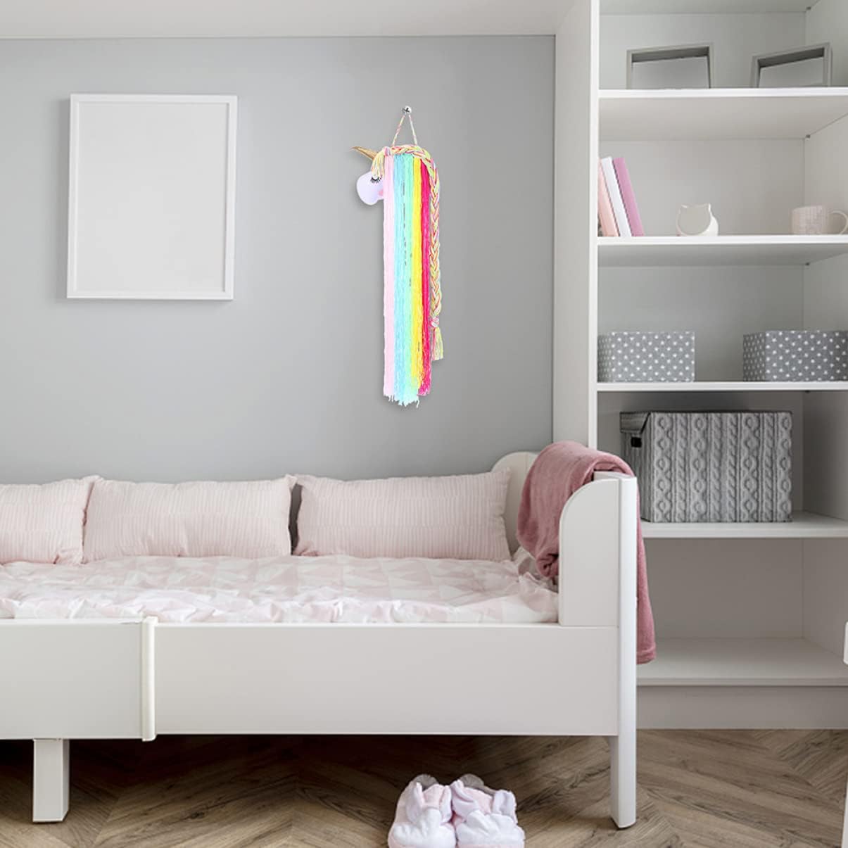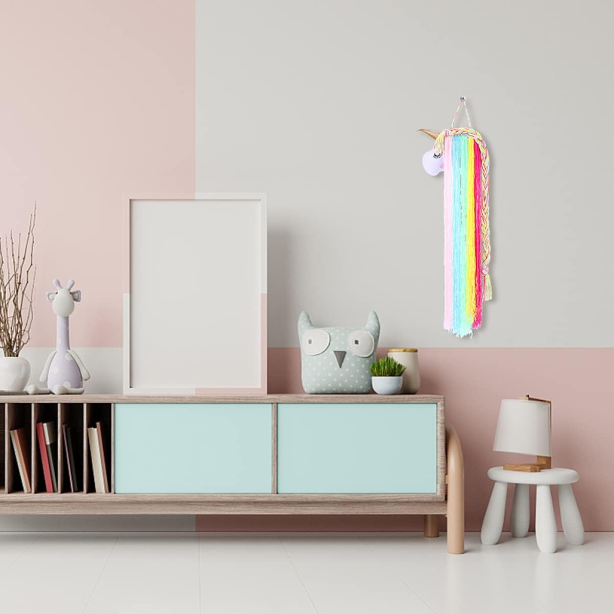 Ciondolo intrecciato a mano: grazioso design a motivo di unicorno, sembra così bello, che la rende calda, un organizer per mollette per unicorno in più Cintura portaoggetti da appendere per unicorno: è fantastico per la tua ragazza riporre tutti gli accessori per capelli, puliti e ordinati, leggeri e facili da appendere al muro, alla porta, al comò o ovunque tu voglia Ornamento da appendere al muro: un oggetto con struttura semplice e multifunzione, leggero. Organizer per mollette Accessorio per mollette: conserva tutti i tipi di clip a coccodrillo, clip a scatto, fiocchi e fasce per capelli, portaoggetti per forcine Organizer per fasce per capelli con frange: è fantastico per tenere i bellissimi fiocchi in mostra e facili da raggiungere rimanendo organizzati e alla moda, porta fermagli per capelli con unicorno