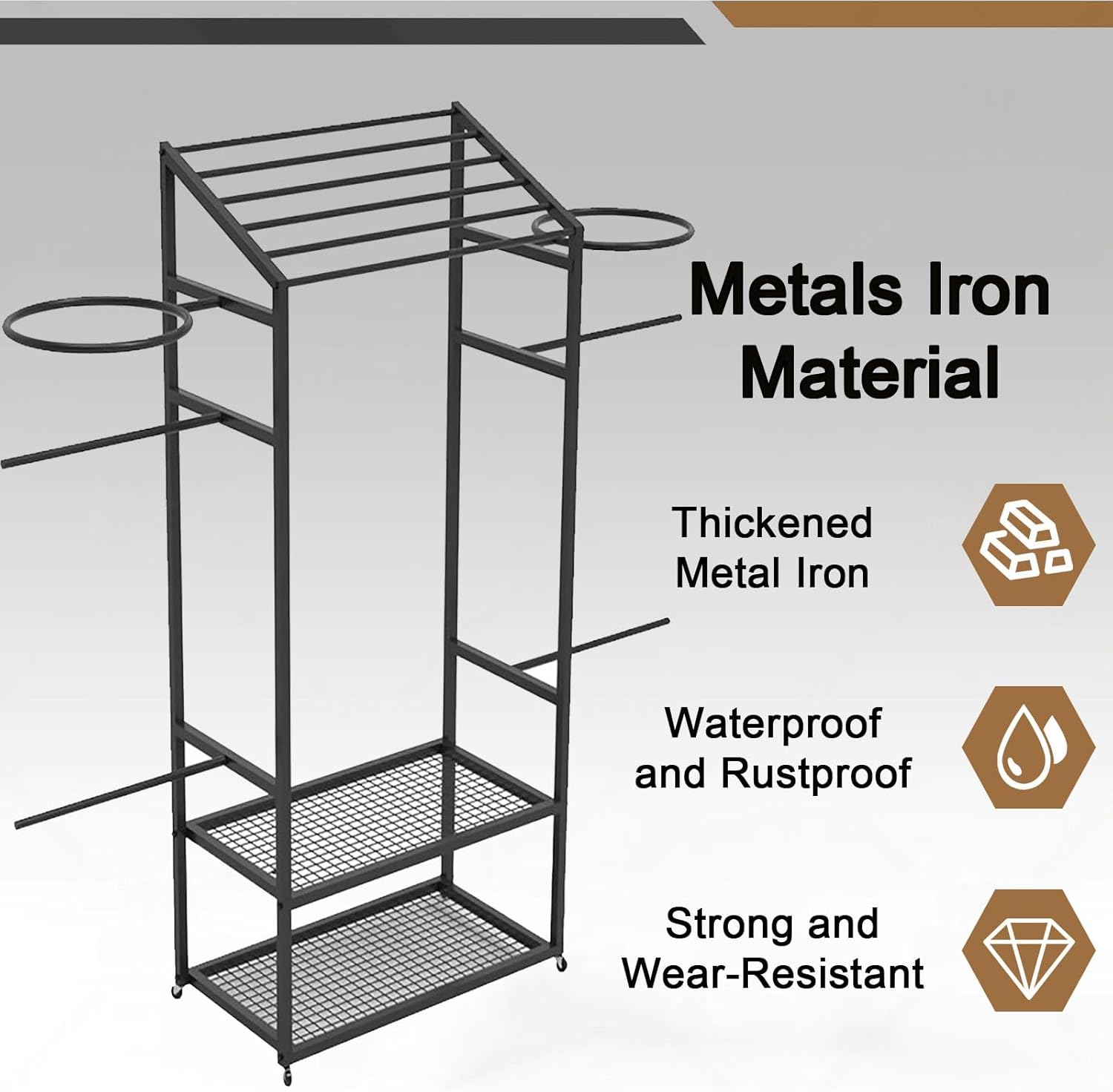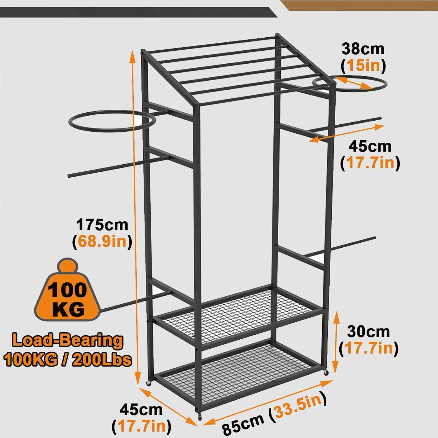 Carrello multifunzionale: progettato per contenere anelli da nuoto, asciugamani, occhiali e altri oggetti essenziali, questo carrello è perfetto per uso a bordo piscina, spiaggia, giardino o campeggio, offrendo soluzioni versatili per riporre oggetti. Ampio telaio aperto: dispone di un'altezza di 190 cm con quattro traverse da 60 cm, in grado di appendere fino a otto anelli da nuoto per un accesso organizzato e facile. Mobilità con ruote girevoli: dotato di tre ruote girevoli a 360 gradi per un movimento fluido e senza sforzo, consentendo di spostare il carrello secondo necessità senza problemi. Struttura in metallo resistente: realizzata in ferro metallico rinforzato con saldatura stretta, questo rack supporta fino a 45 kg, garantendo stabilità e durata senza oscillazioni. Facile montaggio in tre fasi: processo di installazione rapido e semplice: basta disimballare, collegare gli accessori e fissare le ruote per iniziare a utilizzare immediatamente il carrello.