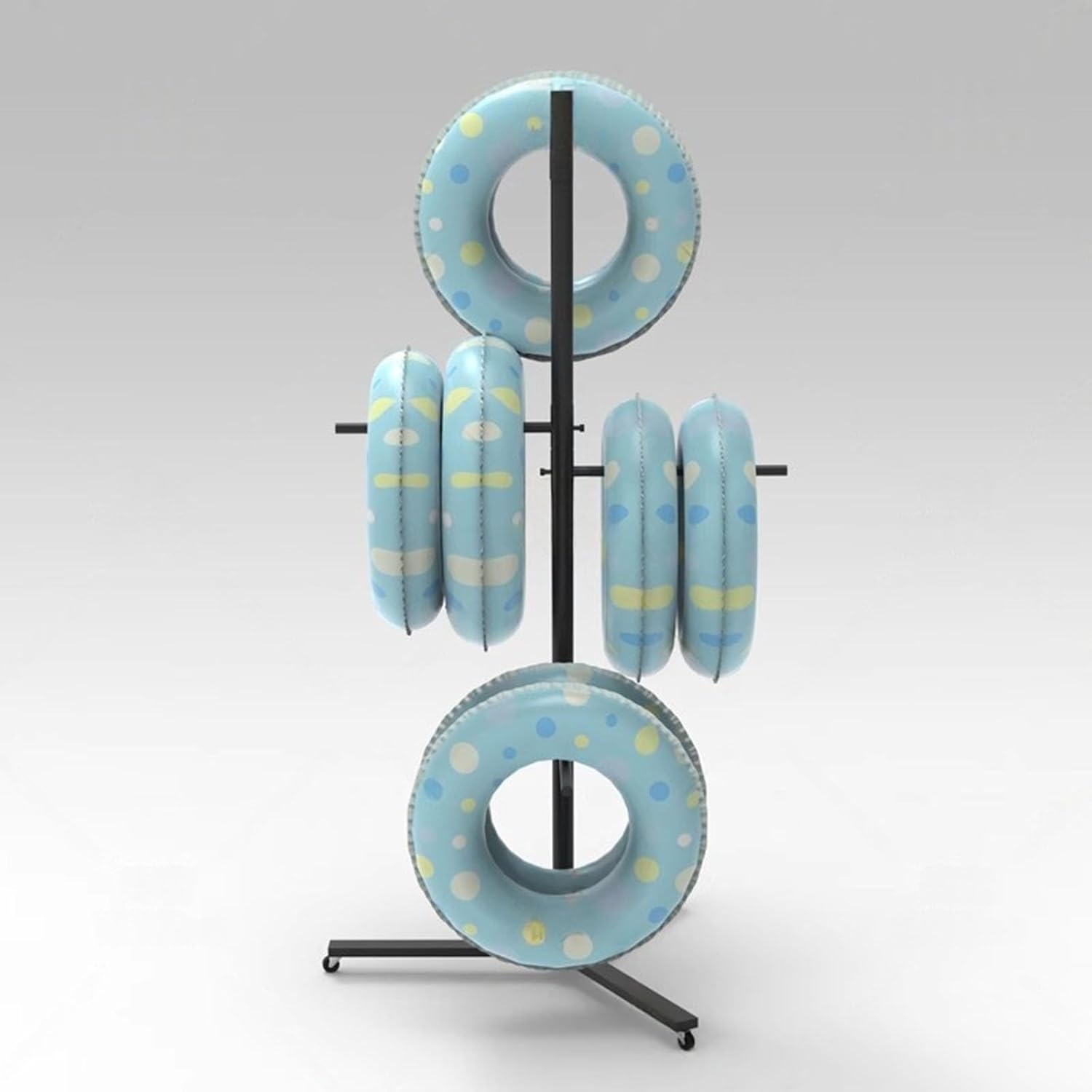 Soluzione multiuso di stoccaggio: questo carrello versatile funge da efficiente organizer per salvagenti, asciugamani, occhiali e molto altro ancora, perfetto per uso a bordo piscina, spiaggia, giardino o campeggio. Design spazioso: con un'altezza di 190 cm con quattro traverse da 60 cm, può contenere fino a otto anelli da nuoto, garantendo che tutti i tuoi oggetti essenziali siano a portata di mano. Mobilità migliorata: dotato di tre ruote girevoli a 360 gradi, questo carrello si muove senza problemi su varie superfici, consentendo un facile spostamento secondo necessità. Costruzione durevole: costruito in ferro metallico rinforzato resistente con saldatura stretta, questo rack supporta fino a 45 kg, offrendo stabilità e resistenza alla deformazione o alla rottura. Facile da montare: pronto per l'uso in soli tre semplici passaggi: disimballare, collegare accessori e fissare le ruote, rendendolo un'aggiunta senza problemi al tuo spazio per riporre o esporre.