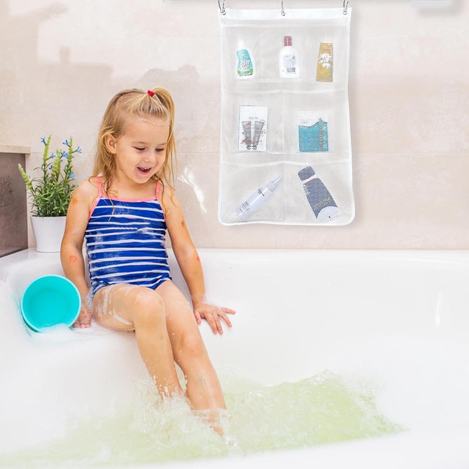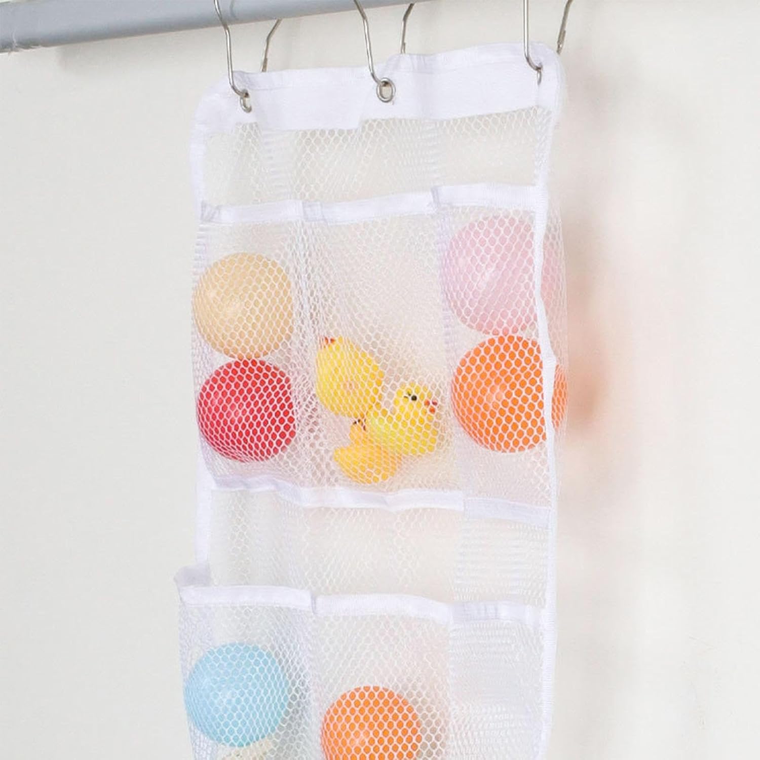 Mantieni pulito il tuo bagno: classifica e conserva facilmente giocattoli da bagno, articoli da toeletta e piccoli oggetti per bambini. Mantieni il tuo bagno pulito e organizzato Rete ad asciugatura rapida: il nostro organizer per giocattoli da bagno è lo spazio ideale per riporre oggetti salvaspazio che mantengono il tuo bagno in ordine e consentono un facile accesso ai giocattoli. Il suo materiale a rete garantisce un'eccellente ventilazione, un rapido drenaggio dell'acqua e un'asciugatura rapida per un'igiene ottimale. Veloce da installare: elimina facilmente il disordine nel tuo bagno. Il nostro organizer per giocattoli da bagno è perfetto per tutti i tipi di bagno grazie al suo semplice processo di installazione e ai ganci robusti. Per la maggior parte delle occasioni e delle occasioni: mantieni la tua casa in ordine con questo organizzatore. Perfetto per organizzare utensili da cucina, decorazioni per la camera da letto, accessori per auto e, naturalmente, giocattoli da bagno. Grande capacità: le otto tasche del nostro organizer per giocattoli da bagno offrono una generosa capacità per riporre giocattoli, pettini e altri piccoli oggetti. Mantieni il tuo bagno in ordine con questa spaziosa soluzione di archiviazione che soddisfa tutte le tue esigenze