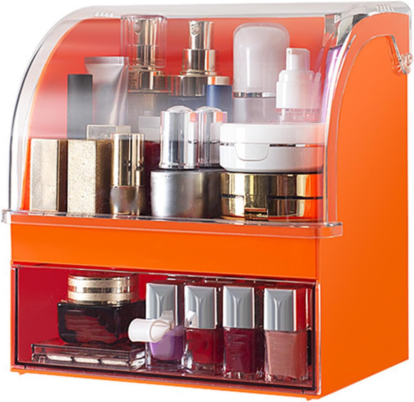 [Design multifunzionale] Questo organizzatore di stoccaggio per il trucco è ingegnosamente realizzato per ospitare sia i tuoi cosmetici che i prodotti per la cura della pelle, garantendo che la tua vanità rimane ordinata e organizzata. Il suo design versatile consente di archiviare una varietà di oggetti, dai rossetti alle lozioni, mantenendo tutto a portata di mano. Il layout ponderato garantisce che la tua routine quotidiana sia semplificata, rendendola indispensabile per qualsiasi [COPERTINA RESISTENTE ALLA POLVERE] Proteggi la tua collezione di trucco da polvere e detriti con la copertura resistente alla polvere inclusa. Questa funzione garantisce che i tuoi prodotti rimangano puliti e freschi per periodi più lunghi, mantenendo la loro qualità e prolungando la loro durata. La copertina è progettata per adattarsi perfettamente, fornendo una protezione ottimale pur consentendo un facile accesso ai tuoi articoli. [Design di salvataggio spaziale] Massimizzare il tuo spazio di vanità con il design compatto ed efficiente di questo caso di visualizzazione cosmetici. Il suo design del ripiano desktop non solo risparmia spazio, ma offre anche un comodo accesso ai tuoi cosmetici, rendendo il tuo processo di abbellimento più efficiente. L'organizzatore è per piccoli spazi, garantendo che la tua vanità rimanga senza disordine ed elegante. [GRANDI CASSETTI DI CAPACITÀ] Organizza e categorizza i tuoi articoli per il trucco senza sforzo con i cassetti ad alta capacità di questa scatola per cosmetici. I cassetti sono abbastanza spaziosi da ospitare oggetti per il trucco di varie dimensioni, dai pennelli alle tavolozze, rendendo facile mantenere tutto al suo posto. Questa funzione assicura che la tua vanità rimanga in ordine, permettendoti di trovare ciò di cui hai bisogno rapidamente e facilmente. [APPARANZA ALLA STILIA] Migliora il fascino estetico del tuo spazio con il design elegante e moderno di questo organizzatore desktop. Il suo aspetto elegante lo rende un'ottima aggiunta a qualsiasi arredamento per la casa, completando la tua vanità con il suo aspetto elegante. Non solo mantiene il tuo trucco pulito e organizzato, ma aggiunge anche un tocco di raffinatezza alla tua routine di bellezza.