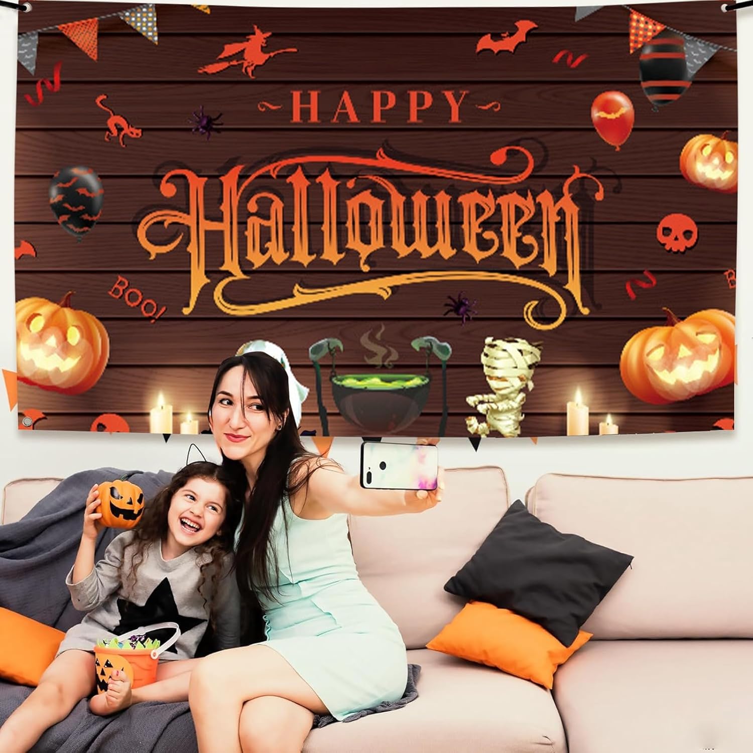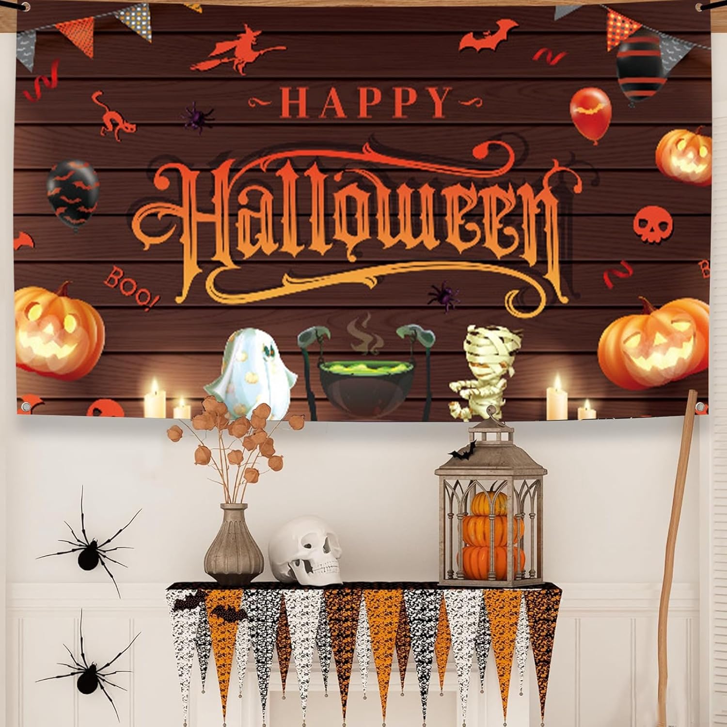 Deve avere fornitura di Halloween appositamente progettato, questo striscione di decorazioni di Halloween sicuramente un'atmosfera per Halloween, e si può usare con ghirlanda di Halloween come muro di pipistrelli, strega, . Grande Halloween, 1 pezzo Happy Halloween, 1,85 m x 1,1 m, perfetto per decorazioni per feste di Halloween, decorazioni di Halloween per casa, cabina fotografica di Halloween. Rimani felice all'interno e all'esterno, questo striscione di Halloween felice viene fornito con corda per appenderlo, puoi usarli per casa, parete, finestra, porta del garage, caminetto, soggiorno, recinzioni, cortile e scattare foto per mantenere il tuo ricordo felice Riutilizzabile e facile da tenere la foto di Halloween è realizzata in poliestere robusto, forniture per feste di Halloween, lavabile, durevole e riutilizzabile e facile da trasportare e conservare per anni. È una bella decorazione di Halloween per interni, perfetta per pareti di Halloween, casa di Halloween, stanza di Halloween, pipistrelli decorazione di Halloween, decorazioni per la tavola di Halloween, decorazioni di Halloween per streghe, Halloween per fotografia.
