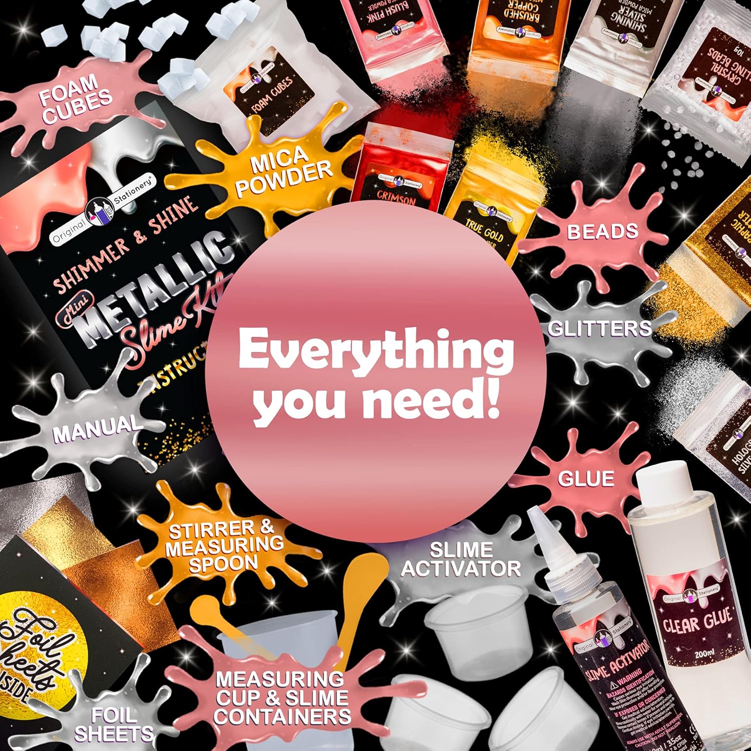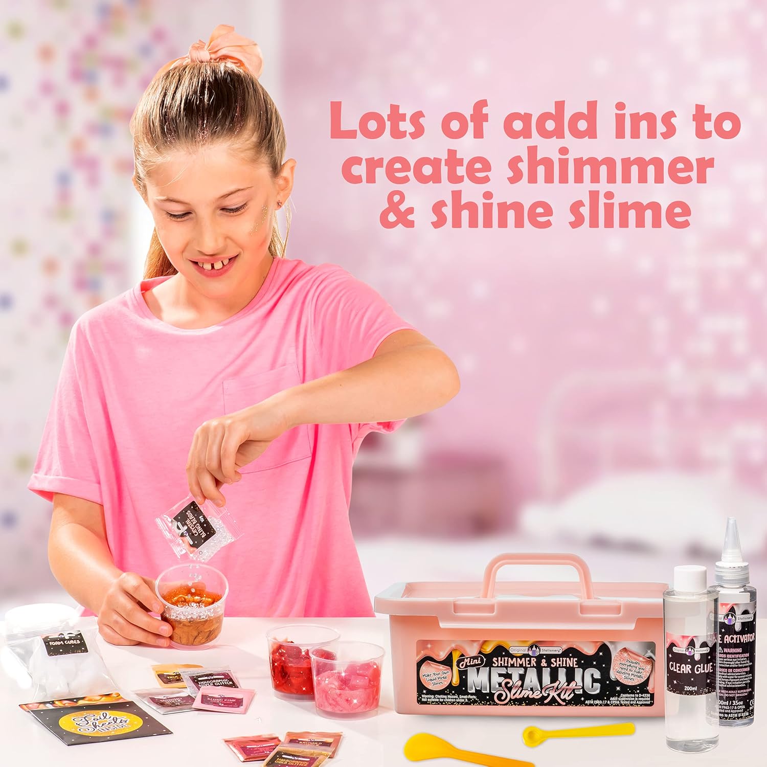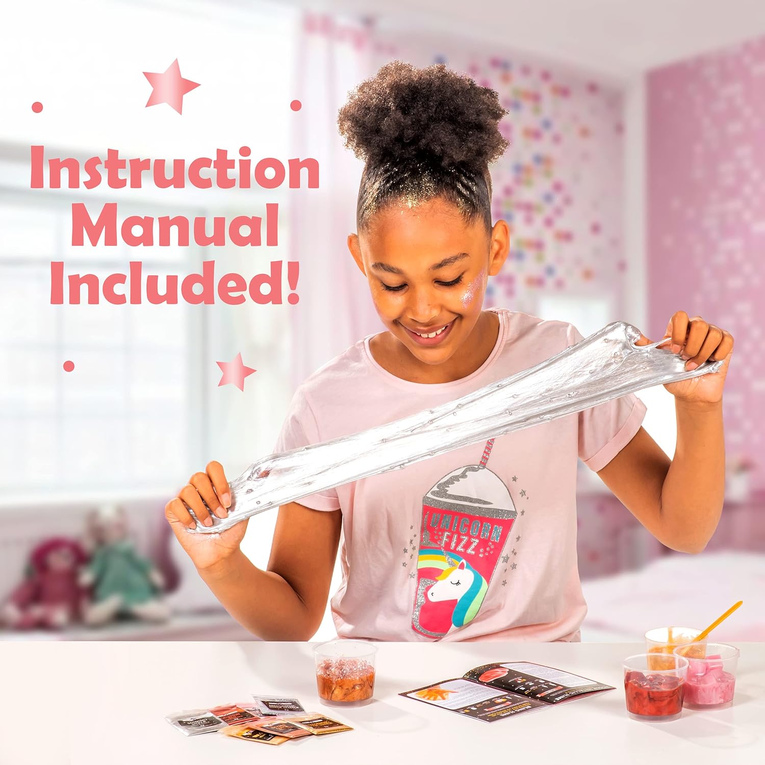 Slime kit viscido da 20 pezzi: crea un fantastico slime metallico, nelle mani apparirà come metallo liquido Crea gioielli luccicanti e metallici con tanti accessori come perline di cristallo e glitter Segui le istruzioni in immagini per creare un fantastico slime soffice di colore oro rosa e glitterato Il nostro mini kit per bambine contiene 5 polverine di mica metalliche per creare slime come metalli liquidi Le bambine trascorreranno ore con il loro kit per fare slime ed è un'ottima idea regalo per ragazze di 13 anni