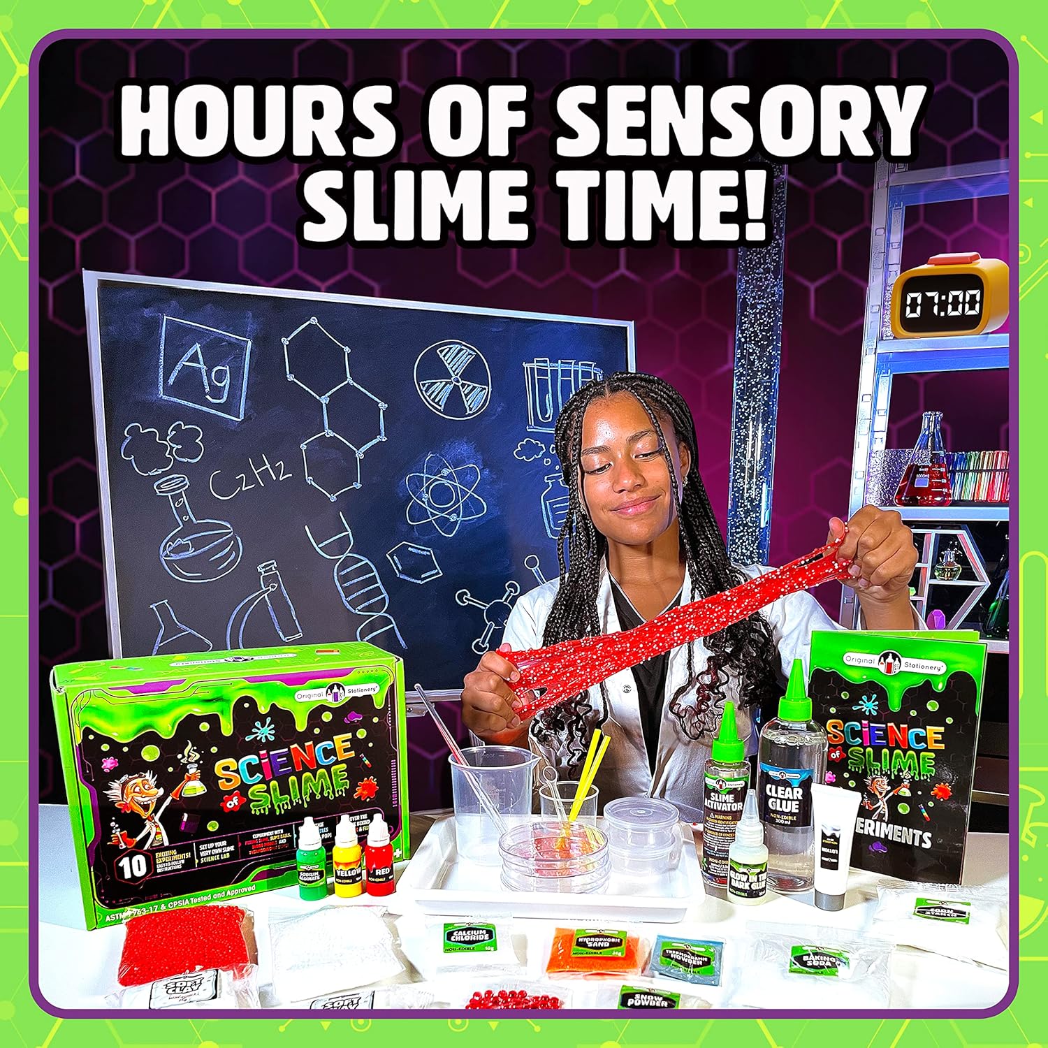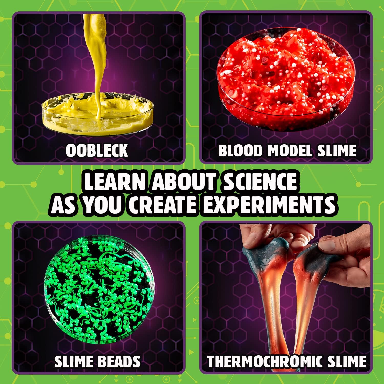 Laboratorio di chimica con slime per fare esperimenti perfetto per bambini da 6 a 12 anni. Kit slime scienza e gioco con attività divertenti e istruttive che permettono di passare più tempo lontani dagli schermi. Kit per fare lo slime che consente di realizzare varie tipologie di slime bellissimi frizzanti e spumeggianti. Confezione di slime con 10 esperimenti scientifici che permettono di imparare a realizzare oobleck e flubber. Questo slime set è perfetto come idea regalo per bambini che sono appassionati di scienza.