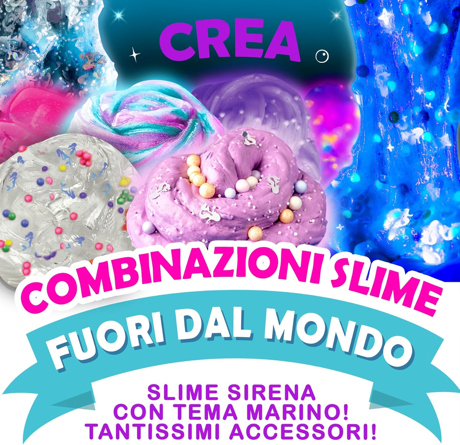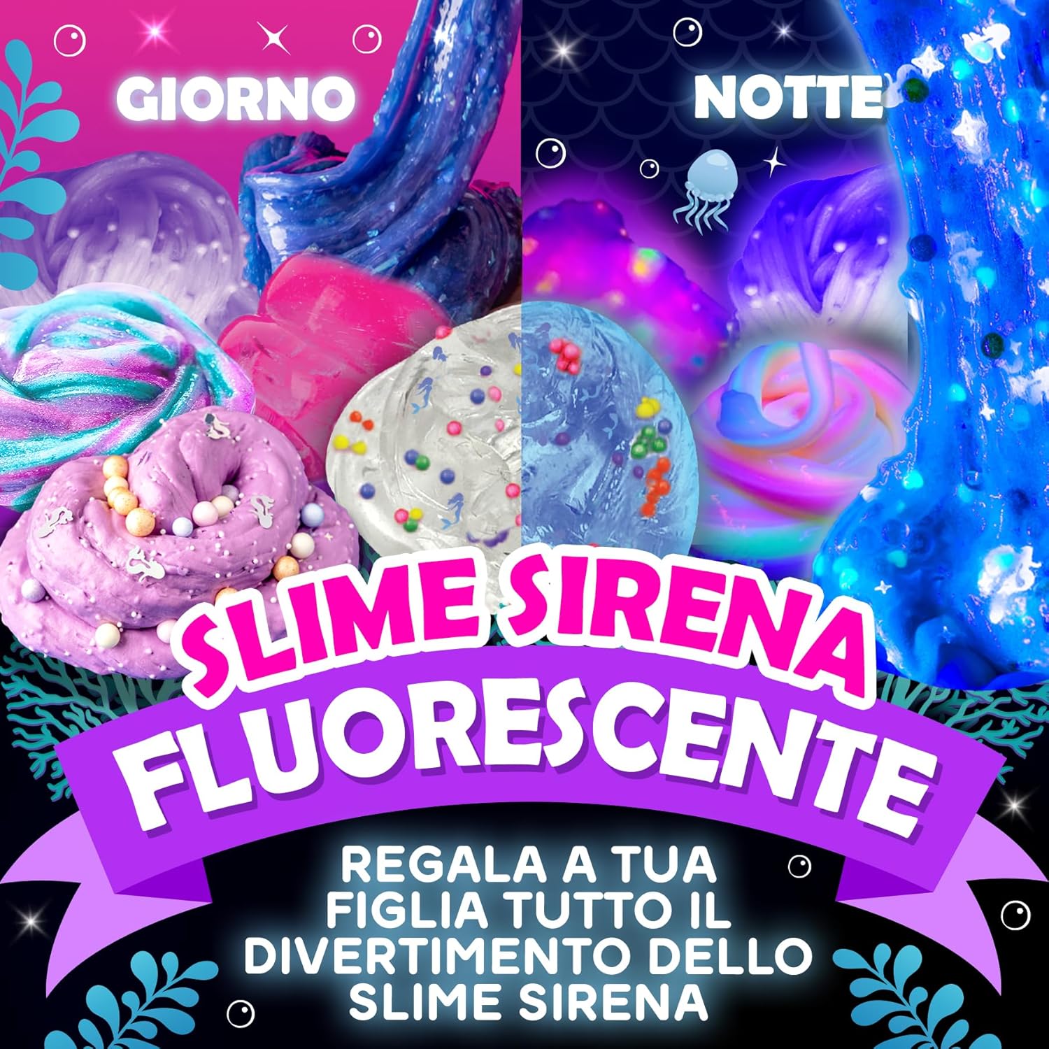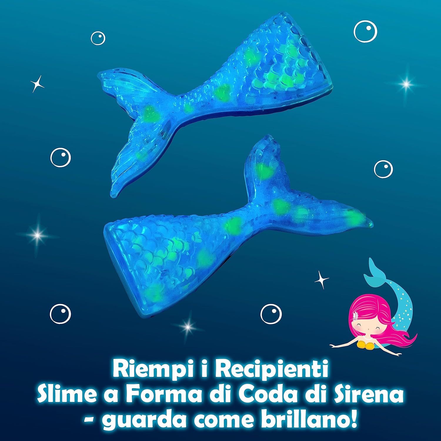 Kit Slime fai da te: scatola piena di tutti gli elementi di cui le ragazze hanno bisogno per realizzare un incredibile Slime di burro, soffice e anche slime marino glow in the dark! Ore di tempo creativo, lontano dagli schermi, con più di 20 accessori nel tuo kit slime fai da te completo e anche contenitori a forma di coda di sirena per riporre il tuo slime. Non dovrai acquistare nient'altro, il tuo laboratorio slime viene fornito con una ciotola per mescolare, contenitori per la conservazione, mescolatore, bicchiere graduato, cucchiaio, attivatore per slime e colla. Slime Fluffy di sirena, facile da riporre nei pratici contenitori ermetici, così i bambini possono giocare con il loro kit di slime il giorno successivo. Bellissimi giocattoli da sirena per ragazze e il miglior kit di slime, ottimo regalo per compleanno per ragazze da 10 a 12 anni.