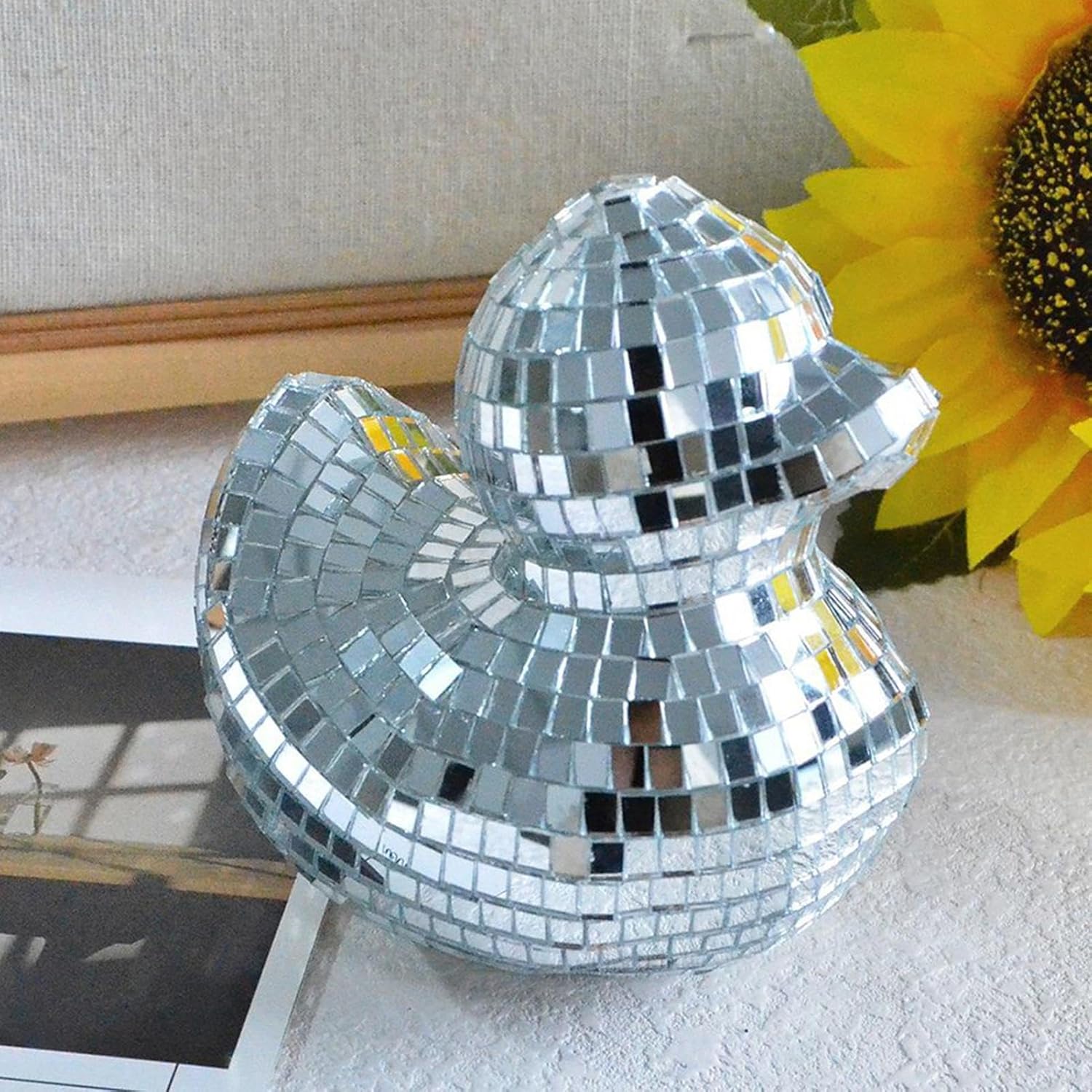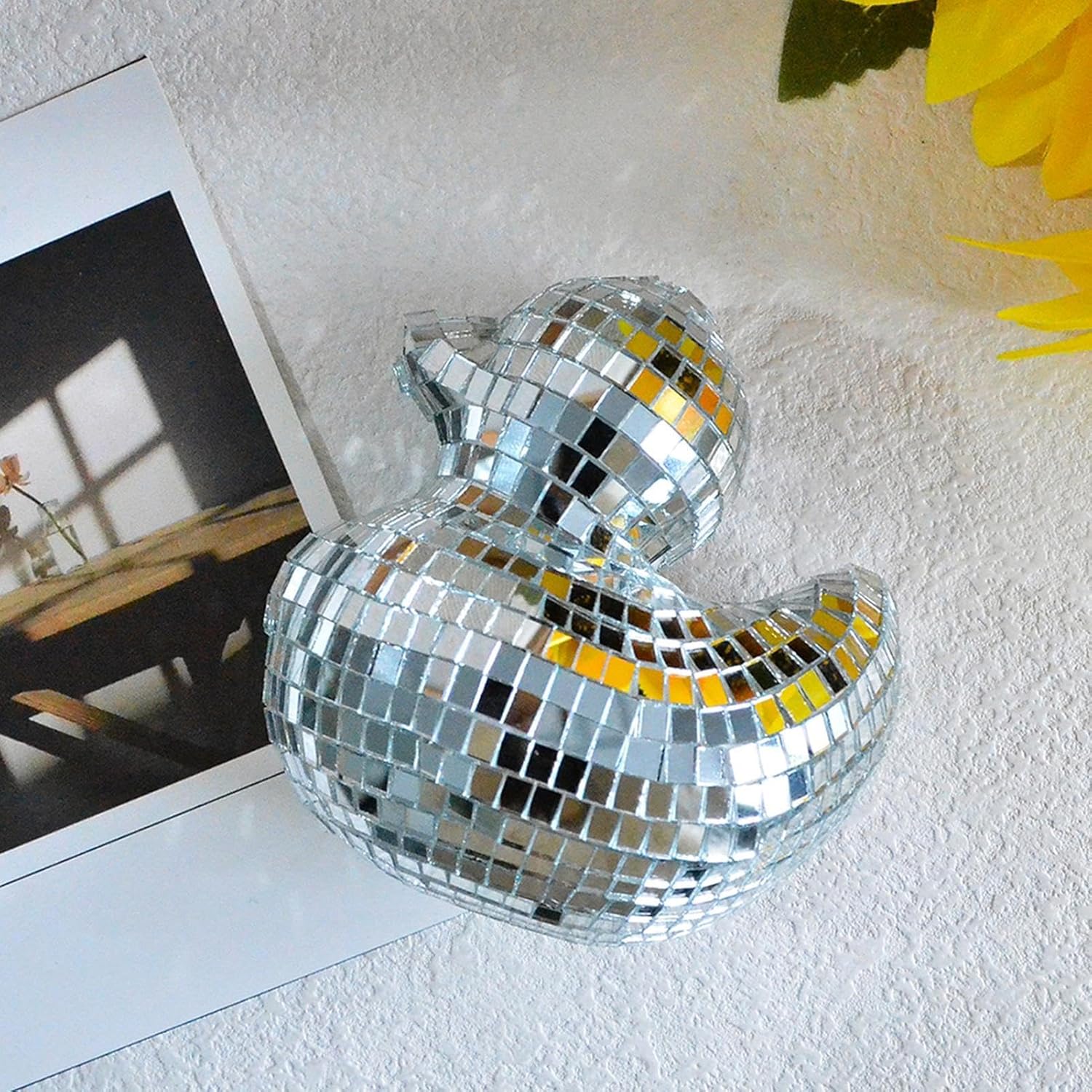 【Design rivoluzionario】 Con la sua forma unica a forma di anatra e piastrelle di vetro a specchio accuratamente disposte, questa anatra a sfera da discoteca è progettata per catturare e riflettere la luce, creare immagini indimenticabili e portare un bagliore luminoso in ogni stanza. Rendi unica la tua festa: lascia che la nostra papera con palla da discoteca sia la stella splendente della tua celebrazione e diffonda luce vibrante ed energia in tutta la stanza. Con la sua abbagliante riflettività, questa scintillante pietra preziosa adornerà qualsiasi ambiente e affascinerà i tuoi ospiti con il suo fascino vibrante. 【Occasioni applicabili】 Migliora il tuo evento con questa papera con palla da discoteca e crea un ambiente affascinante. Aggiunge un'atmosfera di festa speciale, perfetta per matrimoni e riunioni di famiglia. Un must per ogni celebrazione vivace. 【Artigianato artistico】 Realizzata a mano con cura, la papera con palla da discoteca è un'aggiunta unica che aggiungerà carattere e fascino al tuo arredamento. Nonostante piccole macchie e imperfezioni, non fa altro che aumentare il suo fascino e non sminuisce mai la sua bellezza. 【Ambito di applicazione】 Migliora la tua celebrazione con la nostra papera con palla da discoteca, perfetta per feste di compleanno, matrimoni, vacanze, un must per discoteche, KTV, bar per garantire che ogni evento sia indimenticabile.