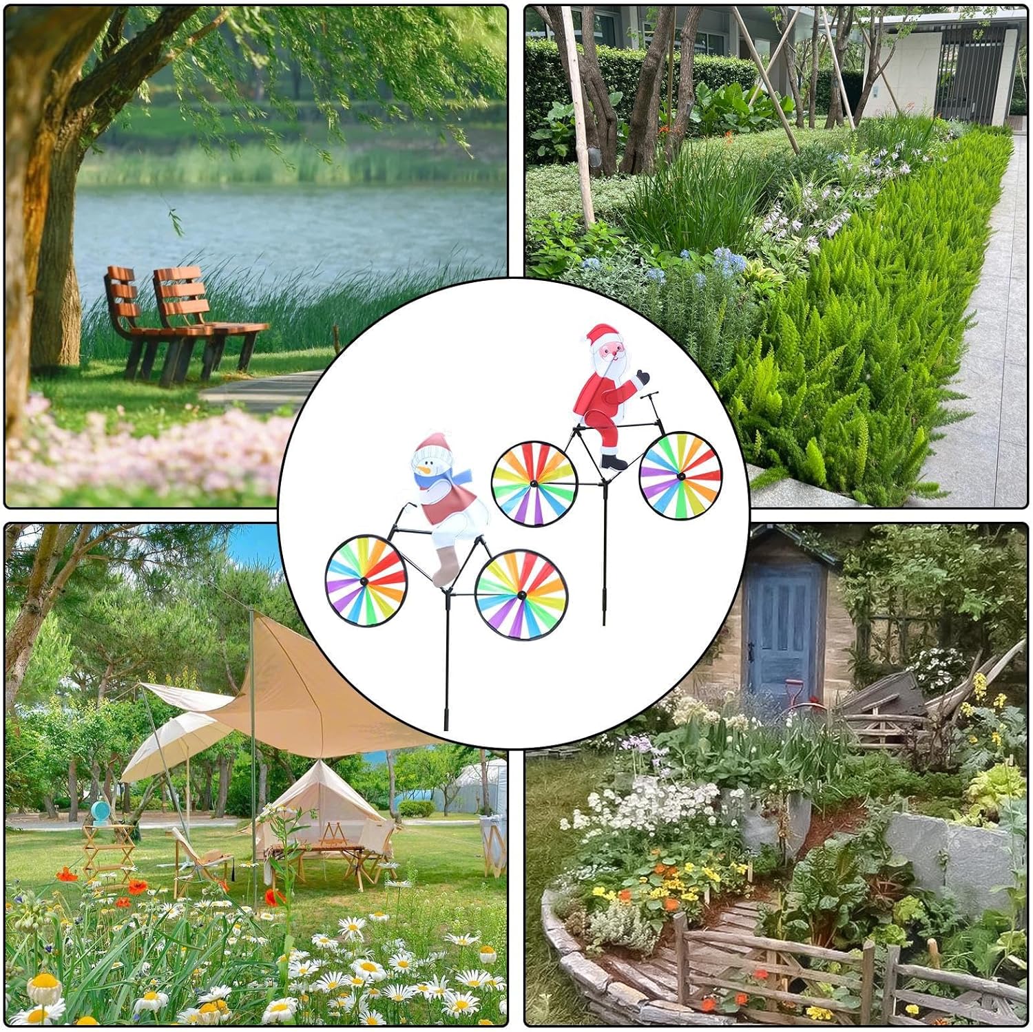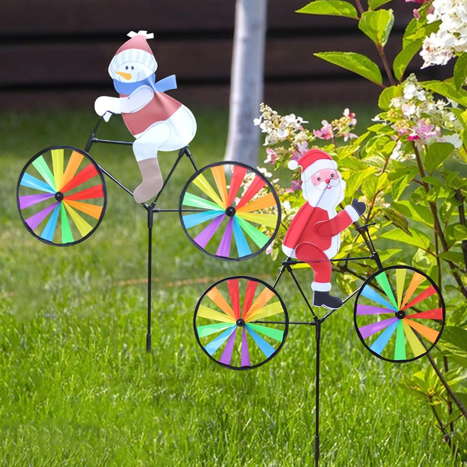 Materiali durevoli: proteggi l'arredamento delle tue vacanze dagli elementi atmosferici con materiali di alta qualità antiruggine, tessuto in materiale selezionato e PP impermeabile. Goditi il fascino festivo di lunga durata con resistenza agli agenti atmosferici per migliorare i tuoi spazi interni ed esterni Installazione pratica: migliora il tuo arredamento esterno con le girandole natalizie. Aggiungi facilmente un tocco di colore al tuo giardino semplicemente inserendo il paletto nella girandola e posizionandolo nella tua zona preferita Ampia gamma di usi: migliora l'arredamento delle tue vacanze con queste festive girandole natalizie. La loro versatilità non conosce limiti, poiché possono essere utilizzati in qualsiasi spazio: dal portico anteriore al cortile, al balcone, al giardino o persino al soggiorno Regalo pratico: regala un regalo stravagante e divertente con le nostre girandole natalizie. Una perfetta per donne e uomini in occasione di compleanni e altre occasioni speciali, queste delizie festive aggiungono fascino al Ringraziamento e a qualsiasi celebrazione Look festoso migliorato: l'aspetto e il colore naturali donano un'atmosfera festosa al tuo giardino, aggiungendo divertimento alle tue attività all'aperto con un design unico a forma di mulino a con Babbo Natale e pupazzi di neve che sembrano pedalare quando il
