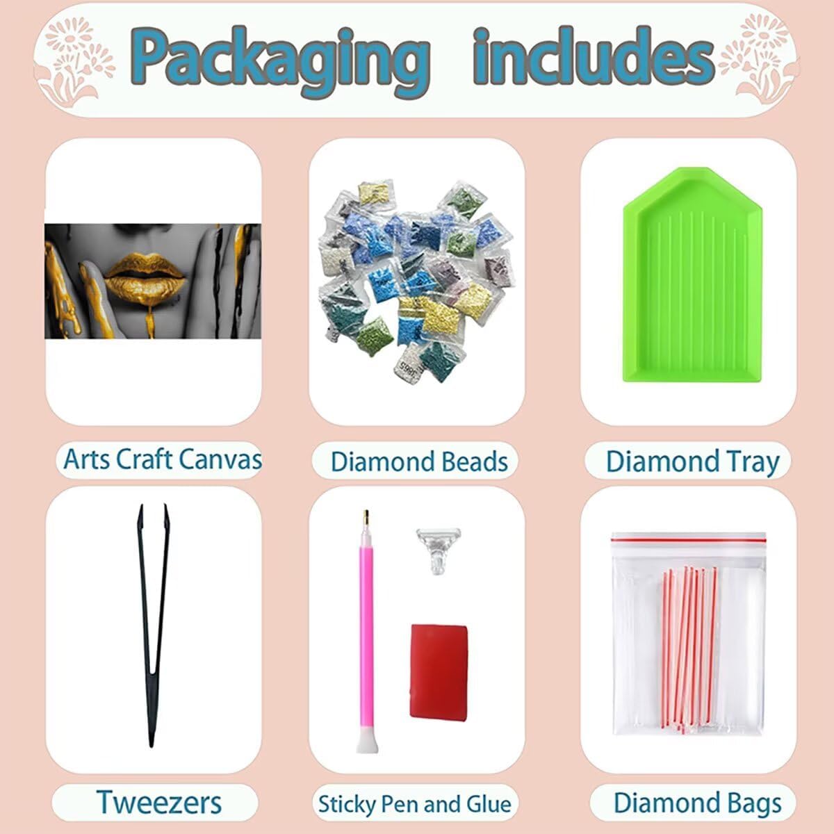 DIAMOND PAINTING SIZE AND PACK : Diamond painting oro è size 30x60cm, include 1 tela ad alta definizione, 1 penna a diamante, 1 vassoio a diamante cubico, 1 argilla adesiva, 5 sacchetti sigillati, il set contiene abbastanza diamanti quadrati colorati (un extra del 30%) e tutti gli strumenti necessari per realizzare diamond painting TELA PER DIAMOND PAINTING HD : Diamond painting labbra tela utilizza una stampa ad alta definizione, garantendo che ogni numero o lettera sia chiaramente identificabile, trovarli facilmente, tela impermeabile e dalla consistenza uniforme, con una copertura superiore in plastica autoadesiva per mantenere la pittura appiccicosa e i diamond al sicuro COLORATA FULL DIAMOND PAINTING : Diamanti nei nostri kit diamond painting con trapano completo sono riccamente colorati e comprendono l'intero spettro di tonalità necessarie per l'opera d'arte. Realizzati con materiali di alta qualità, questi diamanti mostrano brillantezza, lucentezza e resistenza allo sbiadimento. La luce brillante riflessa dalle loro superfici anima l'intero dipinto DIAMOND PAINTING ORO : Diamond painting labbra, qui est un kit de peinture au diamant adapté aux adultes, nos kits de diamond painting pour adultes sont disponibles dans une variété de styles, y compris des paysages, des animaux et plus encore, pour répondre à différents besoins personnalisés (vous pouvez rechercher des Lioauanh diamond painting) EXCELLENT SERVICE APRÈS-VENTE : Après réception du kit diamond painting, veuillez d'abord vérifier la diamond et les accessoires. Si un diamant est manquant ou endommagé, contactez-nous à temps et nous vous fournirons une solution sous 24 heures (L'image indique la taille maximale, veuillez acheter la taille souhaitée)