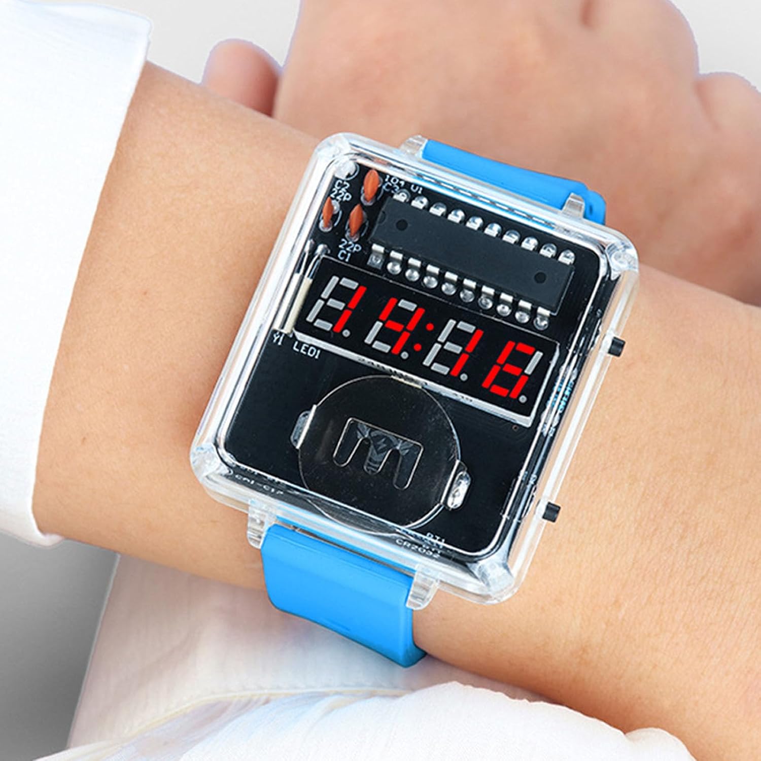 Kit di orologi elettronici senza cinghie della batteria e indicatore LED, con configurazioni per 30 minuti utilizzando componenti ibridi in plastica e metallo Il set completo comprende un circuito stampato preprogrammato, un LED e cinghie regolabili per una funzionalità immediata dopo un'installazione Plug and Play semplificata Lo schermo LED ad alta luminosità garantisce visibilità in condizioni di scarsa illuminazione, mentre la struttura in metallo in silicone offre una doppia durata rispetto ai modelli in plastica standard per educatori STEM, genitori bambino attività di legame e appassionati che svolgono progetti elettronici con valore educativo Perfettamente adatto per jogging notturno, campeggio e laboratori in aula, dove sono richiesti cronometraggio e durata portatile