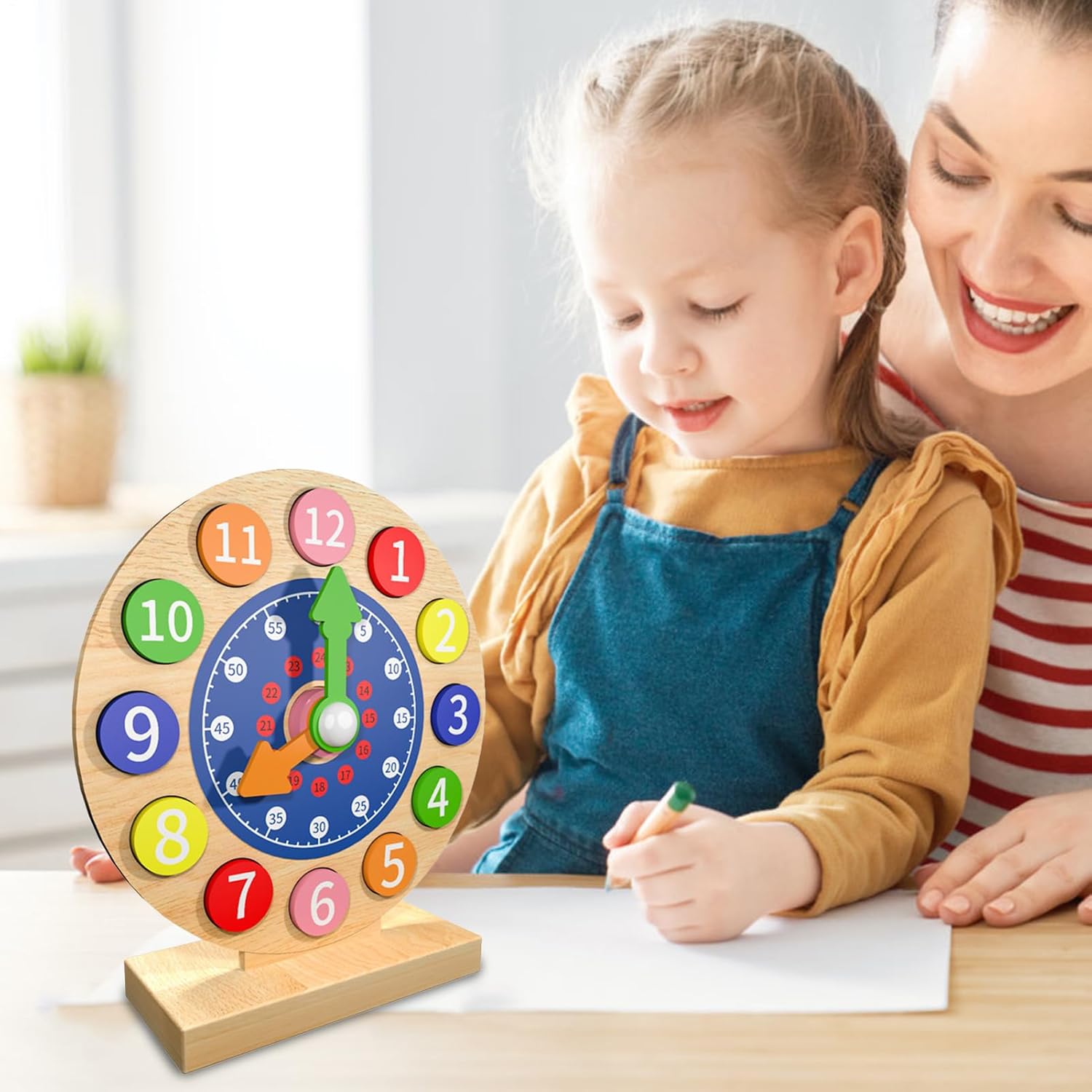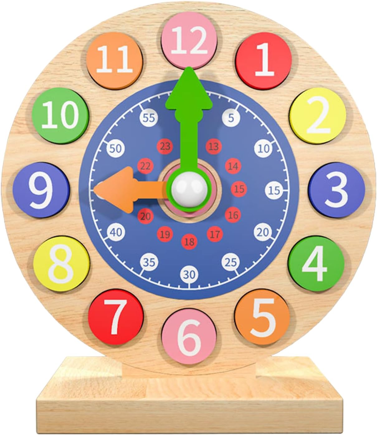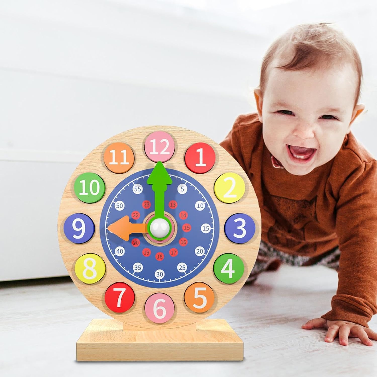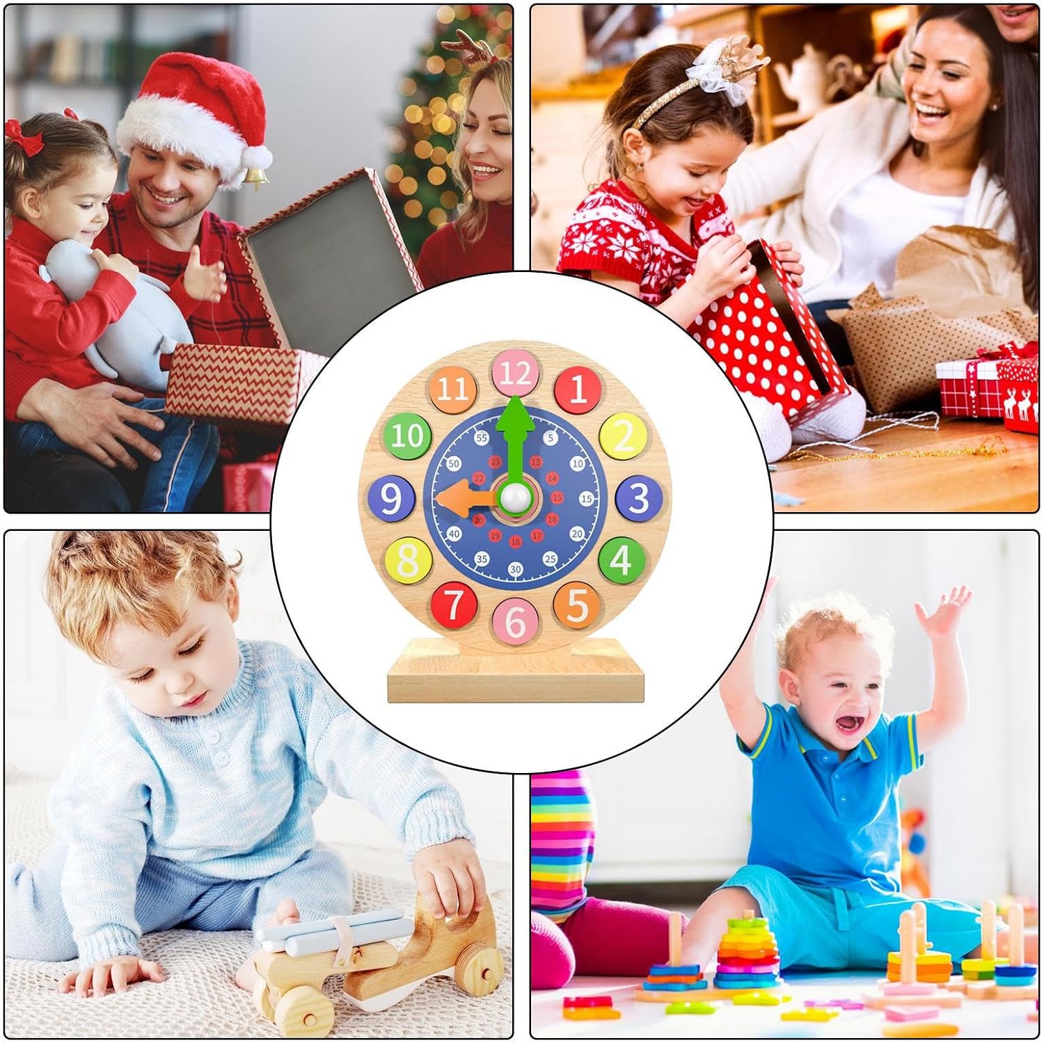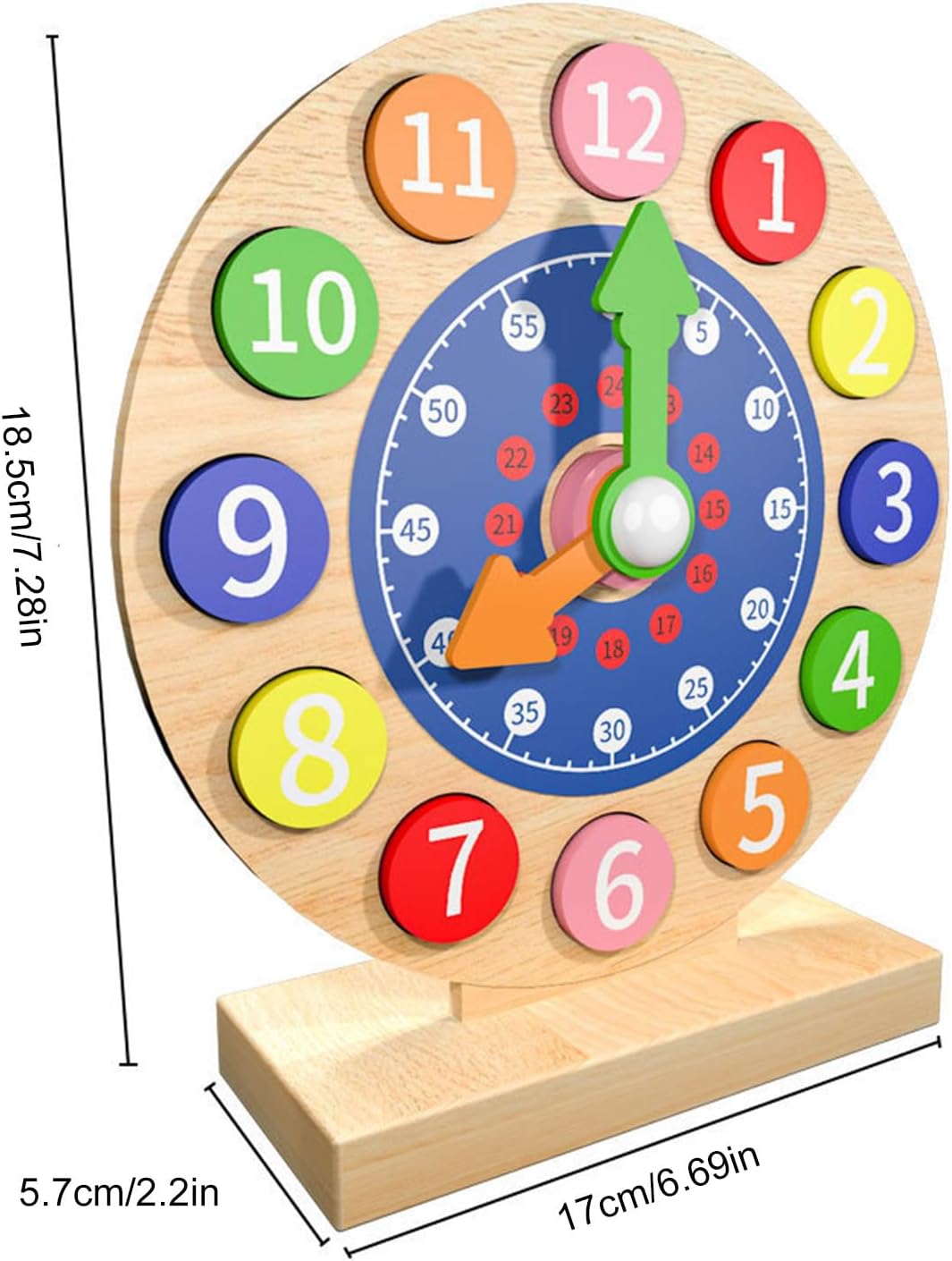 Padroneggiare il concetto di tempo: il nostro orologio didattico educativo per bambini è progettato per aiutare i bambini a padroneggiare il concetto di tempo e ad apprendere e applicare la matematica precoce e le abilità di vita. Costruzione Robual: incoraggia il passo di apprendimento di tuo figlio con il nostro orologio didattico in legno di alta qualità. La struttura di lunga durata garantisce sicurezza e affidabilità, offrendo ai giovani studenti un modo divertente per leggere l'ora. Design a misura di bambino: l'orologio didattico per bambini presenta un design che promuove una facile comprensione e riconoscimento visivo, aiutando i bambini a comprendere l'ora attraverso il gioco interattivo. Apprendimento attivo: potenzia le capacità di lettura dell'ora di tuo figlio con il nostro pratico orologio didattico. Il design interattivo incoraggia il gioco manipolativo e incoraggia la partecipazione attiva, rafforzando la conoscenza attraverso attività divertenti. Regalo divertente per i bambini: progettato per incoraggiare l'amore per l'apprendimento, questo orologio didattico per bambini funge da regalo educativo che migliora le abilità fondamentali e presenta la conoscenza gradualmente