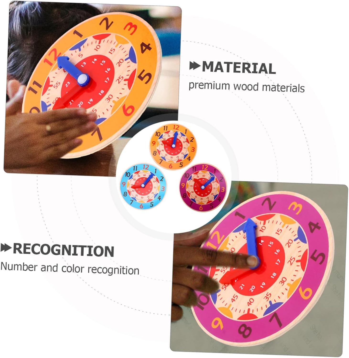 Giocattolo per l'apprendimento del tempo: non solo insegna ai bambini, ma promuove anche l'importanza del tempo in giovane età. Orologio giocattolo didattico per bambini Giocattolo educativo cognitivo: il materiale in legno è più sicuro e adatto, è educativo e pratico, modello di orologio per bambini, giocattolo per bambini: riconoscimento di numeri e colori, questo orologio giocattolo può aiutare i bambini a conoscere sia l'ora che i colori, giocattolo orologio simulato Giocattolo educativo per neonati: impara a riconoscere le lancette delle ore e dei minuti, capire la differenza tra tempo analogico e digitale, riconoscere l'ora., orologio cognitivo Modello di orologio per bambini: ottimo per interagire con i genitori, può insegnare ai bambini a riconoscere l'ora, imparare l'orologio per
