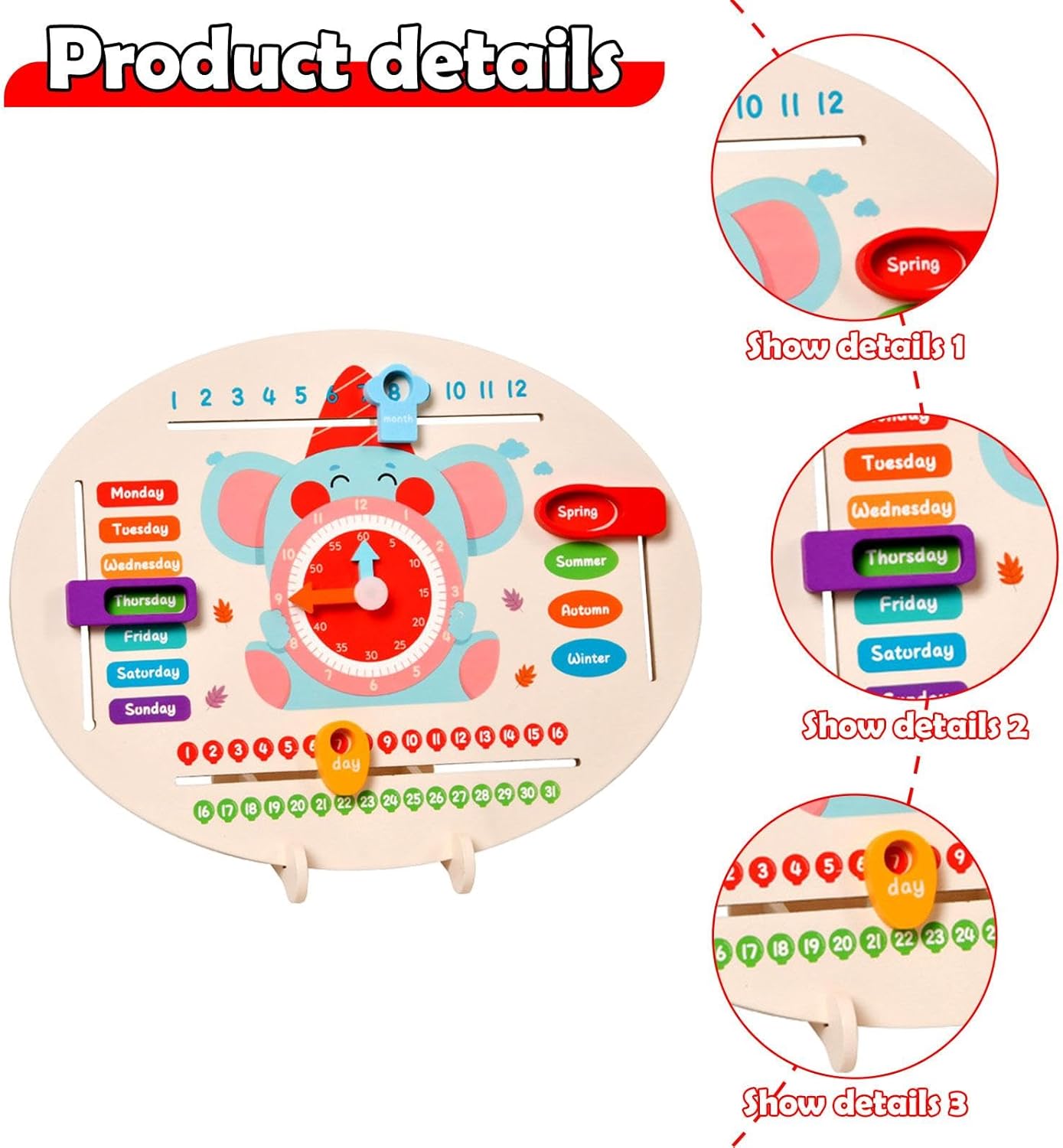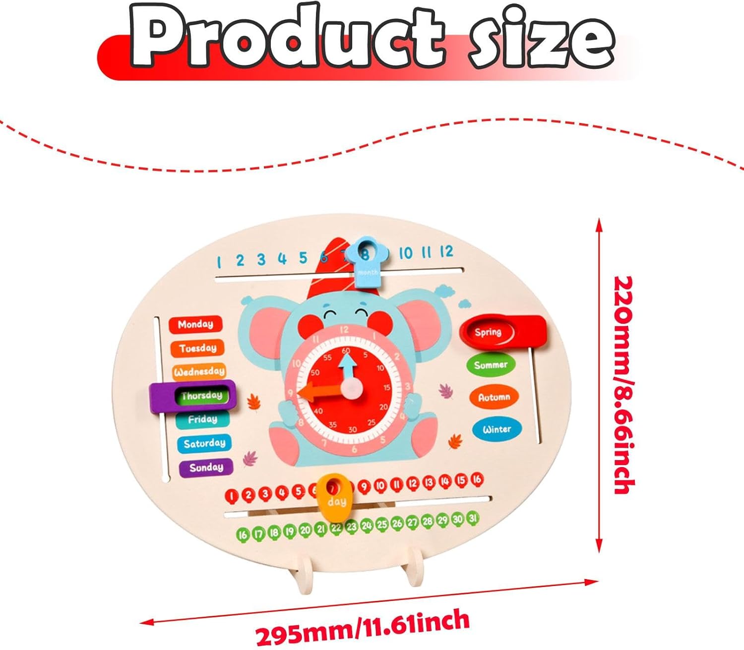 【Design multifunzionale】: progettato per incoraggiare l'esplorazione indipendente di tempo, date, meteo e stagioni attraverso un coinvolgimento pratico 【Risparmio di spazio】: struttura compatta ideale per i tavoli di casa o delle aule, con immagini luminose per stimolare la curiosità e la ritenzione 【Materiale di qualità】: realizzato in materiale di legno che garantisce sicurezza per i bambini; l'orologio didattico per bambini misura 29,5 cm x 22 cm / 11,61 pollici x 8,66 pollici, il che lo rende una dimensione ideale per le manine dei più piccoli. 【Altamente interattivo】: progettato con mani mobili e componenti di attività per aumentare l'interattività e il divertimento, mantenendo i bambini impegnati mentre imparano 【Strumento educativo】: combina cursori mobili e quadranti rotanti per insegnare mesi, giorni, stagioni, meteo e lettura dell'orologio in una lavagna interattiva in legno