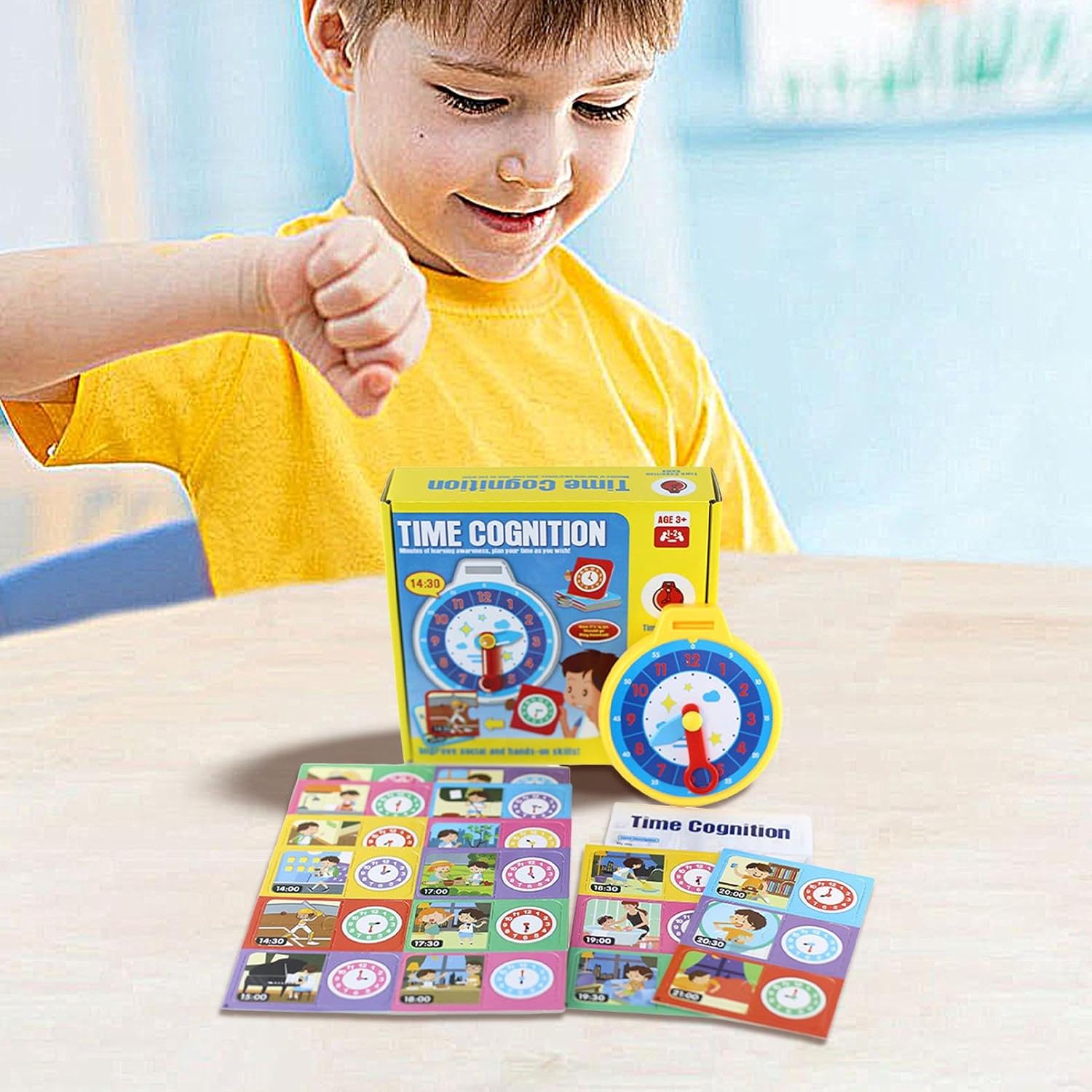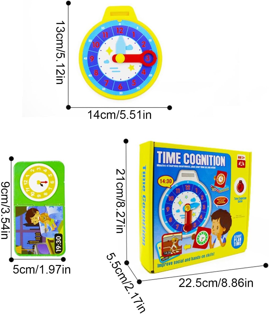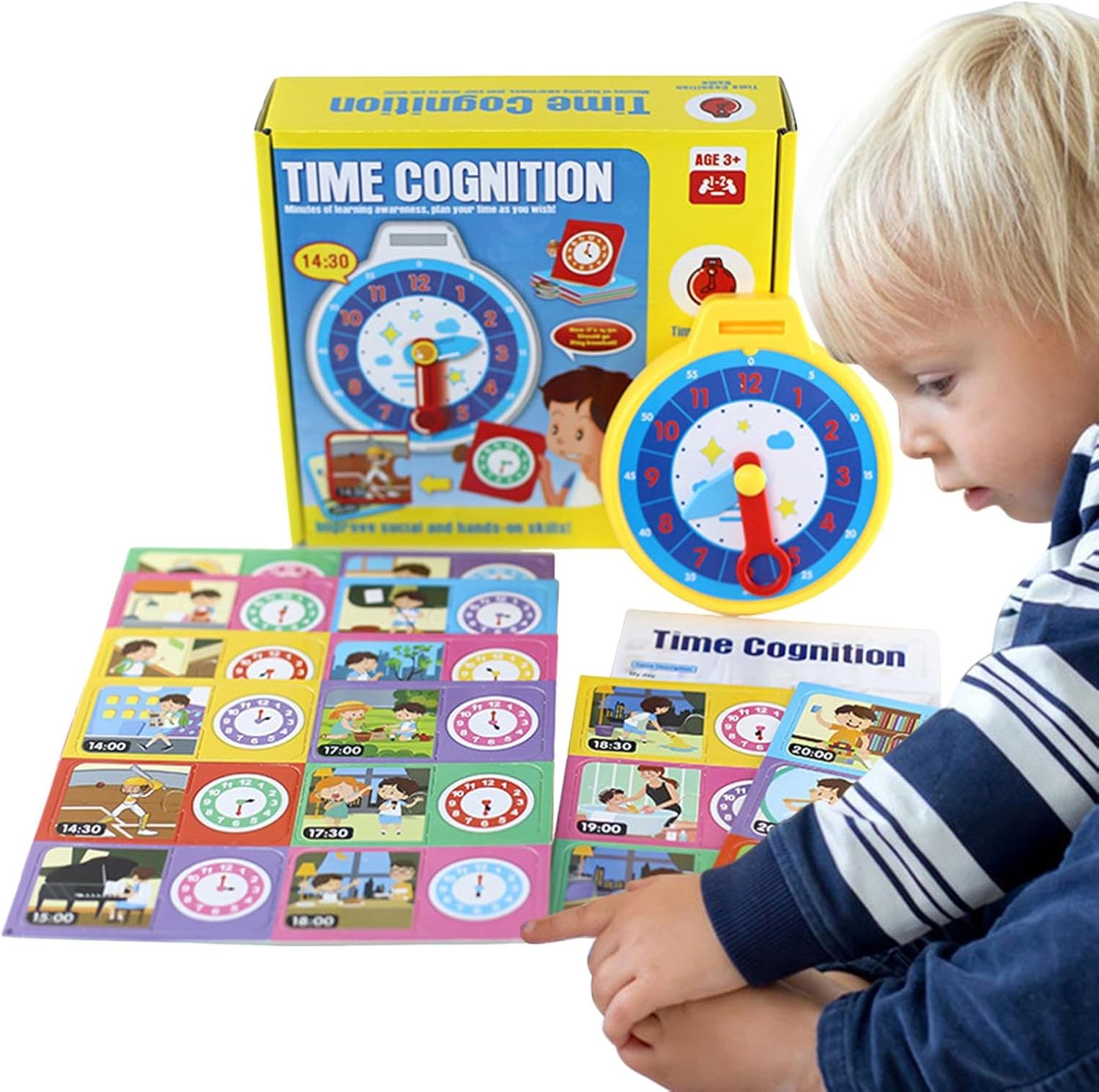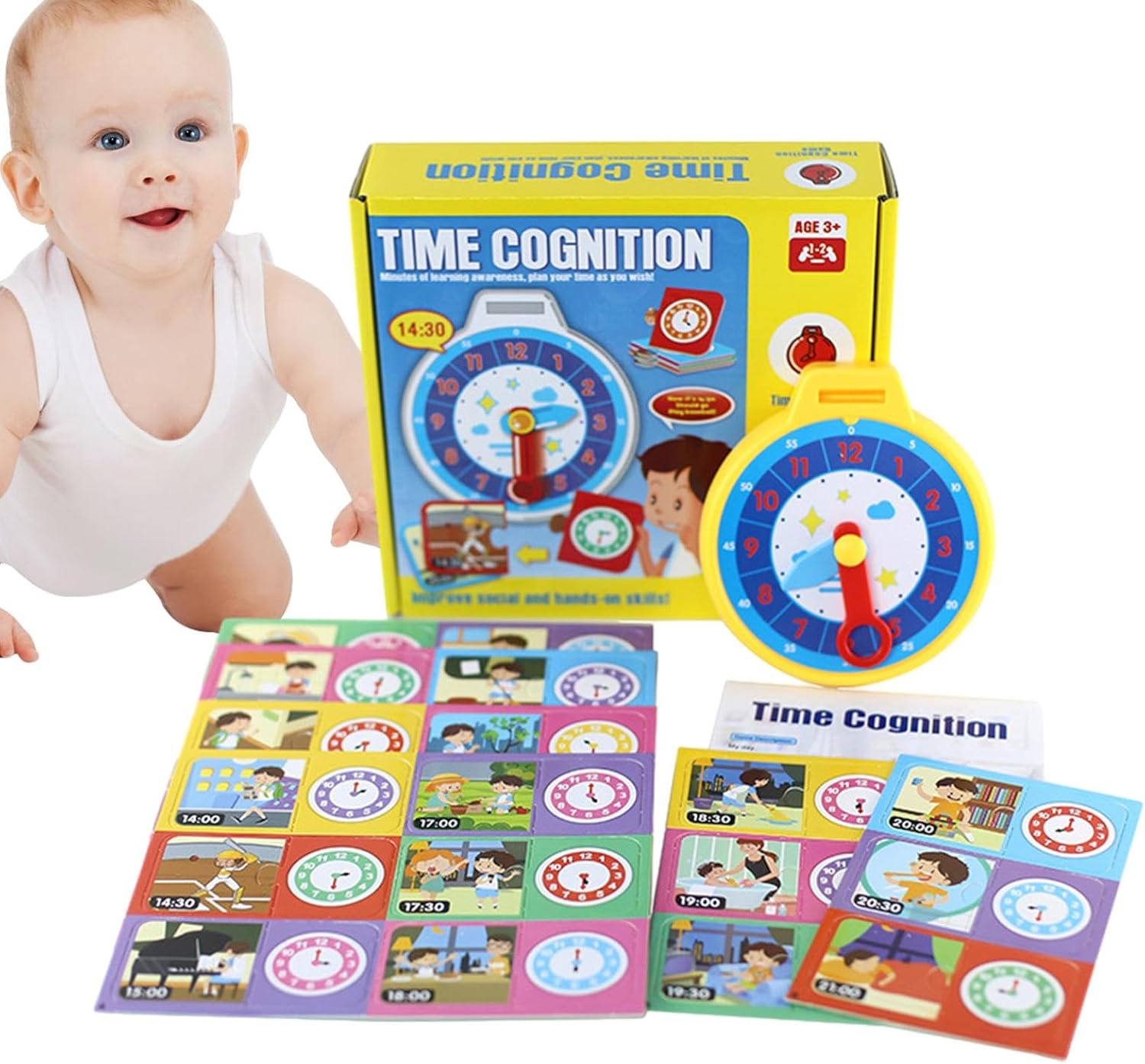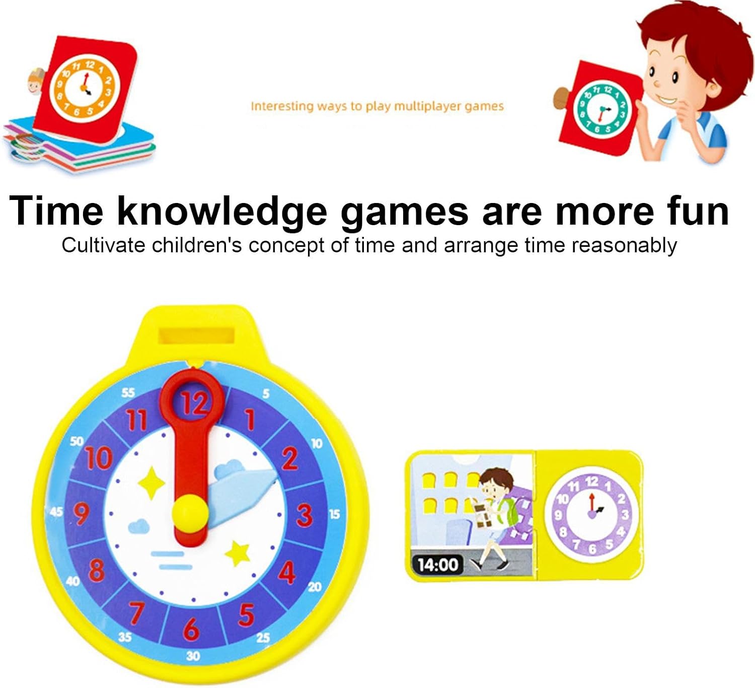 Divertimento per imparare l'orologio: sviluppa un forte senso del tempo con il nostro gioco per imparare l'orologio per bambini. Giocando con le lancette delle ore e dei minuti, imparano a organizzare in modo sensato il loro tempo e sviluppano le loro abilità attraverso giochi divertenti. È stato così divertente padroneggiare i concetti degli orologi Riconoscimento dei colori: migliora le capacità di riconoscimento dei colori e di osservazione di tuo figlio con giochi competitivi divertenti e coinvolgenti, utilizzando carte colorate con ricchi motivi di colore per allenare le sue abilità. Interazione relazionale genitore-figlio: sviluppa le capacità cognitive e motorie dei bambini con un divertente gioco di apprendimento dell'orologio e carte. Goditi l'interazione genitore-figlio di alta qualità e migliora la comunicazione emotiva migliorando al contempo la coordinazione occhio-mano e le abilità sociali. 【Materiali sicuri】 Il nostro orologio didattico è dotato di stampa su lamina lucida fronte-retro su PVC e carta di alta qualità, realizzata con materiali sicuri, inodori e resistenti allo sbiadimento per un uso a lungo termine. ADATTO PER IL REGALO - Migliora le abilità di lettura del tempo con il divertente e colorato apprendimento dell'orologio per , ideale come regalo di compleanno, vacanza o sorpresa quotidiana per ragazzi e ragazze di età superiore a 3 anni. Il design accattivante facilita l'apprendimento