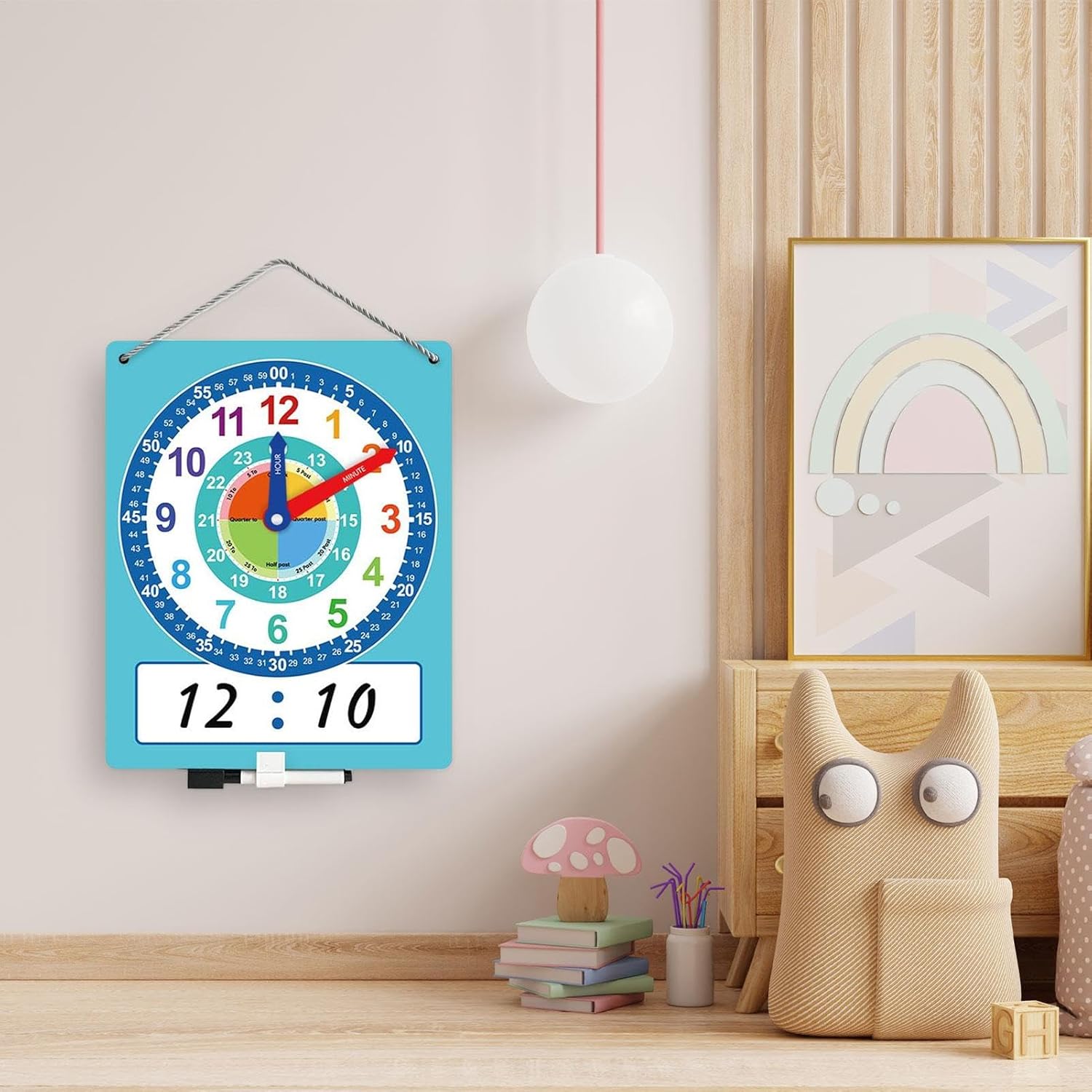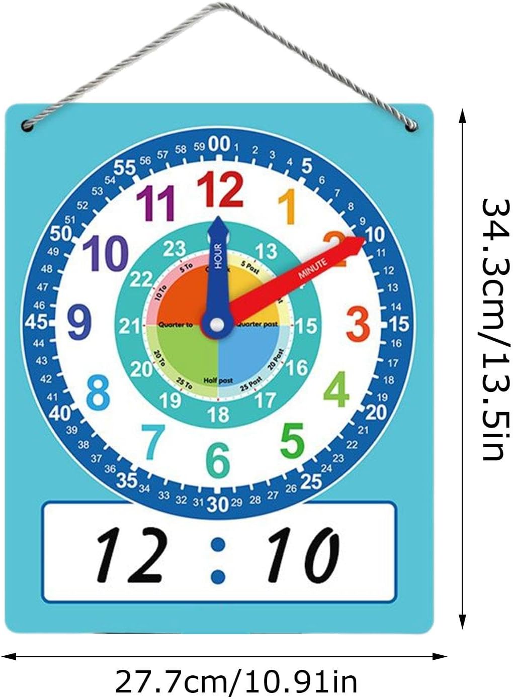 【Robusto strumento di apprendimento】 Con una robusta struttura in cartone, questo orologio didattico è progettato per interrompere e incoraggiare l'impegno attivo nello sviluppo delle prime capacità cognitive Display fronte-retro: con display fronte-retro, comoda tabella di riferimento e facile visibilità da più angolazioni - ideale per praticare il tempo di lettura in modo efficiente 【Migliora il monitoraggio del tempo】 Il design dell'orologio interattivo con ore, minuti, secondi e indicazioni orarie etichettate facilita la capacità dei bambini di comprendere l'ora in modo accurato e completo