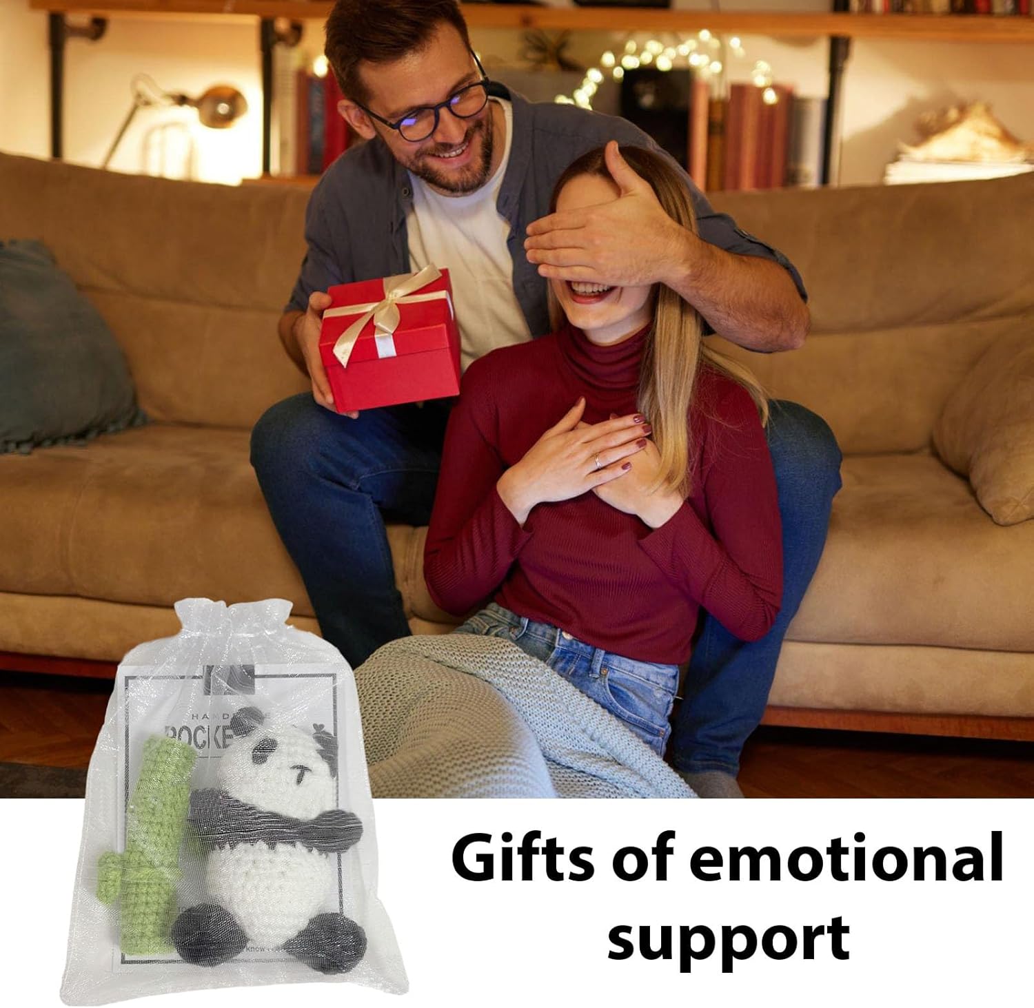Sollievo emotivo: questo panda all'uncinetto è morbido e avvolgente progettato per darti conforto e supporto emotivo. Che tu voglia alleviare stress, tristezza o tensione, questo panda ti accompagnerà spesso. Scrivi i tuoi pensieri: sorprendi i tuoi cari con questo adorabile panda all'uncinetto e un biglietto di auguri in cartone spesso di alta qualità. Scrivi il tuo messaggio migliore e lascia spazio sul retro per la tua firma. Fascino decorativo: il suo design accogliente e incantevole aggiunge un tocco affascinante a qualsiasi stanza e crea un'atmosfera calda e rilassante. Usalo per decorare il tuo soggiorno, camera da letto o qualsiasi altra stanza. Realizzato alla perfezione: scopri la bellezza ineguagliabile del panda all'uncinetto con il suo ricamo squisito, la sua espressione vivace e carina e i dettagli raffinati. Regalo a sorpresa: la qualità fatta a mano e la consistenza morbida lo rendono un regalo ideale per compleanno o festa che porterà sorpresa e felicità nella tua vita. Fai sorridere sui loro volti e calore nei loro cuori.