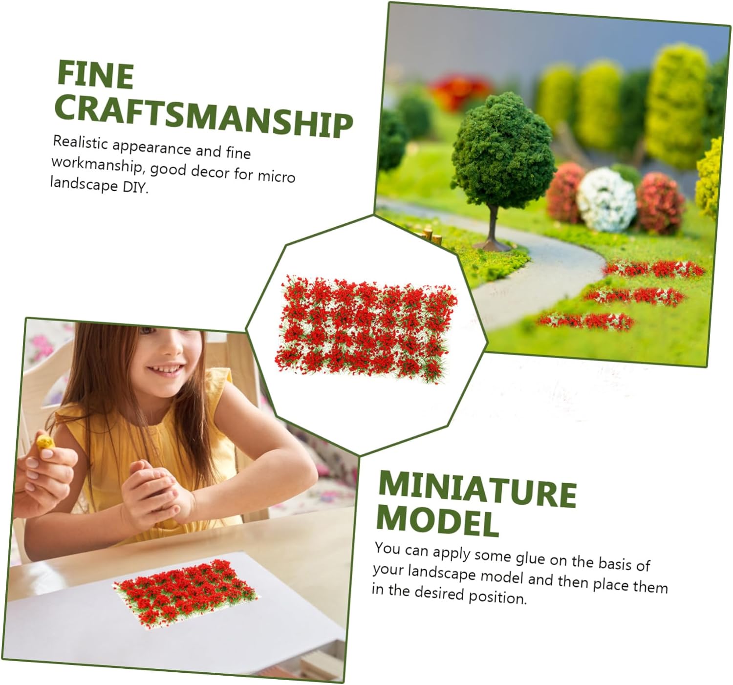 Mini accessori da giardino: applica un po' di colla sulla base del tuo modello paesaggistico e poi posizionali nella posizione desiderata, piante modello Vegetazione in miniatura: con superficie e angoli lisci, non graffia le , grappolo di fiori in miniatura In miniatura: taglia ogni pezzo di prato erboso nella dimensione necessaria o posizionali per creare un giardino fatato verde nel tuo giardino in miniatura, ornamenti da giardino Mini ciuffo di fiori: il mini ciuffo di fiori è adatto per decorare paesaggi fai da te, mini vegetation group Mini fiore: buona consistenza e superficie liscia, facile da pulire e mantenere, mini modello di albero di fiori