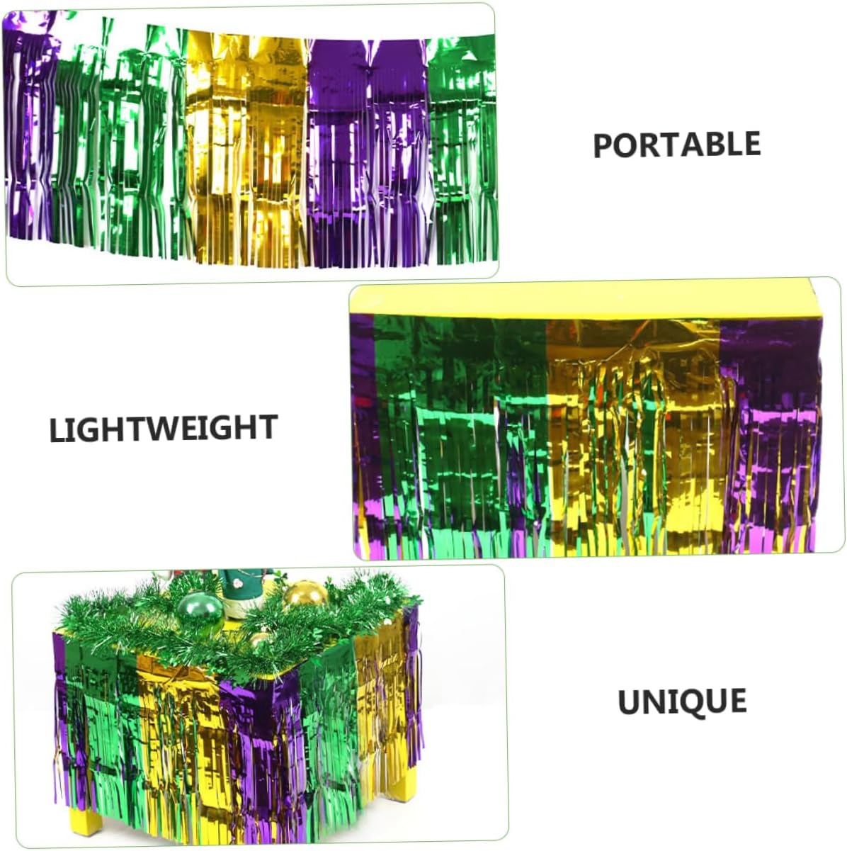 con frange in lamina di compleanno: lavorazione impeccabile con splendida lucentezza, rende l'intera festa più brillante e , tende nuziali streamer: gonna da tavolo portatile e leggera, facile e comoda da usare Tende glitterate: materiale di qualità superiore adottato, sarà davvero decorativo alla tua festa, in lamina d'oro Decorazioni a ghirlanda: realizzate in materiale, non facile da stropicciare o sbiadire, da usare, frange in orpello da tavolo per feste: ha un design semplice, ma molto bello nell'aspetto, festa